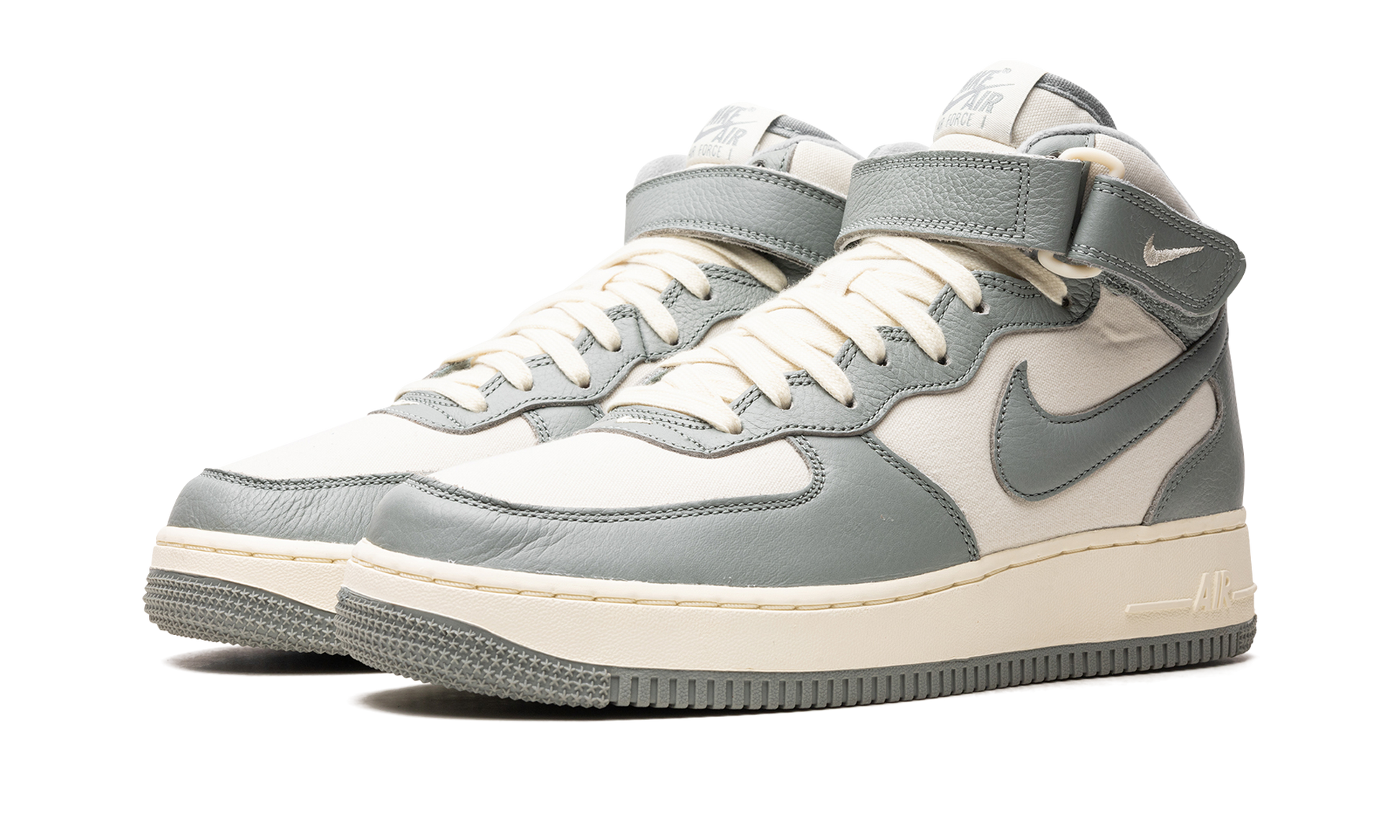 The Nike Air Force 1 Mid "Mica Green" is a clean colorway of the classic lifestyle shoe with vintage-inspired details. The sneaker features a Coconut-Milk-colored canvas base with Mica Green leather overlays and Swoosh branding. Mica Green leather also lands on the adjustable ankle strap. Vintage-inspired Coconut Milk laces match the tongue and Swoosh embroidery on the side of the strap. Green “Nike Air Force 1 Midâ€?branding appears on the tongue tag. Underfoot. the cream rubber midsole gives this version of the Air Force 1 Mid an old school. aged look. Release date: April 25. 2023