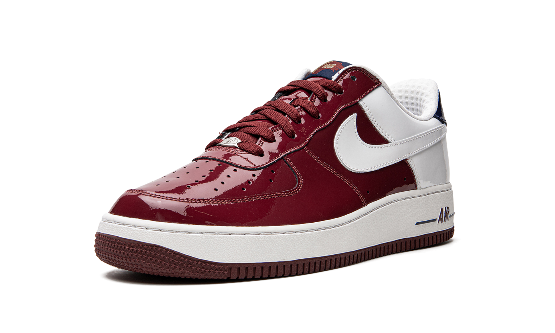 Here we have an ode to Lebron James with a sleek take on the AF1 premium. Instead to the usual flat white. there is a glossy red patent leather on the sides. top and toe. with a little navy patent leather on the upper heel. Staying true to that classic AF1 look. Nike kept it looking clean with white lining. heel. and swoosh.