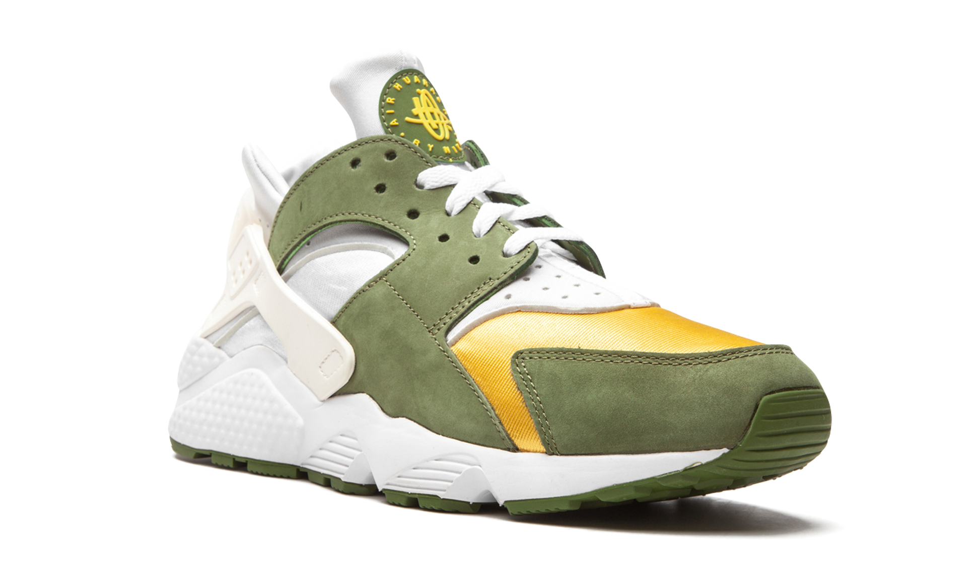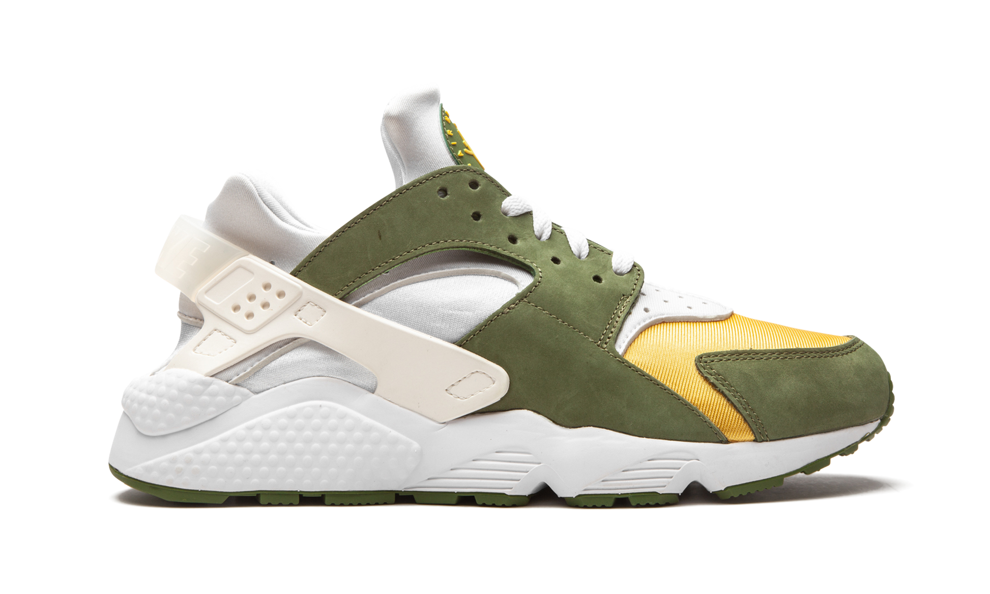 The Stussy x Nike Air Huarache “Dark Oliveâ€?is a February 2021 re-release of the first-ever sneaker collaboration between the legendary streetwear brand and Nike. Lauded as the first collaboration of its kind. the Stussy and Nike partnership originated in 2000. when the idea of streetwear and sportswear brands working together was a foreign concept. The movement has swept through the fashion industry in the two decades since. and that's partly due to the popularity of the “Dark Oliveâ€?Huarache One of two colorways from the initial Stussy and Nike collection. this modern re-release keeps the look of the “OGâ€?design intact with yellow and white neoprene detailing on the toe. mid-panel. and heel. respectively. An earthy shade of Dark Olive synthetic nubuck graces the various overlays on the upper and on the circular Air Huarache logo on the tongue. Stussy outfits the Air Huarache's signature heel counter in a retro inspired cream hue. Release date: February 18. 2021.