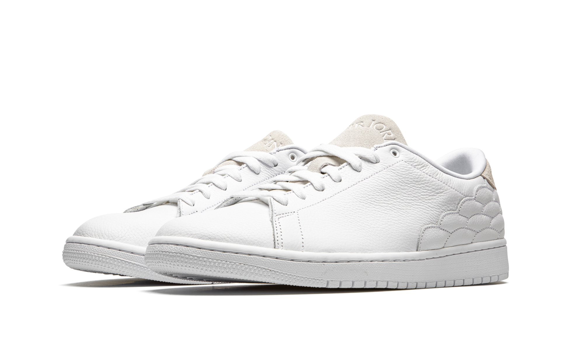 The Air Jordan 1 Centre Court “Whiteâ€?is a lifestyle version of Michael Jordan's first signature shoe that was released by Jordan Brand in late 2020. The “Whiteâ€?is the debut colorway of the Jordan 1 Centre Court model and is the same shoe that Jordan himself could be seen wearing during segments of the popular “Last Danceâ€?docuseries. As for the look of the shoe. a supple cut of white leather forms the base of the upper and appears on the toe and mid-panel. and heel. A scale inspired design can be found on the back of the shoe beneath the tan colored suede overlay on the heel. The tongue is dressed in a lighter shade of beige suede. Embossed “Wingsâ€?and “Air Jordanâ€?logos dot the aforementioned heel tab and tongue. respectively. Release date: December 21. 2020.