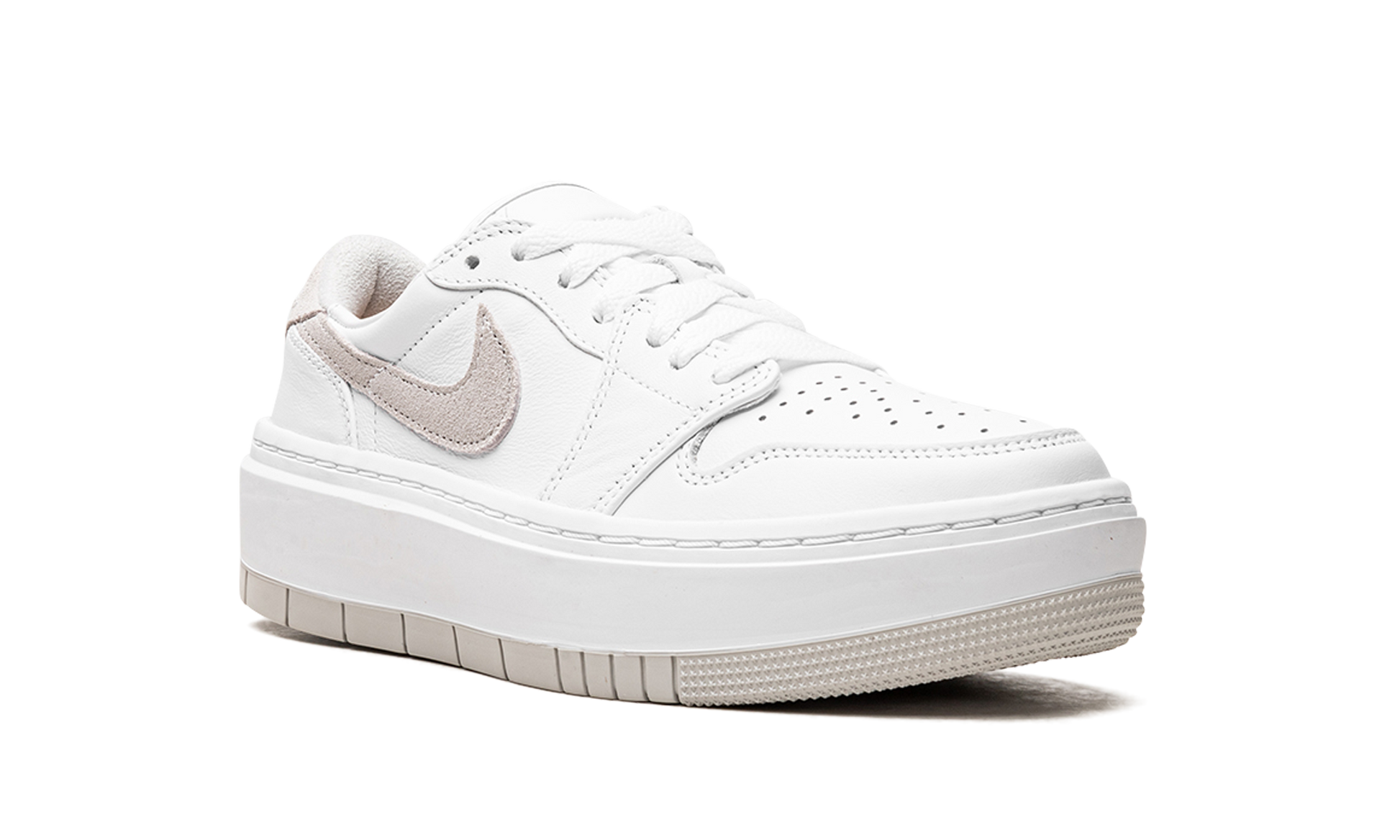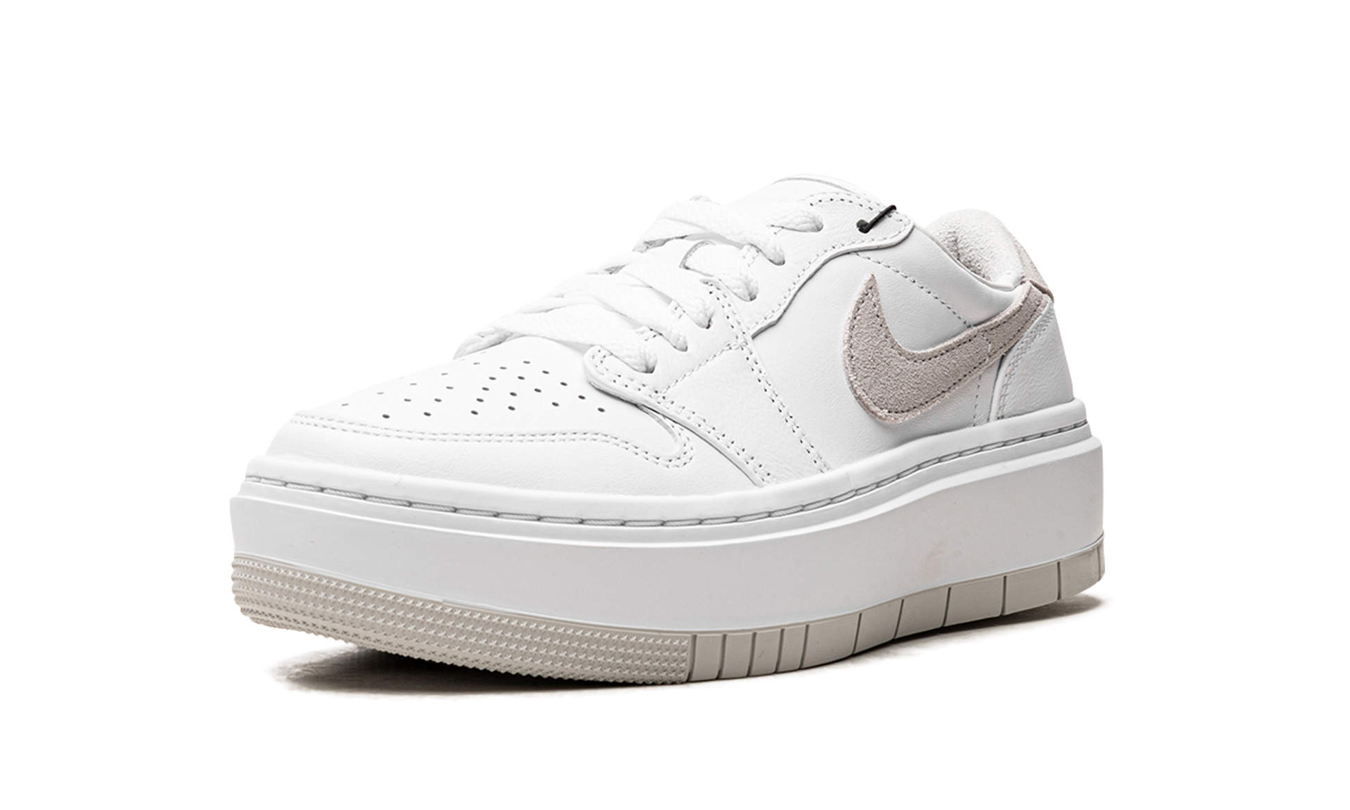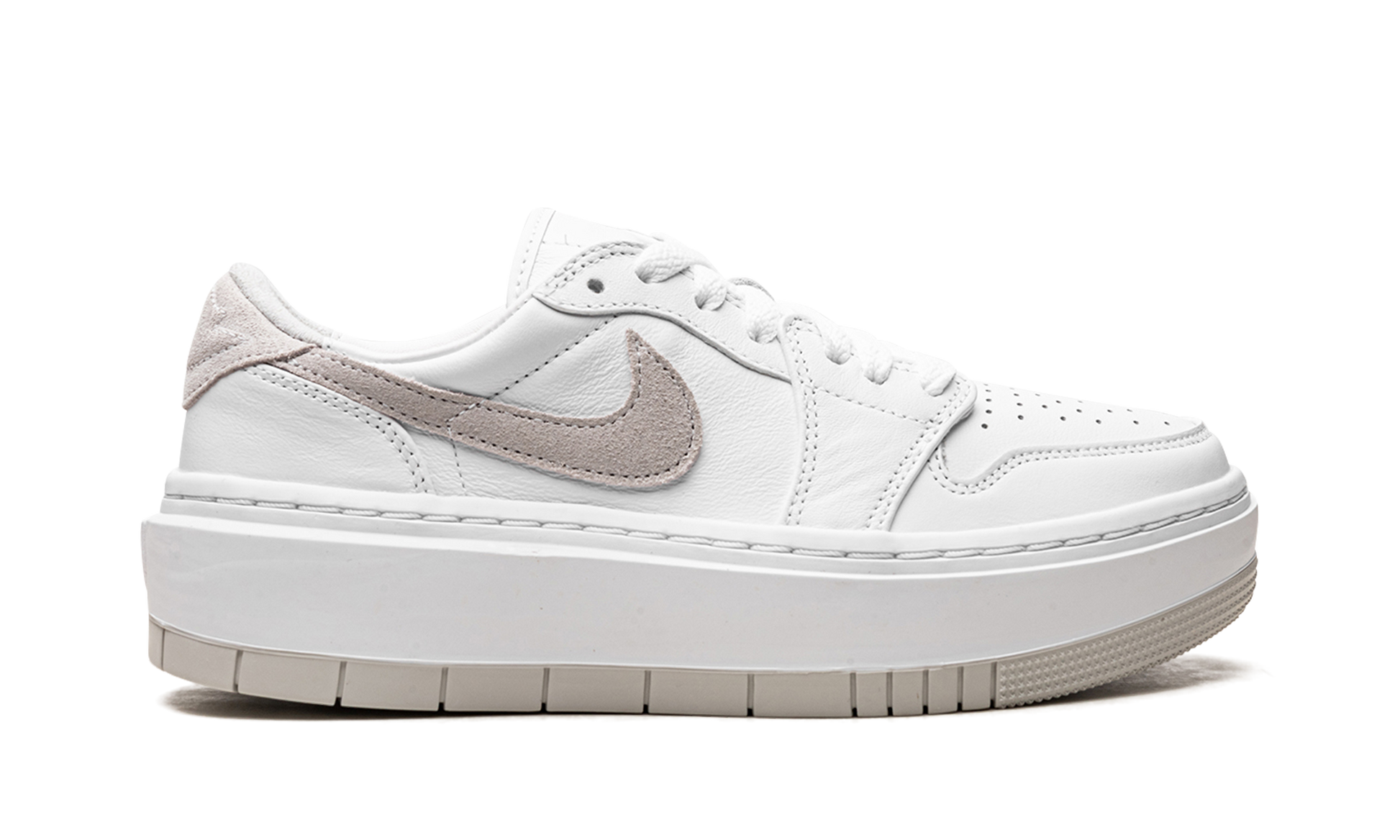 The Women's Air Jordan 1 Elevate Low “Neutral Greyâ€?is a women's-exclusive colorway of the retro basketball shoe with a modified design that features a platform-style sole. The Jordan 1 Elevate Low puts a contemporary spin on the Jordan 1 Low with an oversized. white rubber midsole that adds significant height to the wearer. In spite of its modernized style. the rest of the shoe remains somewhat consistent with the Jordan 1 Low OG. The “Neutral Greyâ€?is an original Jordan 1 colorway from 1985. It features a white leather construction with tonal leather overlays. A Neutral Grey suede Swoosh is found on the sides and grey suede appears on the heel with a “bubbleâ€?style “Wingsâ€?logo. Release date: December 10. 2022