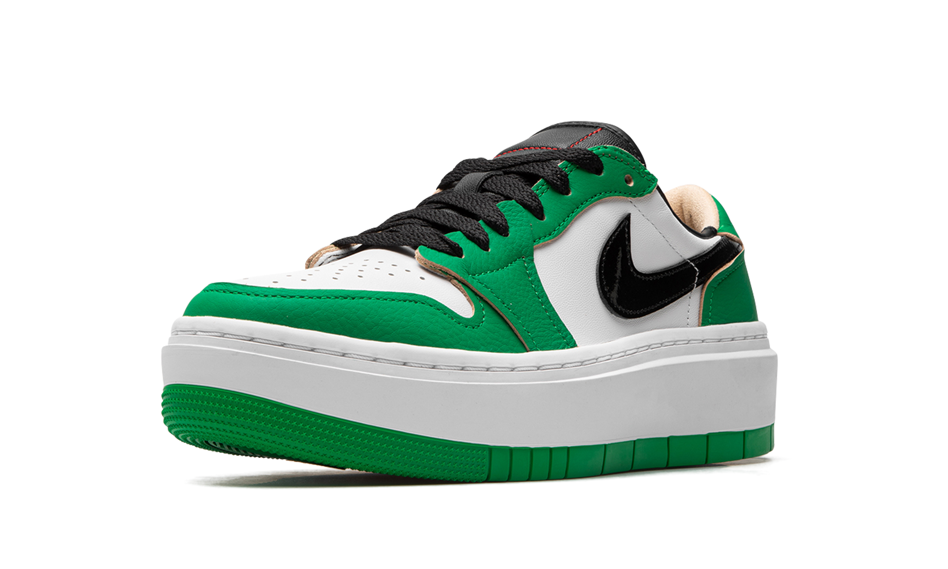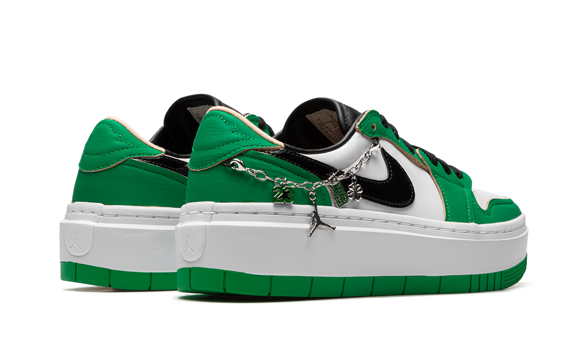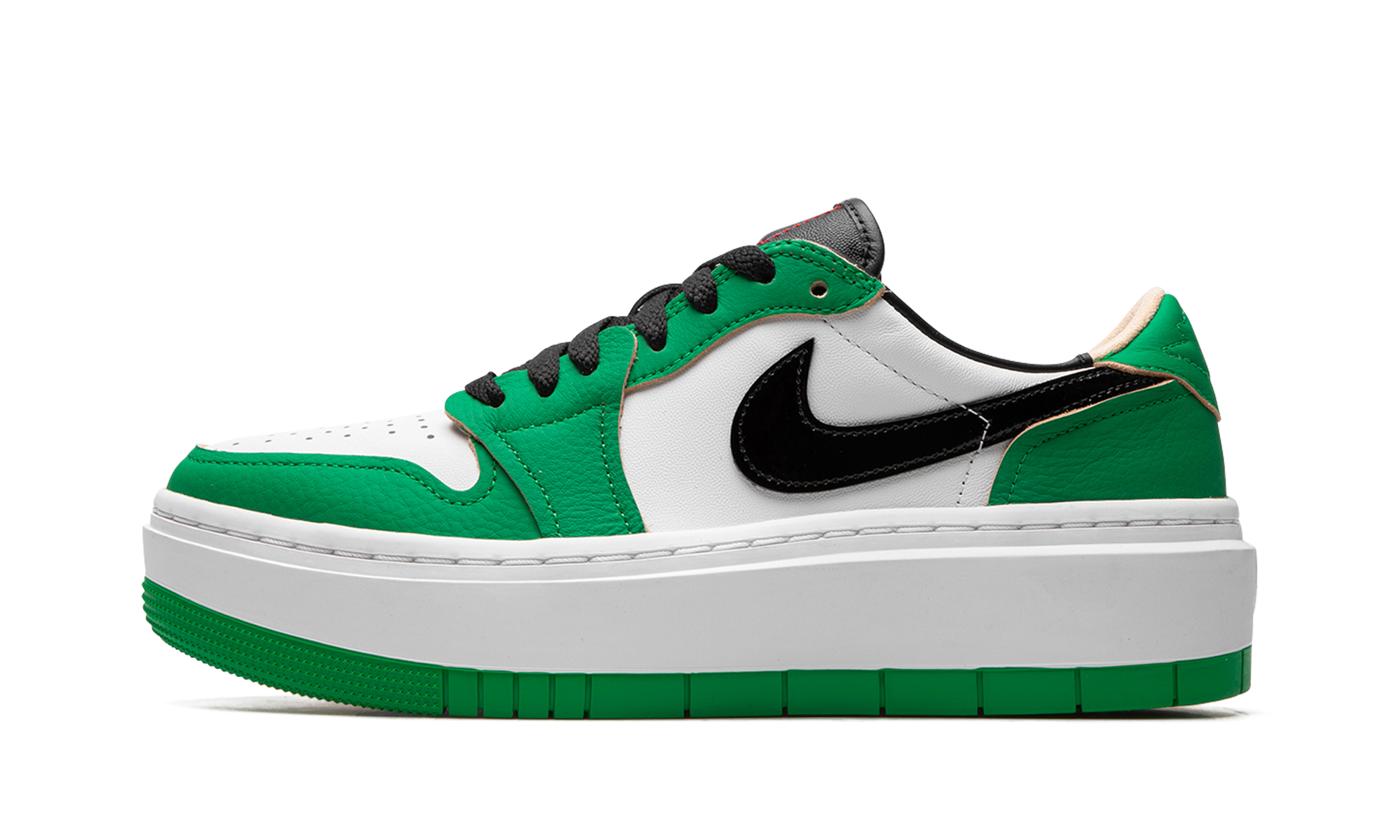 The Women's Air Jordan 1 Elevate Low “Lucky Greenâ€?is a women's-exclusive version of the popular retro basketball shoe that updates its classic design with a platform-style sole. The Jordan 1 Elevate Low puts a contemporary twist on the Jordan 1 Low with an oversized. white rubber sole that adds significant height to the wearer. In spite of its modernized style. the rest of the shoe remains somewhat consistent with the Jordan 1 Low OG model. The “Lucky Greenâ€?colorway features a white leather base with contrasting Lucky Green leather overlays and black leather Swoosh branding. A bubble-style “Wingsâ€?logo appears on the heel. Release date: April 15. 2022