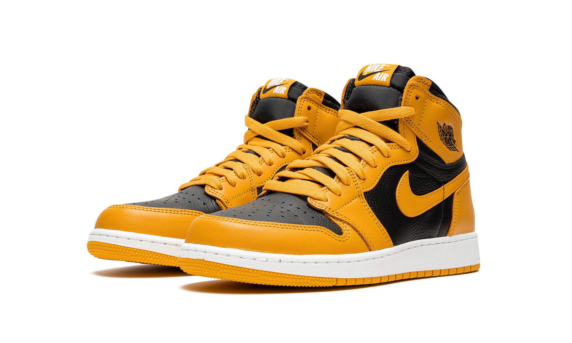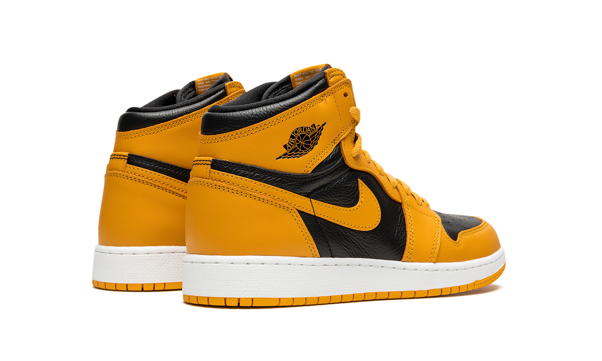 Yellow/black leather/rubber Air Jordan Retro 1 sneakers from Jordan Kids featuring signature Air Jordan Wings logo. signature Swoosh logo detail. contrasting panel detail. round toe. perforated detailing. front lace-up fastening. logo patch at the tongue. branded insole and rubber sole. These styles are supplied by a premium sneaker marketplace. Stocking only the most sought-after footwear. they source and curate some of the most hard to find sneakers from around the world..