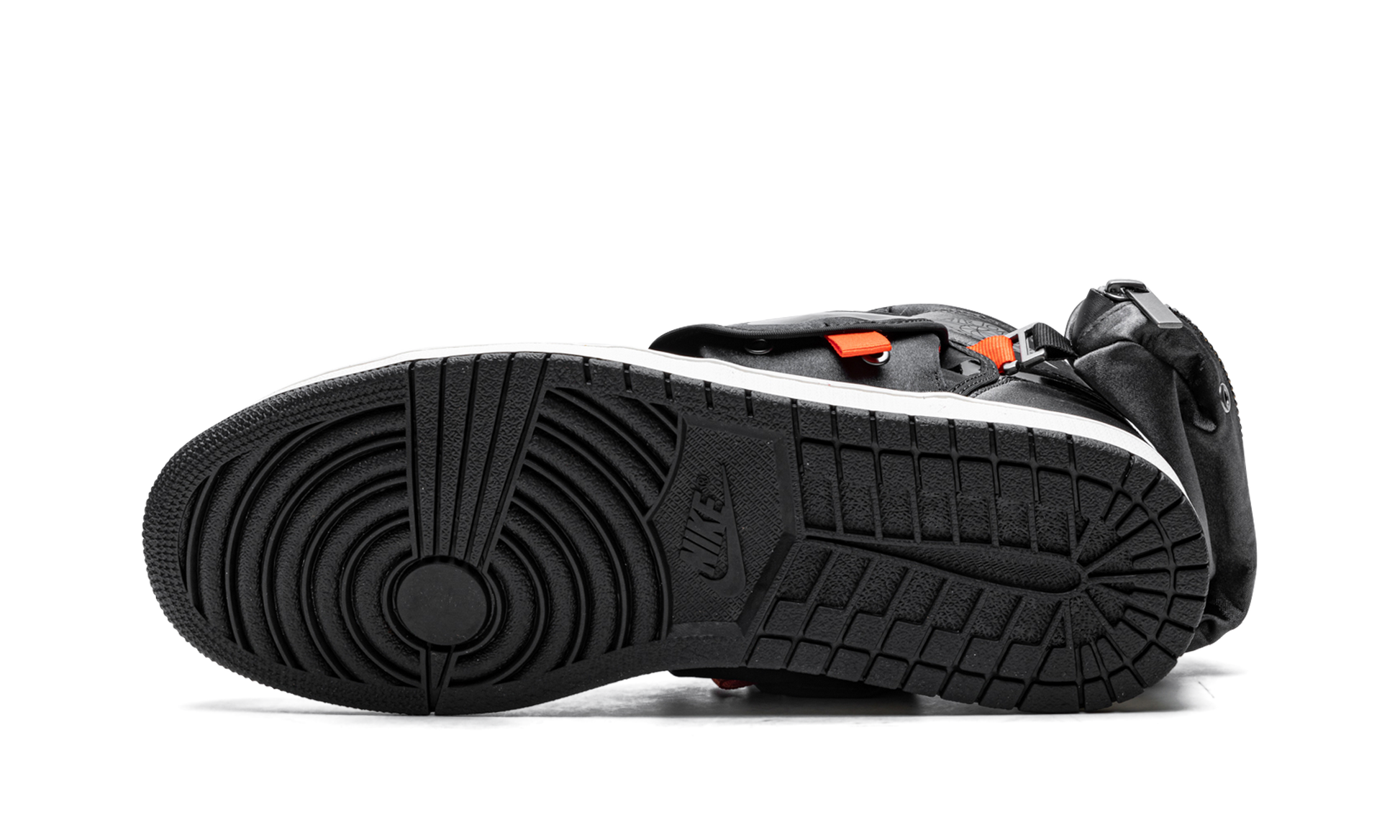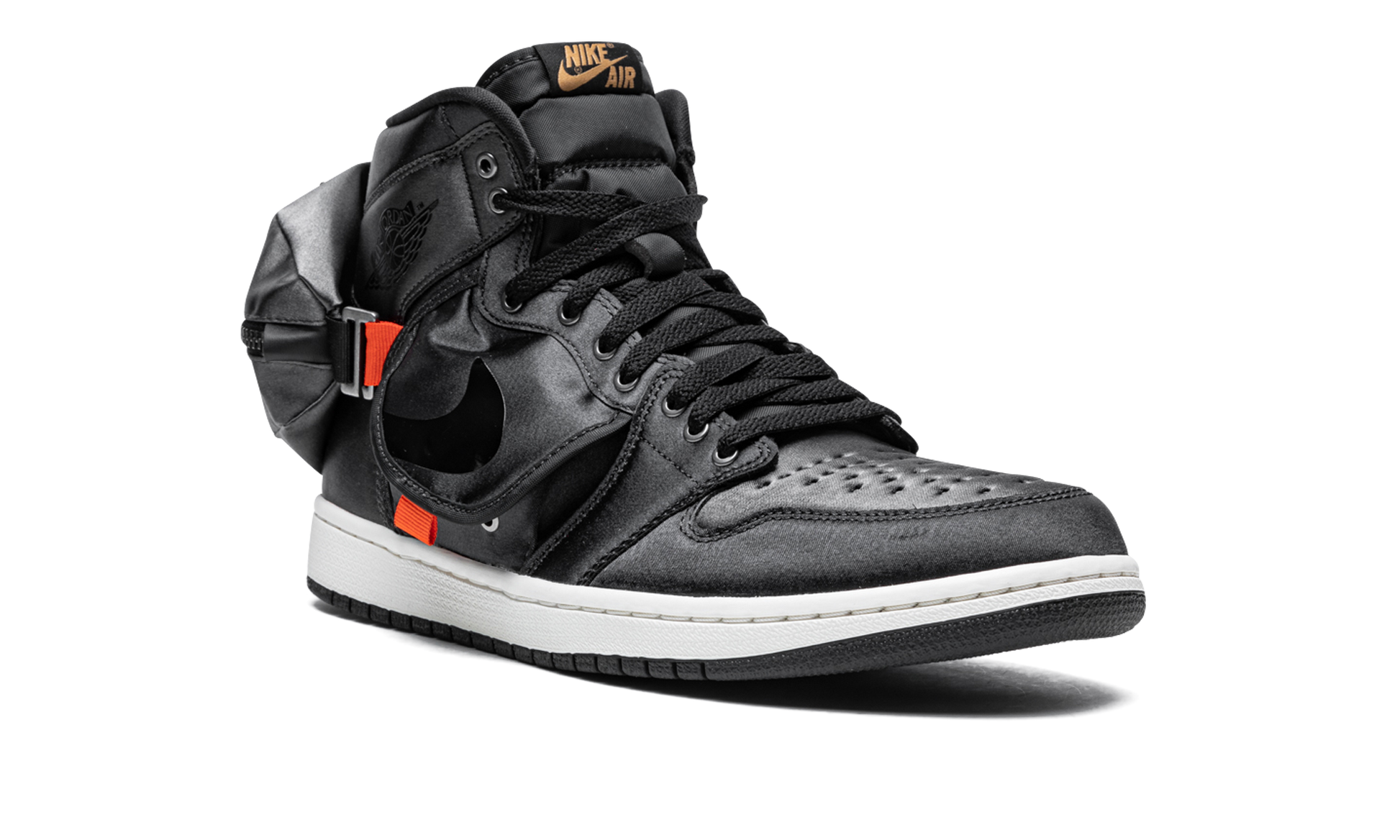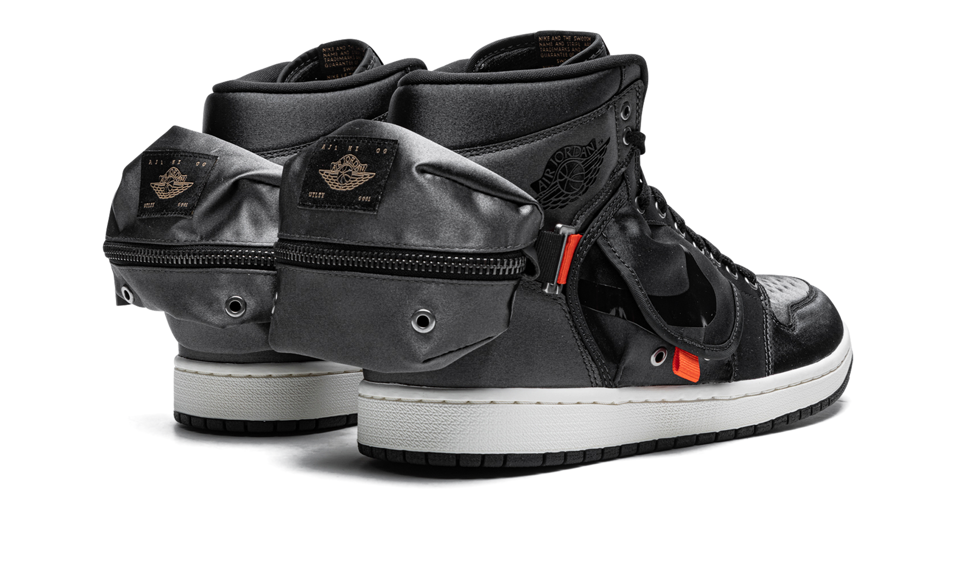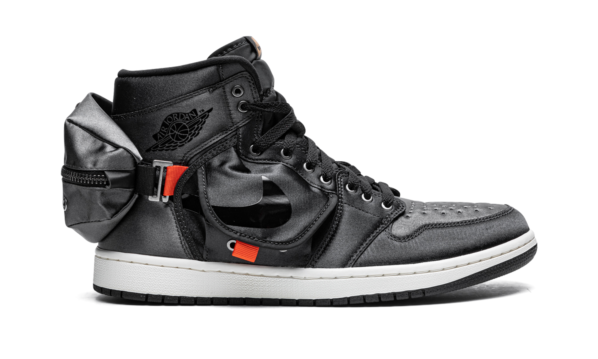 The Air Jordan 1 High “Stashâ€?is a unique version of the iconic basketball shoe that features cargo-pant-like stash pockets on the side and heel. A Spring 2022 release by Jordan Brand. this utilitarian look for the Jordan 1 includes an outdoors-inspired design with flaps on the mid-panel and a large pocket on the back of the shoe. The entire upper is constructed of black nylon. Orange tabs throughout the upper balance the sneaker's monochromatic black appearance. Even with the design modifications. it still features a Swoosh on the sides and a “Wingsâ€?logo on the collar—two signature elements of the original Air Jordan 1. Release date: May 3. 2022