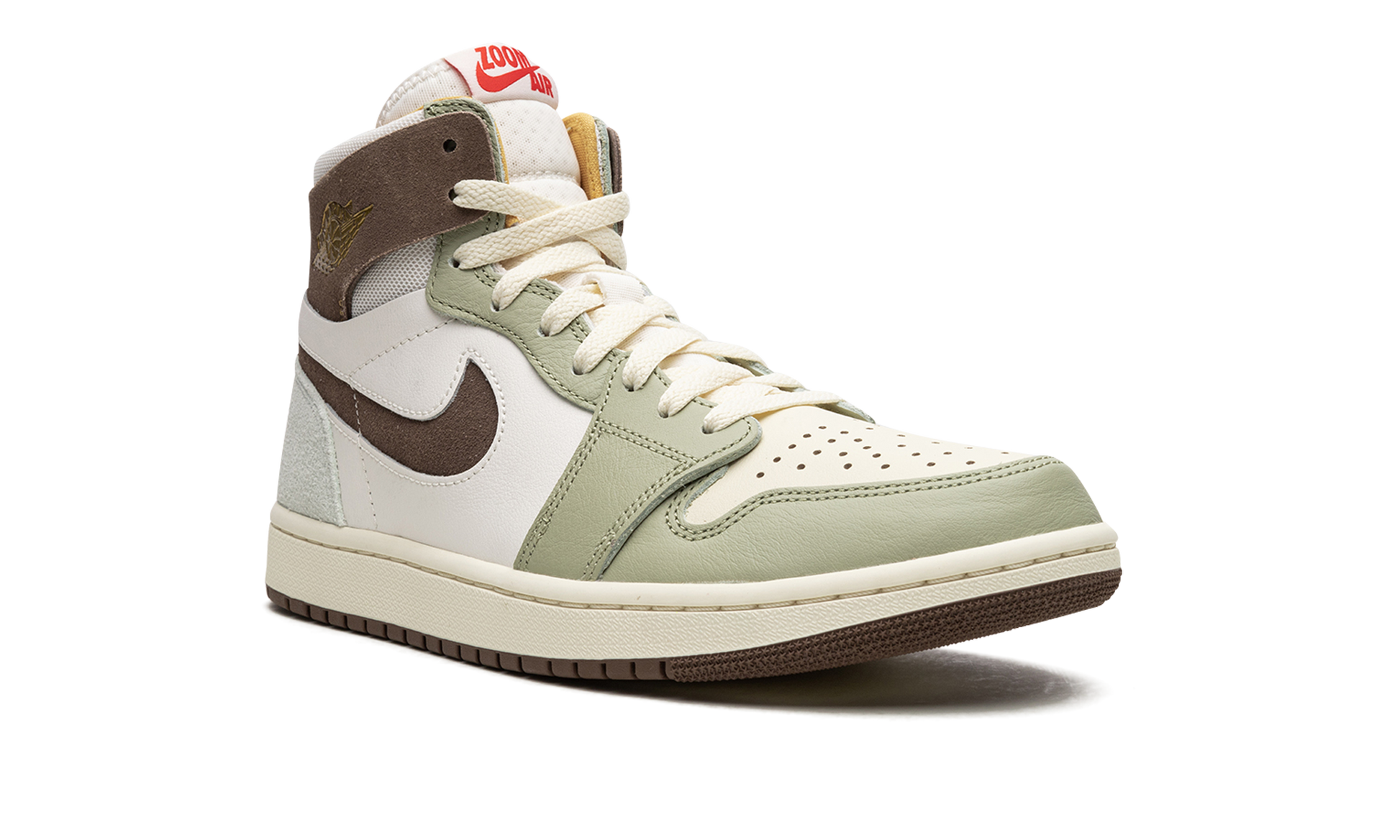 The Air Jordan 1 High Zoom CMFT “Year of the Rabbitâ€?is a colorway of the alternate. modern version of the retro basketball shoe that celebrates Lunar New Year. Equipped with Nike's Zoom Air cushioning technology and a beefy. padded ankle collar. the Jordan 1 High Zoom Comfort is a more comfortable. lifestyle-focused version of the legendary Jordan 1. As for the “Year of the Rabbitâ€?colorway. the shoe nods to the Lunar New Year holiday on its design. The shoe features an Ivory-colored perforated leather toe box with mint green leather overlays on the toe cap. forefoot. and eyelets. A light blue suede overlay appears on the heel. Brown suede is featured on the Swoosh and collar. “Zoom Airâ€?branding is displayed on the tongue tag and a “Wingsâ€?logo can be found on the collar overlay.