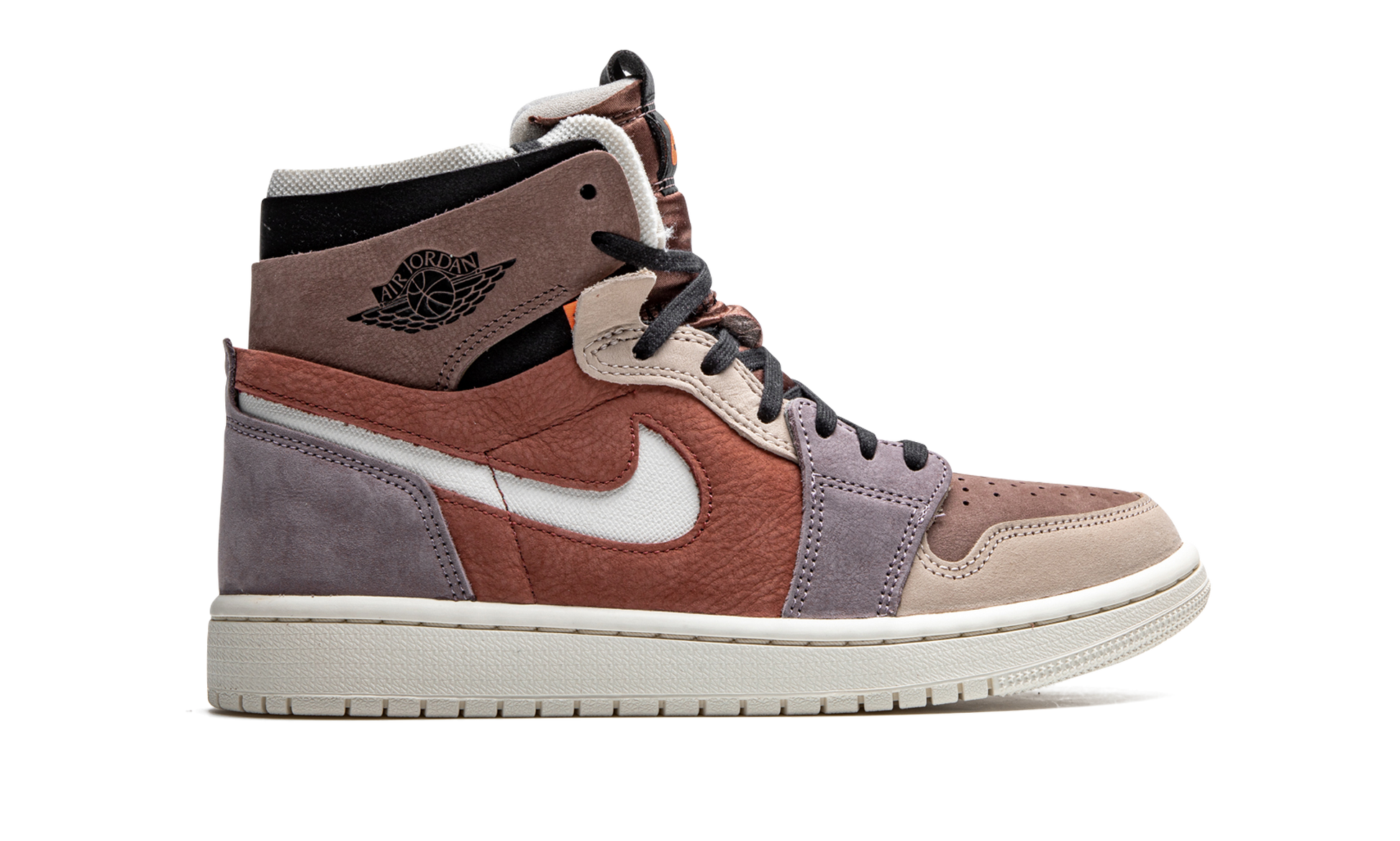 The Women's Air Jordan 1 High Zoom CMFT “Canyon Rustâ€?is a rustic women's colorway of Michael Jordan's first signature shoe. The alternate Jordan 1 High Zoom features a modified design that incorporates Nike's Zoom Air cushioning technology into the midsole for all-day comfort. As for this “Canyon Rustâ€?colorway. the autumnal look checks in with an array of earth tone colors and patterns. beginning with the reddish-brown tumbled leather on the mid-panel and the clay hue of suede detailing on the perforated toe. The same shade of clay appears on the collar beneath the black “Wingsâ€?logo. Grey suede overlays dot the forefoot and heel and a white cut-out Swoosh adorns either side. The “Canyon Rustâ€?also includes exposed foam padding on the tongue that suggests an intentionally unfinished look.