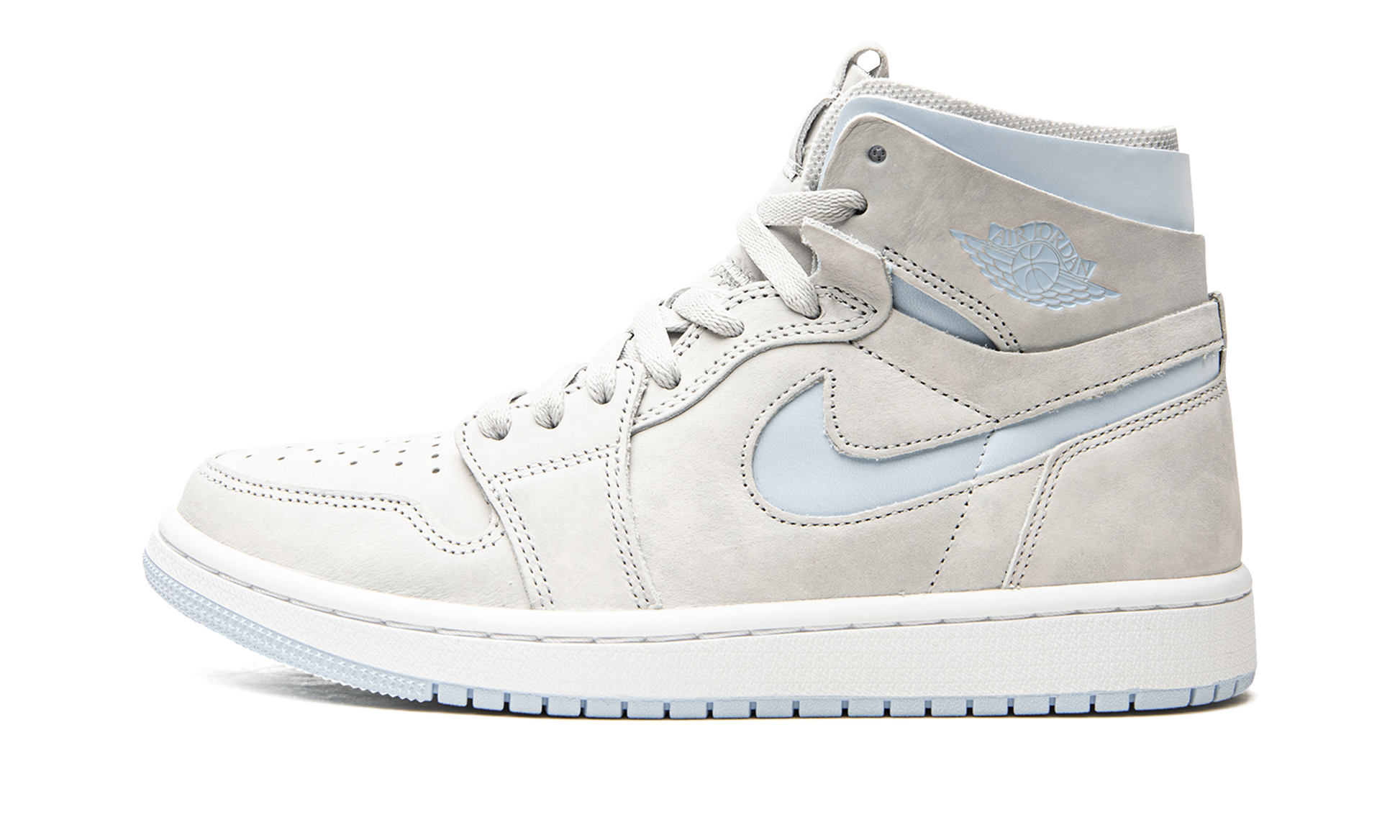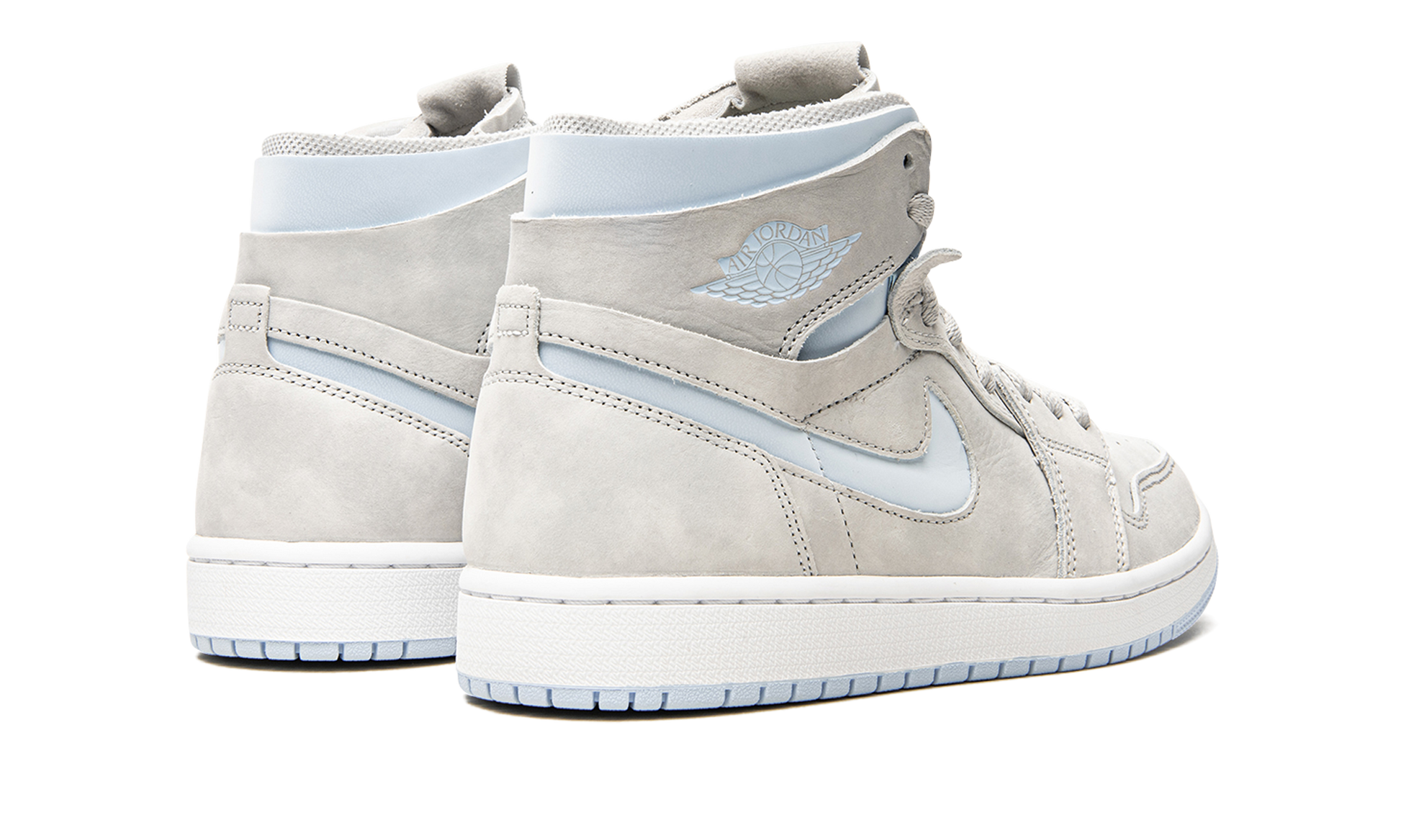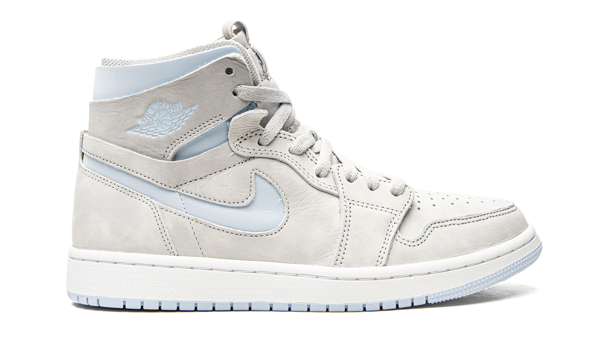 The Women's Air Jordan 1 High Zoom CMFT “Grey Fogâ€?is a women's-exclusive colorway of the alternate version of Michael Jordan's retro basketball shoe that features additional cushioning and other design modifications. The Jordan 1 Zoom Comfort debuted in 2020 as part of Jordan's continuous efforts to expand the look and performance components of the veritable shoe. Armed with even more padding around the ankle collar. the Jordan 1 High Zoom CMFT also combines different materials and colors for a fresh new vibe. On the “Grey Fog.â€?the upper appears in Grey Fog-colored nubuck and features a cut-out Celestine Blue Swoosh on the sides and “Wingsâ€?logo on the collar. The Jordan 1 Comfort features an unfinished collar and a “Zoom Airâ€?branded tongue tag. The advanced cushioning technology is encased within the white midsole for all-day comfort. Release date: November 18. 2021