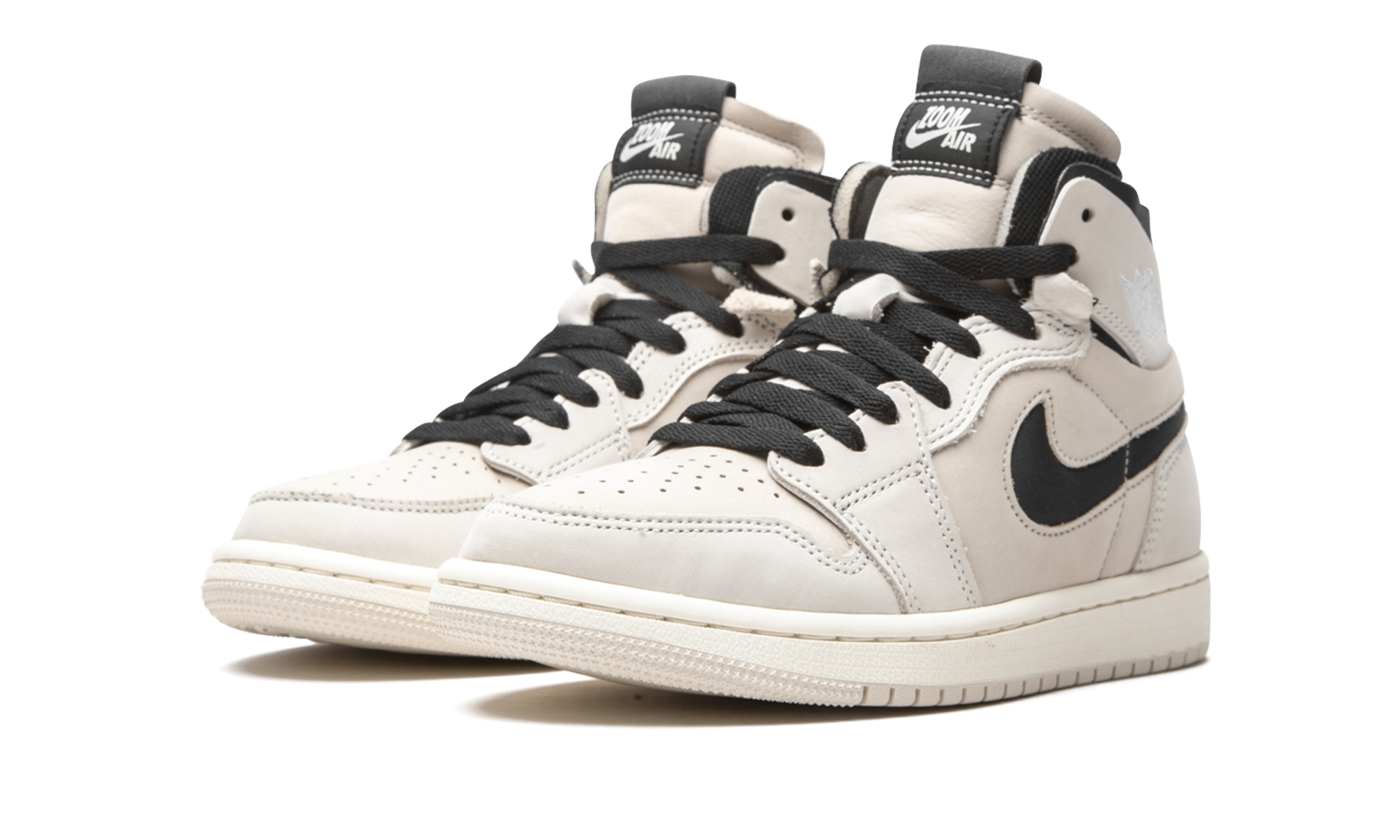 The Women's Air Jordan 1 High Zoom CMFT “Summit Whiteâ€?is a modern interpretation of the women's sizing of Michael Jordan's first signature shoe. Jordan Brand debuted the Jordan 1 High Zoom CMFT in 2020 as a progression of the model by incorporating Nike's Zoom Air technology in the sole and adding even more padding around the ankle collar. The resulting look elicits a “do-it-yourselfâ€?aesthetic popularized by the legendary Off-White x Air Jordan 1 High “Chicagoâ€?from “The 10â€?collection. As for the design of the “Summit White.â€?Sail leather can be found on the mid-panel. collar. and heel. A low-contrast Summit White nubuck material is located on the perforated toe and on the forefoot and eyelet overlays. The collar and Swoosh branding are composed of black canvas. Jordan Brand prints a “Wingsâ€?logo on the collar and adds a Zoom Air branded tongue tag in place of the standard Air Jordan 1 “Nike Airâ€?insignia. As previously stated. Zoom Air cushioning is embedded within the midsole for comfort. replacing the original Air unit found in the original Jordan 1 High OG model.