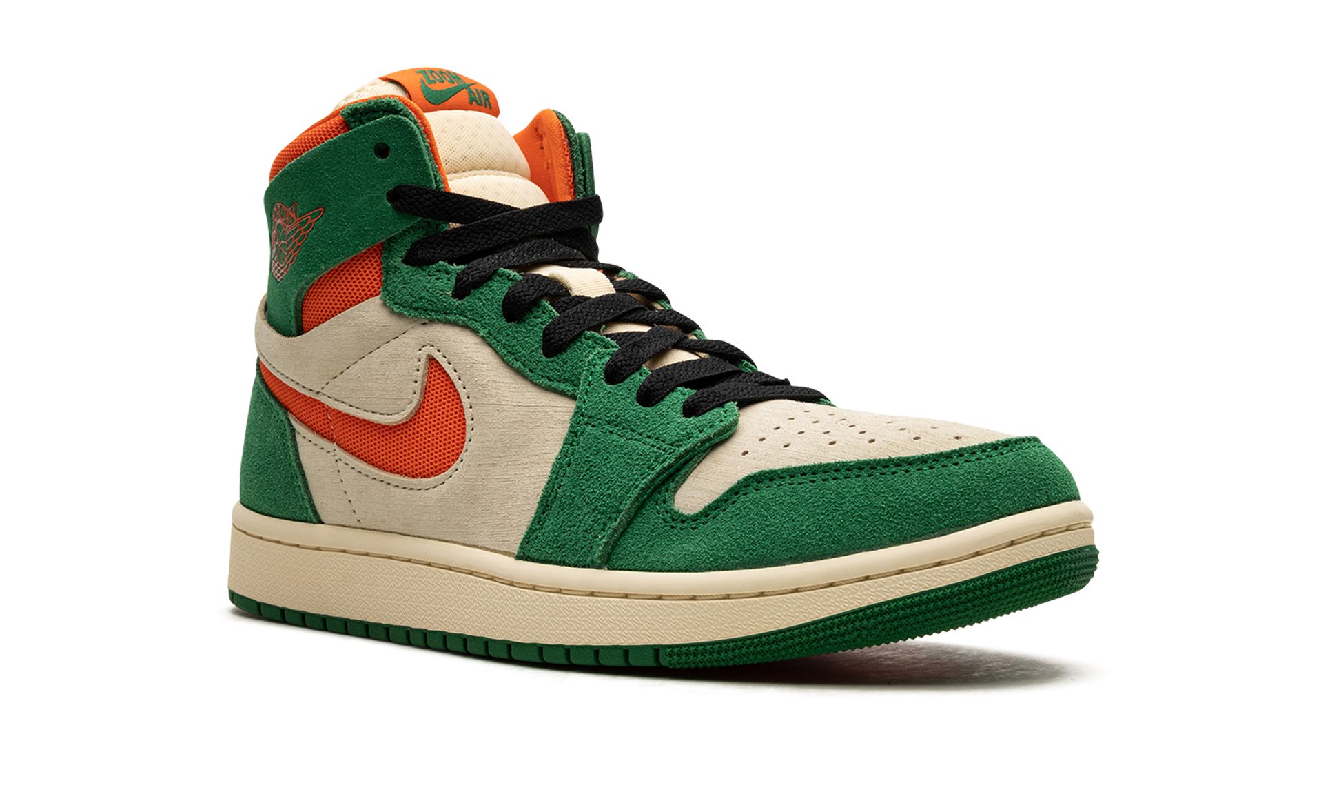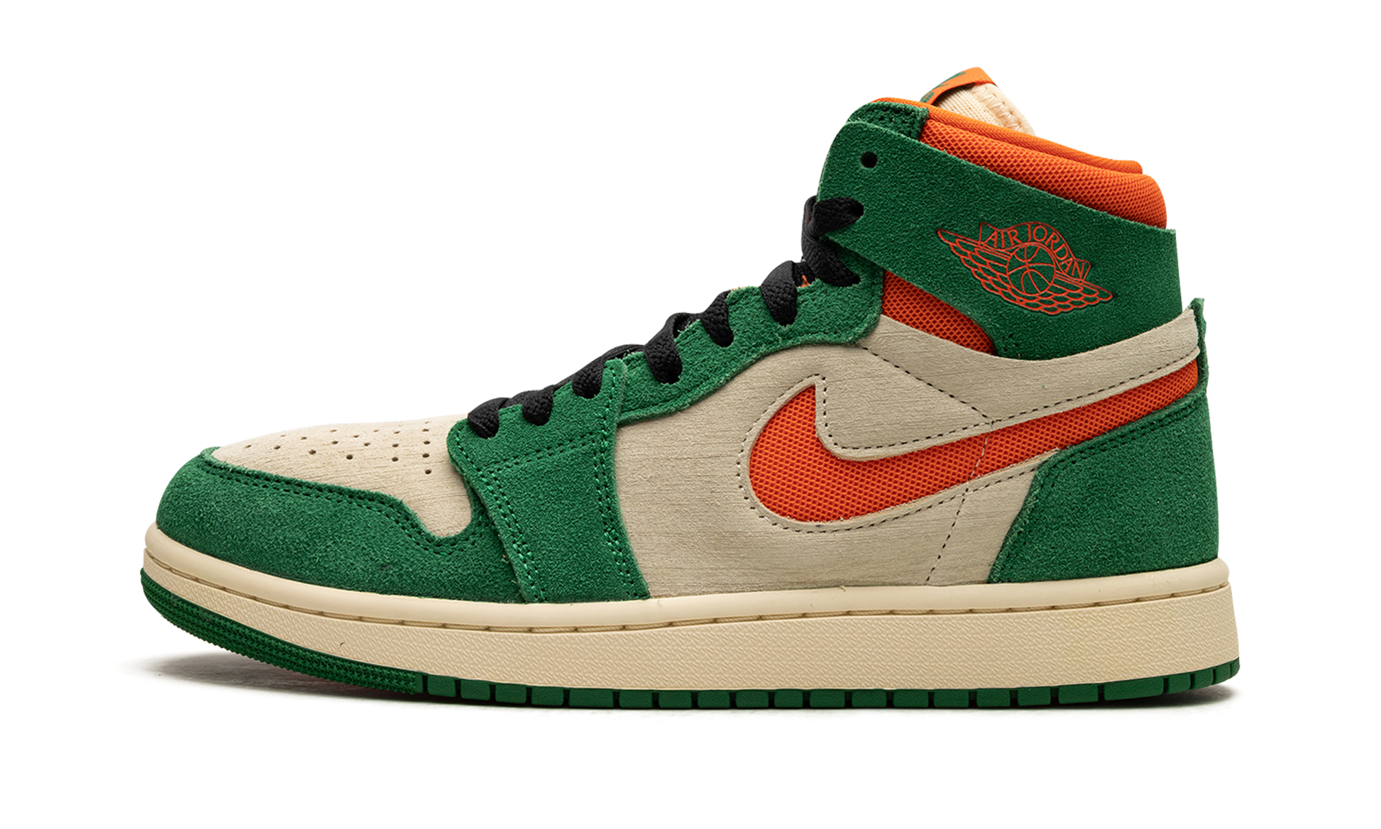 The Air Jordan 1 High Zoom CMFT 2 "Pine Green" is a colorway of the modified version of the retro basketball shoe with green and orange details. The Jordan 1 Zoom Comfort 2 is the second version of the Jordan 1 Zoom Comfort shoe that puts a casual. more comofrtable spin on the classic silhouette. The “Pine Greenâ€?features a Muslin suede base with Pine Green suede overlays. An Orange Blaze cut-out Swoosh appears on the sides and a “Wingsâ€?logo is found on the collar. “Zoom Airâ€?branding replaces the Jordan 1's original “Nike Airâ€?detailing on the tongue tag. Underfoot. the Jordan 1 Zoom Comfort 2. like the original Zoom Comfort silhouette. features Nike's Zoom Air cushioning technology in the forefoot as well as additional foam. Release date: June 3. 2023