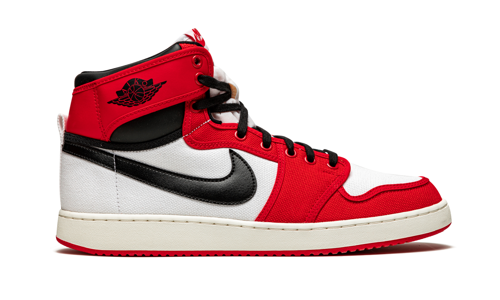 The Air Jordan 1 KO “Chicagoâ€?is a May 2021 release of an original colorway of the silhouette based on Michael Jordan's first signature shoe. Roughly a year after the Jordan 1 made its debut in 1985. Nike released the Air Jordan 1 KO or “AJKO.â€?for short. The then-new design featured a canvas construction instead of leather like the original Jordan 1. Moreover. the AJKO was seen as a more inclusive version of the shoe. although Nike has never gone into much detail as to why it reconstructed and renamed the model so closely after releasing the original Jordan 1. As for the design. Varsity Red canvas appears on the toe. forefoot. eyelets. and collar. White canvas is used as the base and a black leather Swoosh appears on either side. The AJKO features a “Wingsâ€?logo on the ankle and a Nike logo on the tongue tag. The “Chicagoâ€?AJKO dons a white nylon tongue. A cream rubber midsole and red outsole complete the look. Release date: May 12. 2021.