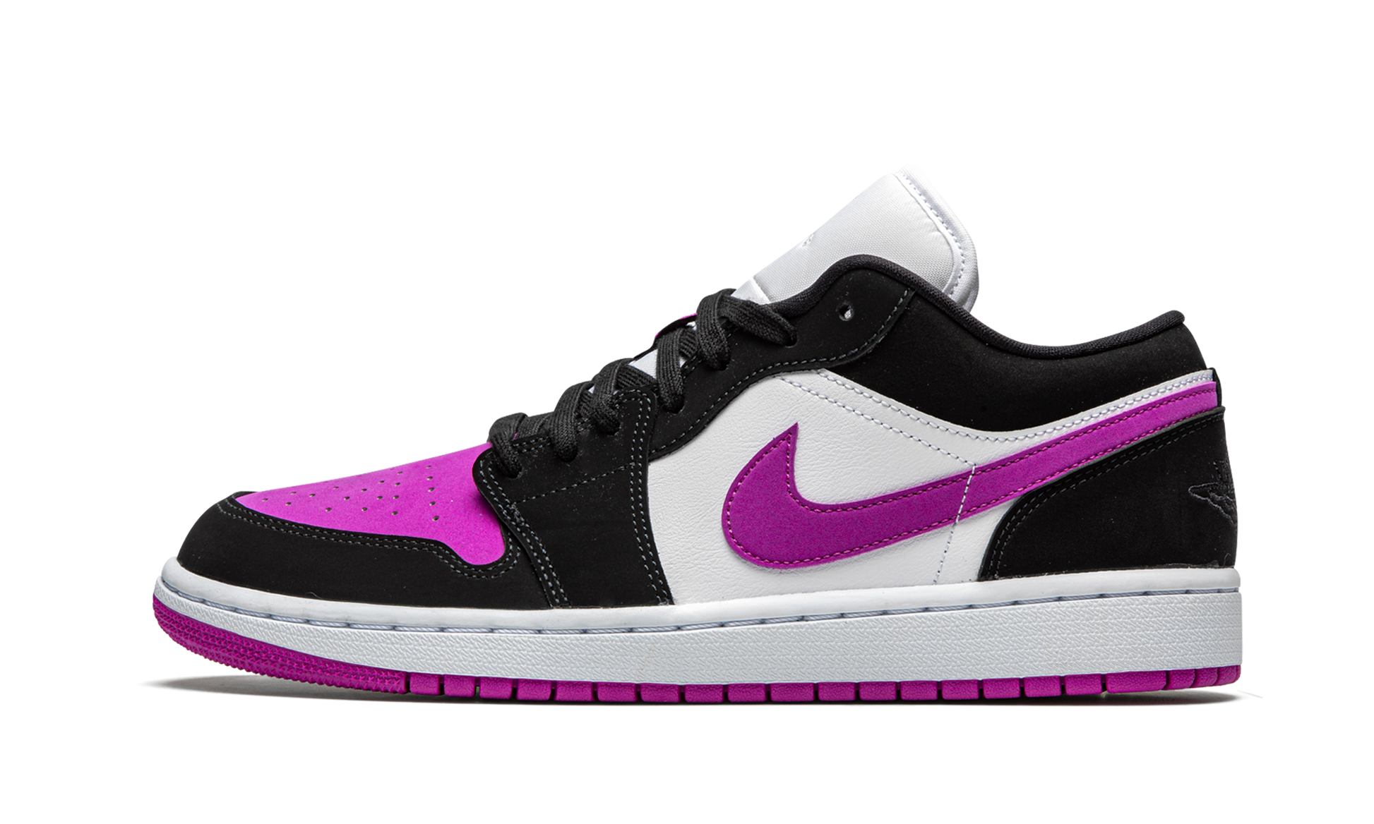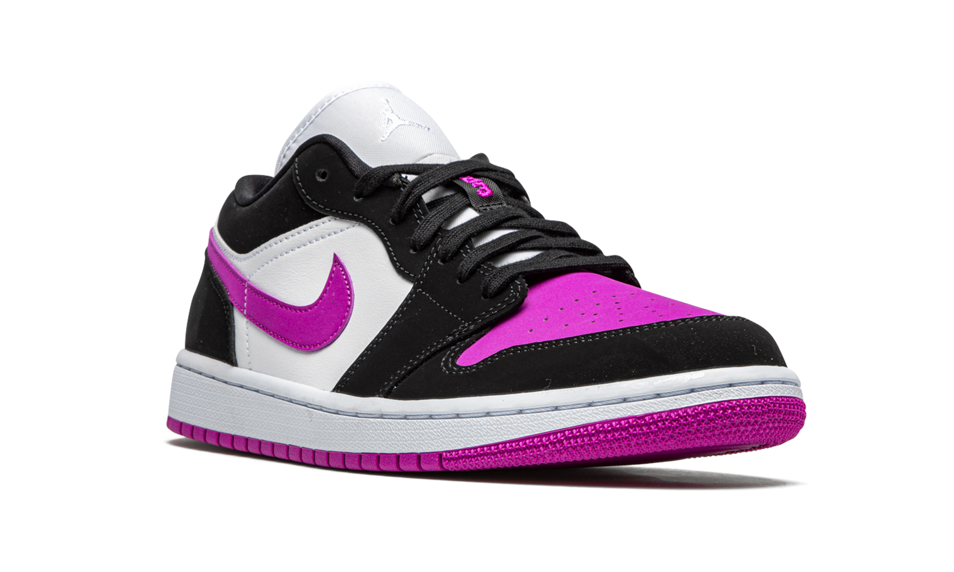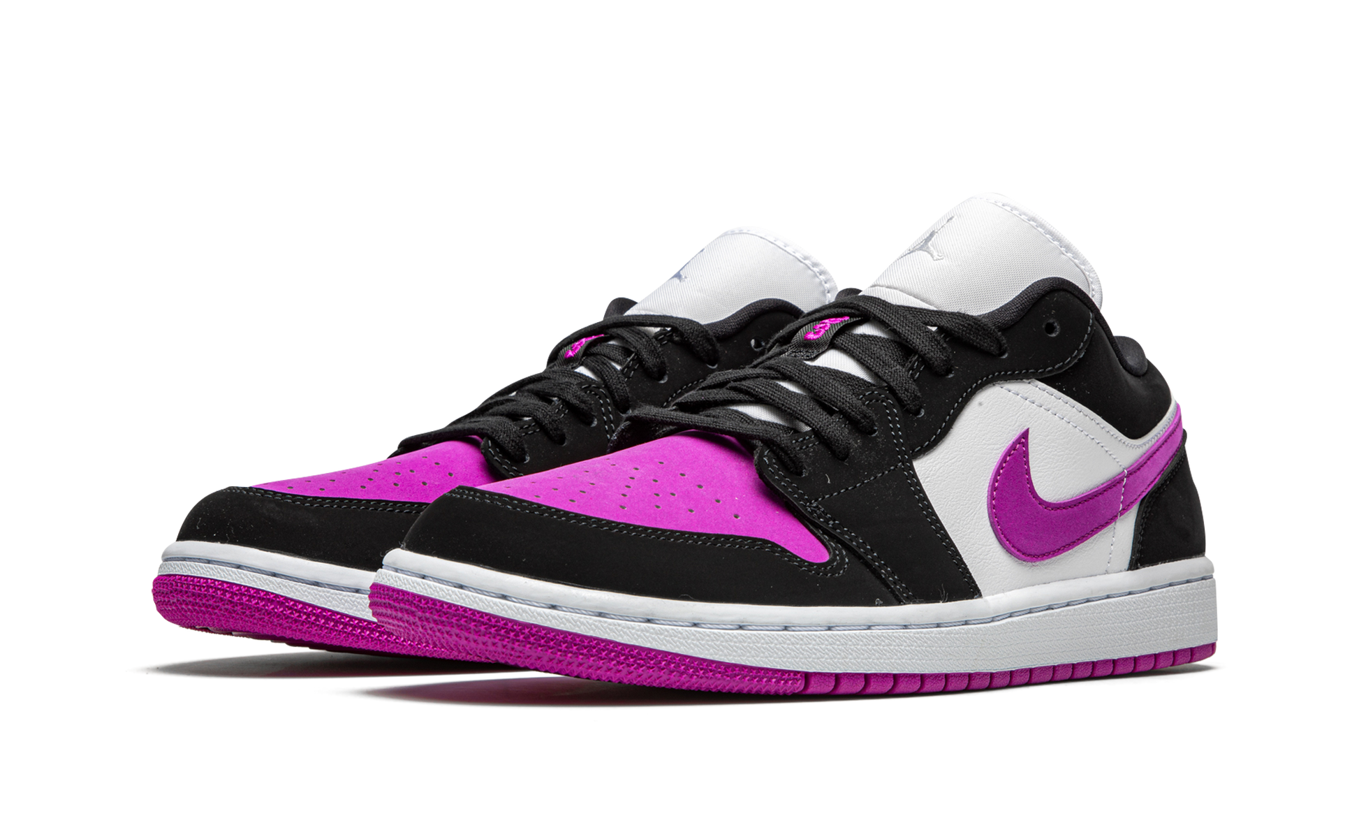 The Women's Air Jordan 1 Low “Black/Cactus Flowerâ€?is an appealing colorway of Michael Jordan's first signature shoe. The low-top Jordan 1 is as popular as ever in the sneaker community for its classic styling. wearability. and comfort. The “Black/Cactus Flowerâ€?checks off all three of those qualities. A bright Cactus Flower. or simply magenta. synthetic nubuck material can be found on the perforated toe. The look is contrasted by black nubuck overlays on the forefoot. eyelets. collar. and heel. A magenta Swoosh appears on either side and a tonal “Wingsâ€?logo is embroidered onto the heel. Finishing details include a white embroidered Jumpman on the white nylon tongue. and Cactus Flower â€?3â€?embroidery on the lace overlay.