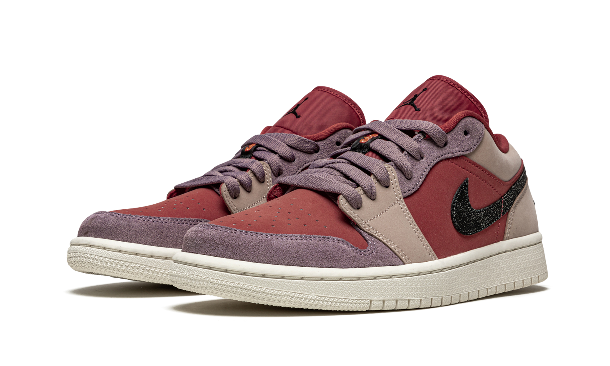 The Women's Air Jordan 1 Low “Canyon Rustâ€?is a women's version of Michael Jordan's first signature shoe in a unique mix of tones. Yet another vibrant look for the popular low-top Jordan 1. the “Canyon Rustâ€?features synthetic nubuck panels in Canyon Rust on the perforated toe and on the mid-panel and on the nylon tongue. Beige overlays appear on the forefoot. lower eyelets. collar. and heel. Elsewhere. buttery Purple Smoke suede detailing can be found on the toe cap and upper eyelets and the same shade of dusty purple is used on the laces. A black Swoosh with glitter speckling appears on either side and a black “Wingsâ€?logo is embroidered on the heel.