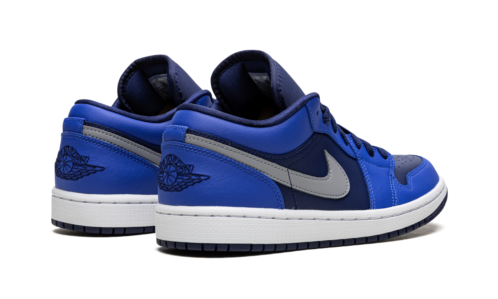 The Women's Air Jordan 1 Low “Game Royal/Blue Voidâ€?is a women's-exclusive colorway of the retro basketball shoe with different shades of blue accenting. Another popular release from Jordan Brand. the Women's Jordan 1 Low “Game Royal/Blue Voidâ€?features the toe. forefoot. eyelets. collar. and heel in Game Royal leather. The base of the upper is featured in a shade of blue called Blue Void. Elsewhere. a Stealth (grey) leather Swoosh is found on either side of the shoe. A navy “Wingsâ€?logo is embroidered onto the heel. The navy nylon tongue features a classic Jumpman logo in a slightly lighter shade of blue.