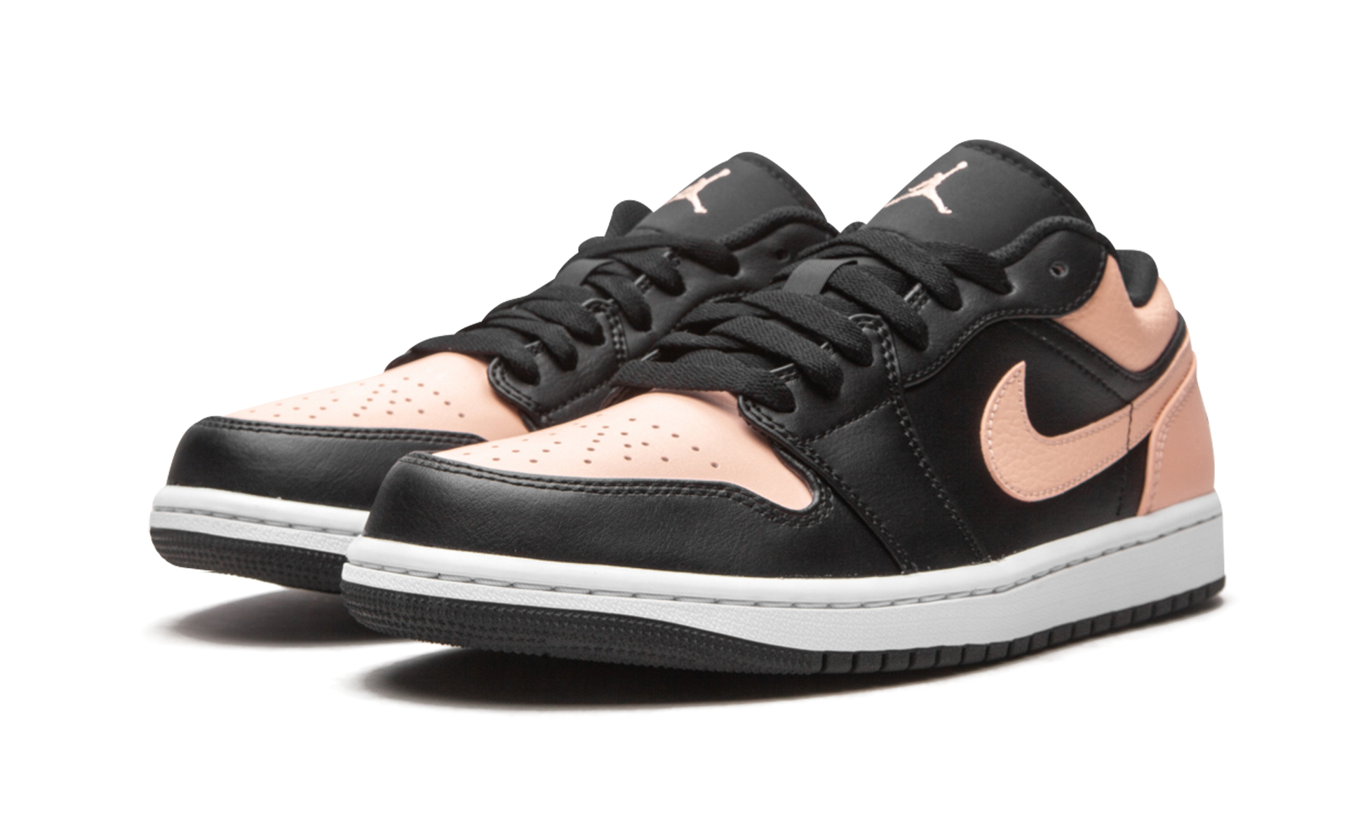 The Air Jordan 1 Low “Crimson Tintâ€?is a stylish look for the low-top version of Michael Jordan's first signature shoe. Executed in a two-tone black and Crimson Tint color block. the “Crimson Tintâ€?is a summer-ready colorway for the iconic silhouette. The forefoot. eyelets. and mid-panel feature a black leather construction. Jordan Brand places a Crimson Tint leather Swoosh on either side and Crimson Tint leather on the perforated toe. collar. and heel. A black embroidered “Wingsâ€?logo is stitched onto the back of the shoe and a Crimson Tint Jumpman appears on the black nylon tongue tag. A simple white rubber midsole and contrasting black outsole round out the look.