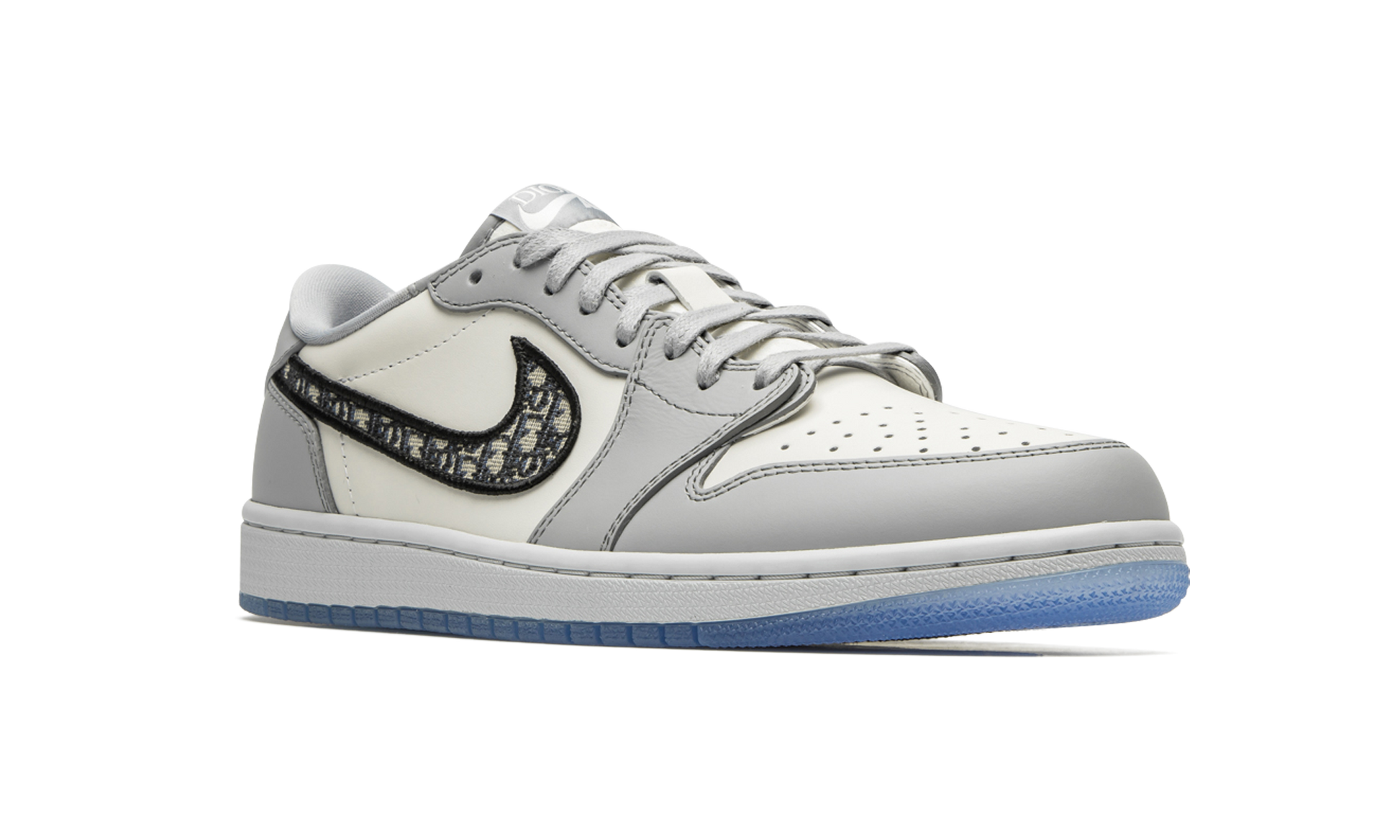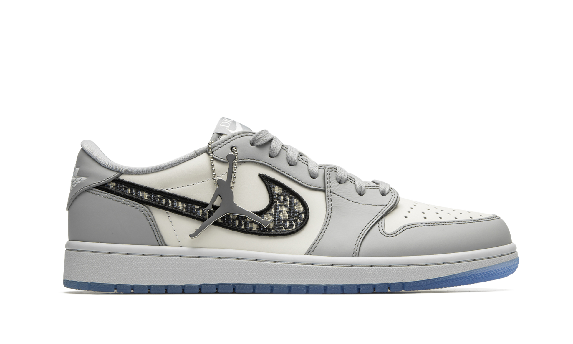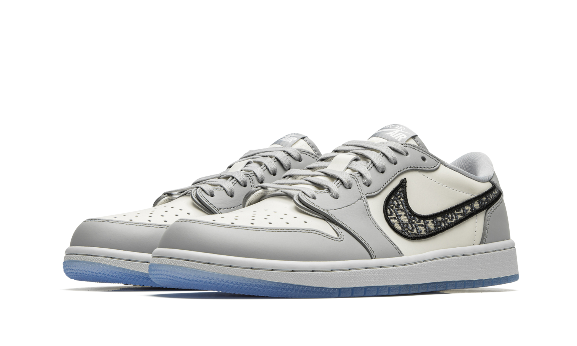 The Dior x Air Jordan 1 Low is one of two extremely limited edition colorways of Michael Jordan's first signature shoe created by high fashion house Dior. in Italy. In what is arguably the most desirable sneaker collaboration of 2020. the Dior x Jordan 1 collection promptly sent waves throughout both the fashion and sneaker scenes when Dior's Creative Director. Kim Jones. announced the partnership at the Dior pre-fall show in Miami in 2020. The minimal aesthetic of Dior's Jordan 1 is underscored by the Dior grey leather overlays on the forefoot. eyelets. collar. and heel. Buttery smooth white leather forms the base of the shoe. appearing on the perforated toe and mid-panel. An embroidered monogram Swoosh covers either side and a white “Air Diorâ€?Wings emblem graces the heel. Finishing touches include a white midsole and contrasting icy blue translucent outsole. The Dior x Air Jordan 1 Low was released on June 25. 2020.