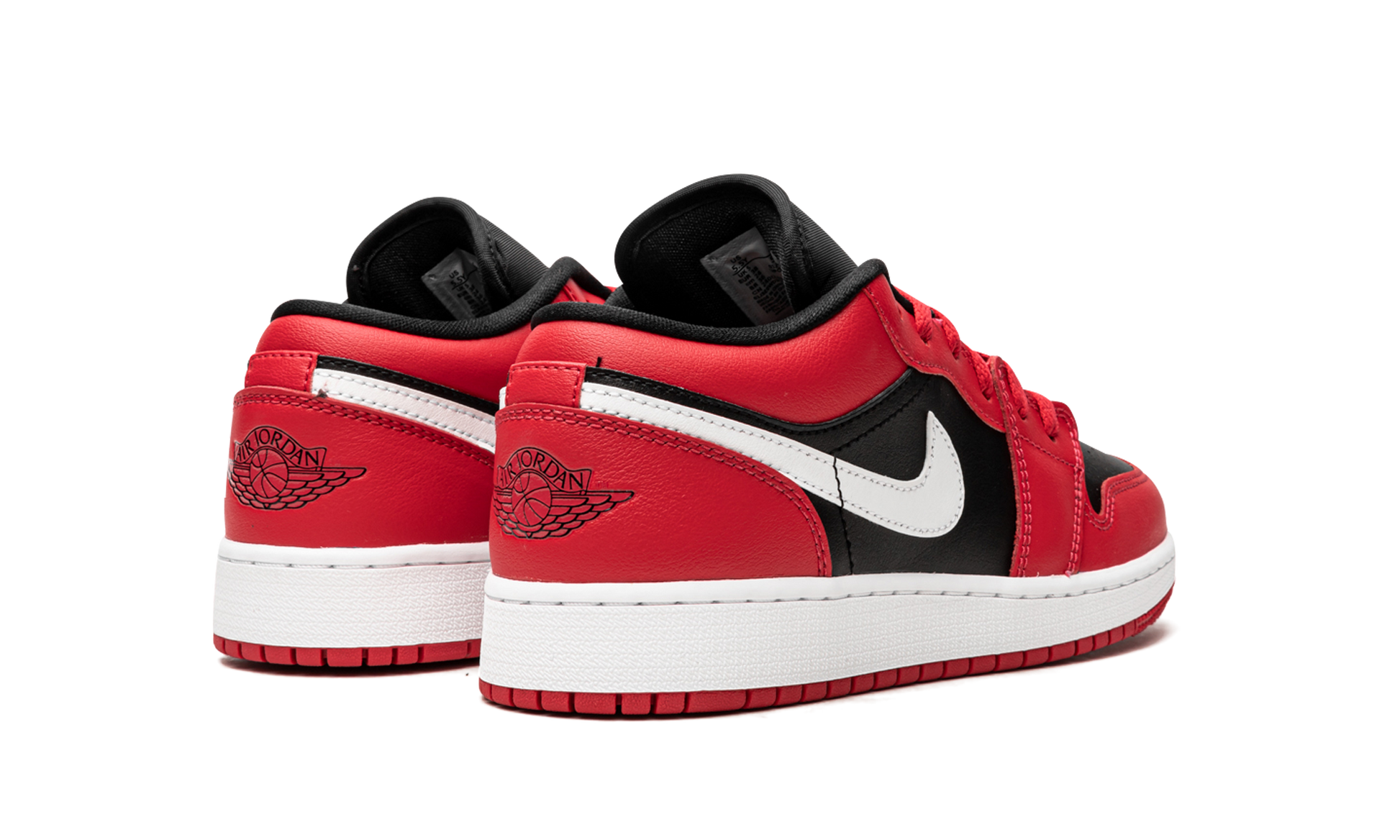 The Air Jordan 1 Low GS “Black/Very Berryâ€?is the youth sizing version of Michael Jordan's first signature shoe in a colorway that honors the Basketball Hall of Famers' run with the Chicago Bulls. Appearing on the silhouette's low-top model. the “Black/Very Berryâ€?presents a new way for Jordan Brand to show love to the Bulls and Jordan's many memorable moments with the NBA franchise. Black leather can be found on the perforated toe and mid-panel. Contrasting Very Berry leather panels on the forefoot. eyelets. collar. and heel balance out the look. A white leather Swoosh appears on both sides of the shoe and a black “Wingsâ€?logo dots the heel. A red Jumpman is embroidered onto the black nylon tongue and black â€?3â€?detailing can be found on the lace overlay incorporated into the design of the red laces.