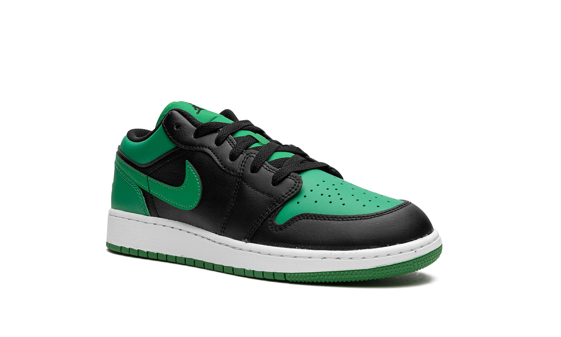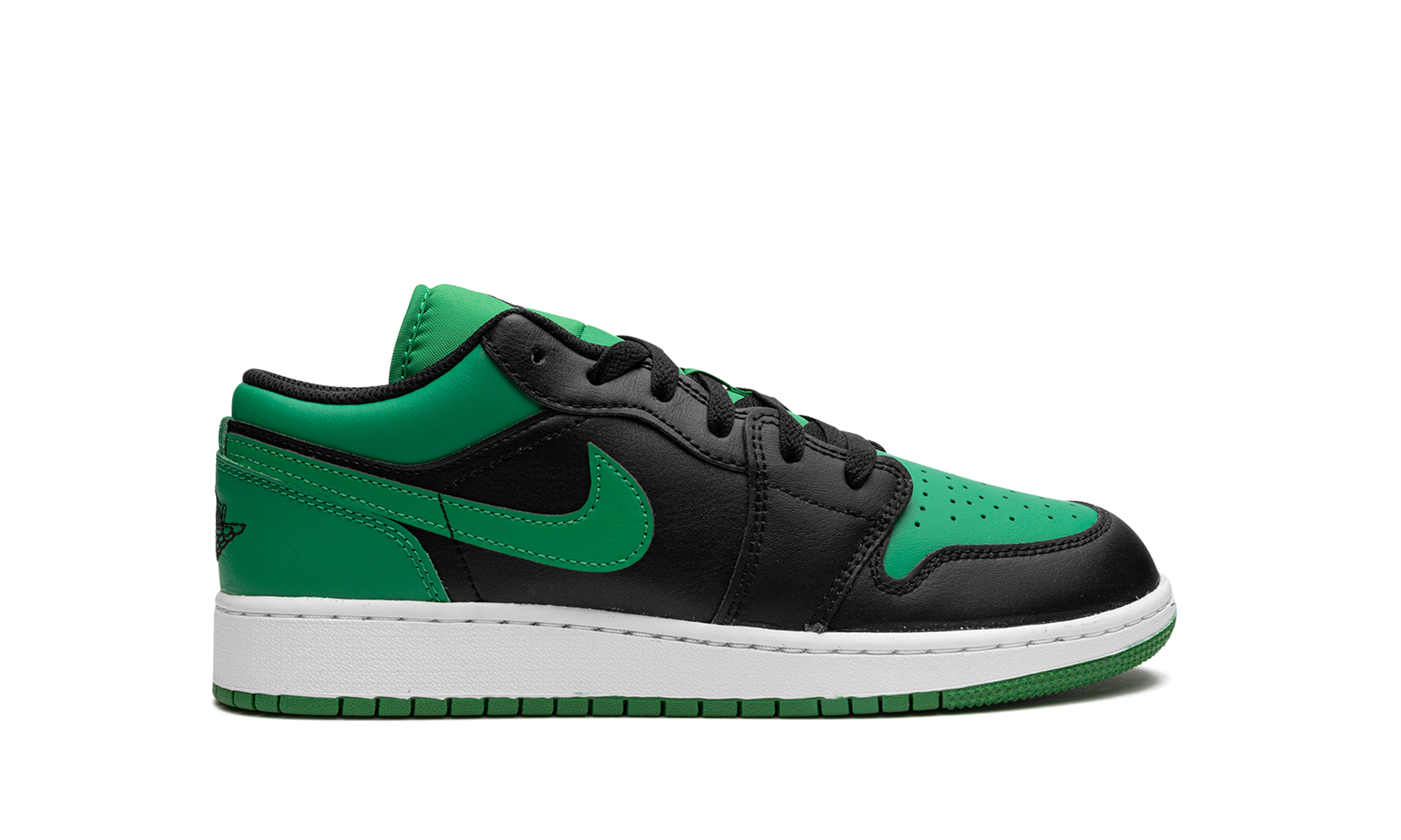 The Air Jordan 1 Low GS “Lucky Greenâ€?is the youth sizing of the retro basketball and lifestyle shoe in a two-tone. black-and-green colorway that's loosely inspired by the Boston Celtics. In no way officially affiliated with the Celtics. the “Lucky Greenâ€?seems to nod to the storied NBA franchise with its color scheme. which is the same as the Celtics' alternate black team uniforms. The shoe features a Lucky Green leather base with black leather overlays. A green leather Swoosh logo appears on either side of the shoe and green “Wingsâ€?branding is embroidered on the heel. A black Jumpman appears on the tongue. Release date: April 11. 2023