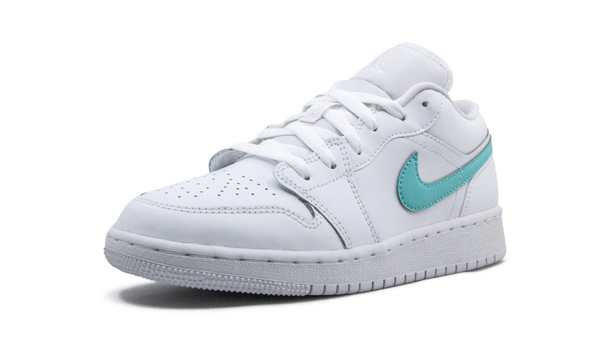 The Air Jordan 1 Low GS “Multicolor Swooshâ€?is the youth sizing of Michael Jordan's first signature shoe in an appealing colorway for children. Timeless and versatile. the Jordan 1 Low is one of the most popular silhouettes under Jordan Brand's umbrella of footwear classics. Here. the “Multicolor Swooshâ€?features super crisp white leather detailing on the perforated toe. mid-panel. collar. and heel. As its name suggests. this shoe displays different colored leather Swooshes. The left shoe features a Light Aqua leather Swoosh on the outside and yellow leather Swoosh hit on the medial side. The right shoe displays pink and neon green Swooshes on the outside and inside of the shoe. respectively. Tonal Jumpman embroidery can be found on the white nylon tongue. A white nylon tongue and white “Wingsâ€?branding on the heel complete the appearance of this Jordan 1 Low in youth sizing.