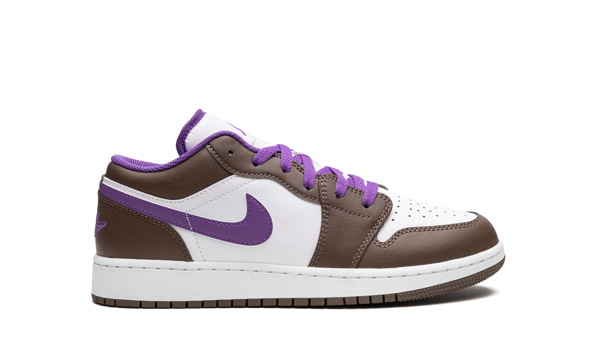 The Air Jordan 1 Low “Purple/Mochaâ€?(or officially “Palomino/Wild Berryâ€? is the youth sizing for a colorway of the low-top retro basketball shoe with a unique appearance. Keeping things clean and versatile. the shoe is equipped with a white leather base that gives way to contrasting Palomino (brown) leather overlays. A Wild Berry (purple) leather Swoosh is found on either side of the shoe. Purple “Wingsâ€?branding is embroidered on the heel. Additional purple accenting can be found on the Jumpman on the tongue. Underfoot. a white rubber midsole and brown rubber outsole complete the look. Release date: March 1. 2023