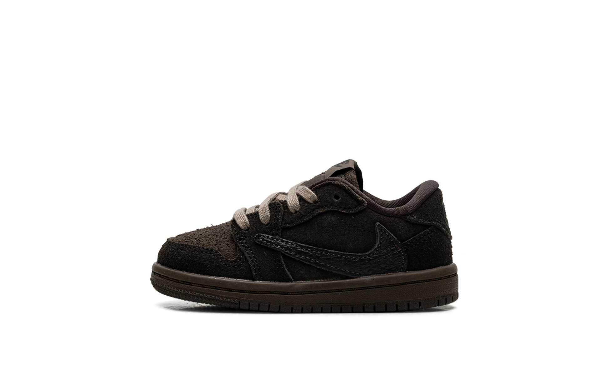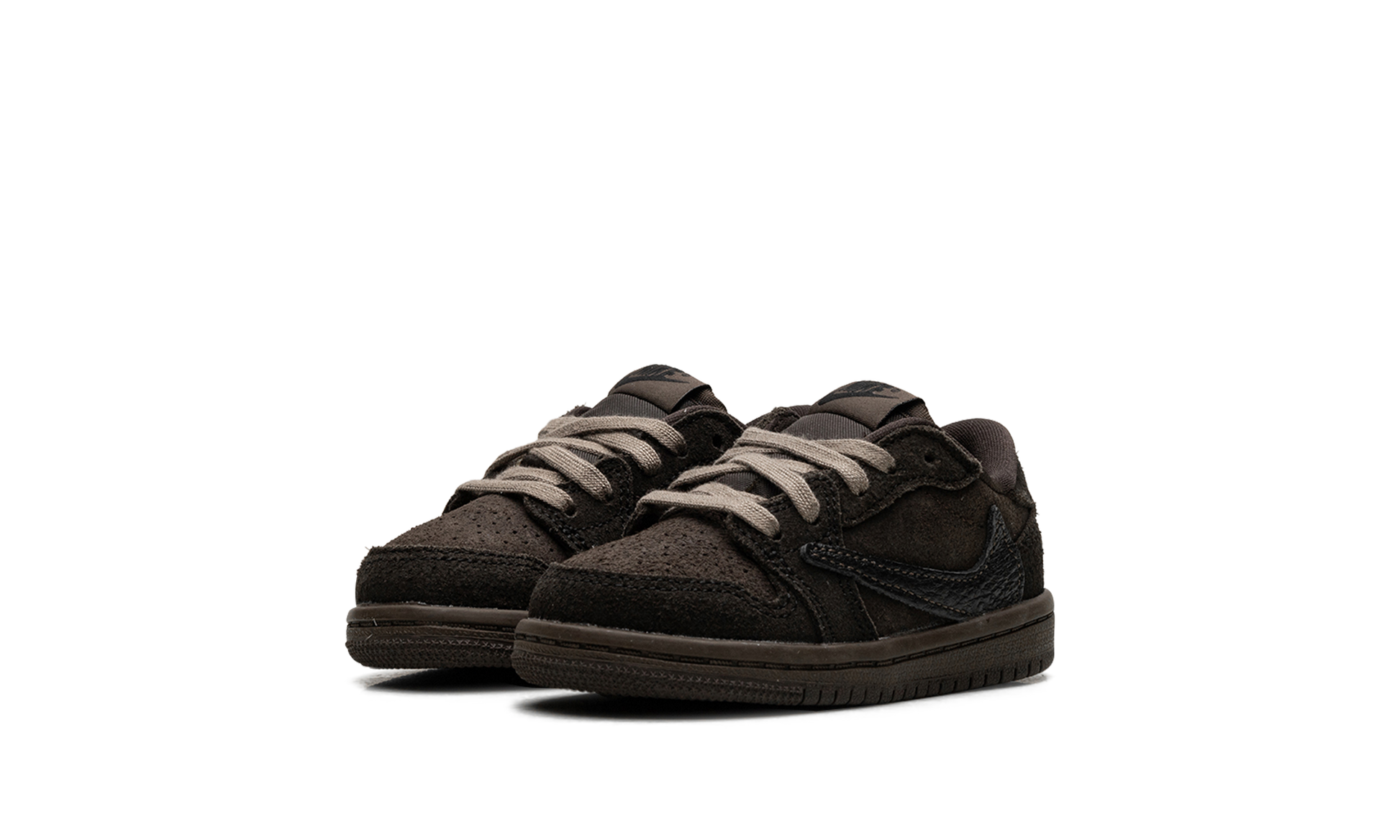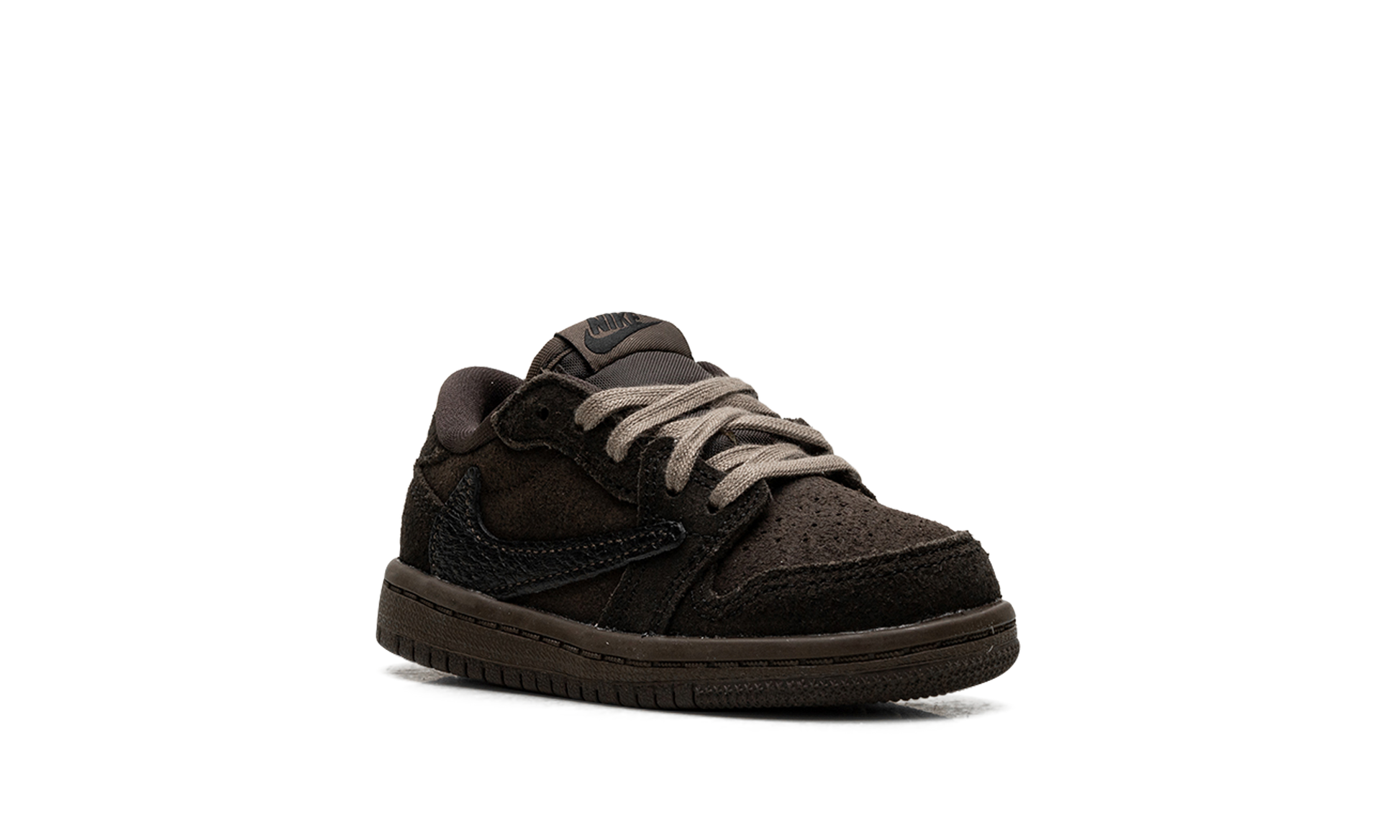 The Travis Scott x Air Jordan 1 Low TD "Velvet Brown" reimagines the iconic silhouette with premium materials and Cactus Jack's signature flair. The toddler version of this Jordan 1 features a luxe suede and velvet upper in rich brown tones and reverse Swoosh detailing. This limited-edition AJ1 kids sneaker delivers a bold fusion of style and exclusivity.