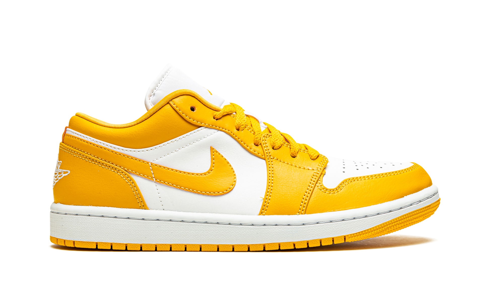 The Air Jordan 1 Low “Pollenâ€?is a scorching hot colorway of Michael Jordan's first signature shoe in the popular low-top silhouette. Released by Jordan Brand in 2021. this “Pollenâ€?colorway features white leather on the perforated toe and mid-panel. The forefoot. eyelets. collar. heel. and Swoosh are designed in Pollen yellow leather. A white “Wingsâ€?logo is embroidered on the back and a Pollen-colored Jumpman appears on the white nylon tongue. White â€?3â€?embroidery is stitched onto the lace overlay to complete the look.
