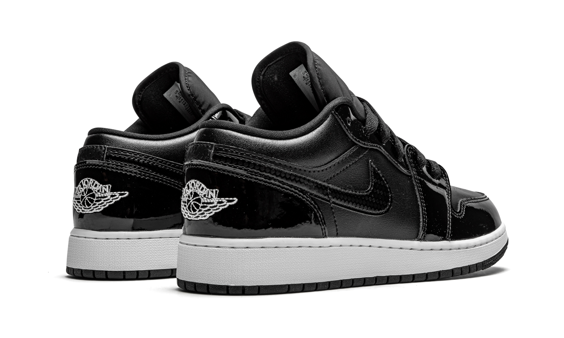 The Air Jordan 1 Low SE GS “All-Star 2021â€?is a special NBA All-Star Weekend 2021 colorway of Michael Jordan's first signature shoe in youth sizing. Along with the Jordan 1 Mid of the same nickname. the “All-Star 2021â€?is a February 2021 release that dresses the beloved Jordan 1 Low in a sleek black-and-white colorway for endless wearability. Glossy black patent leather panels on the forefoot. eyelets. collar. and heel attract attention while retaining a casual appearance. Jordan Brand continues the black monochromatic theme by placing black leather on the perforated toe and on the mid-panel and collar. A white embroidered “Wingsâ€?logo can be found on the heel and a tonal carbon-fiber-like texture is added to the side Swooshes. On the black nylon tongue. a white embroidered circular Jumpman motif finishes off the look. Release date: February 12. 2021.