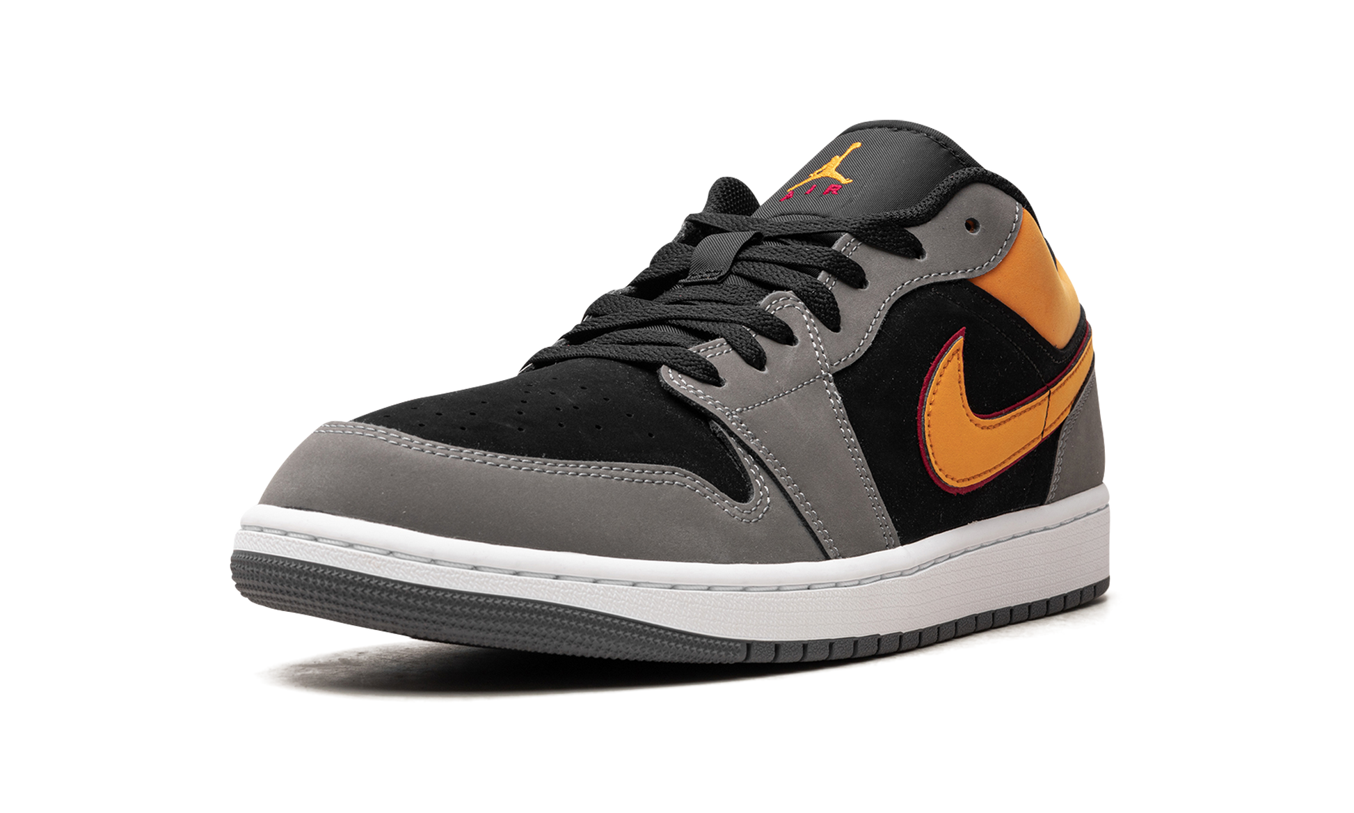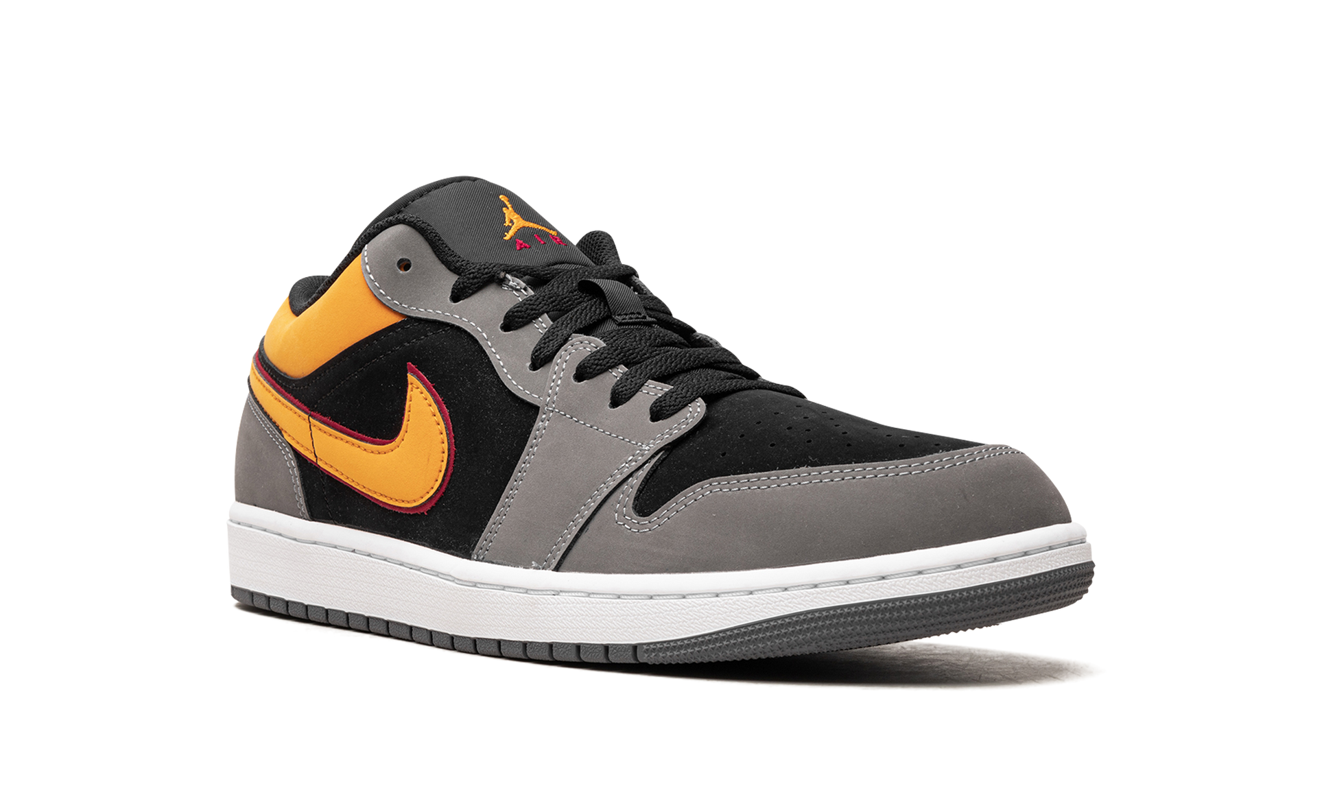 The Air Jordan 1 Low "Vivid Orange" is a colorway of the retro basketball shoe that stands out with eye-catching orange accents. The upper features a black synthetic nubuck base with Light Graphite overlays. A leather Vivid Orange Swoosh is located on either side of the shoe. matching font found on the “Wingsâ€?logo on the heel. More Vivid Orange accenting is seen on the collar and Jumpman logo on the tongue. A white rubber midsole and black rubber outsole complete the look. Release date: August 29. 2023