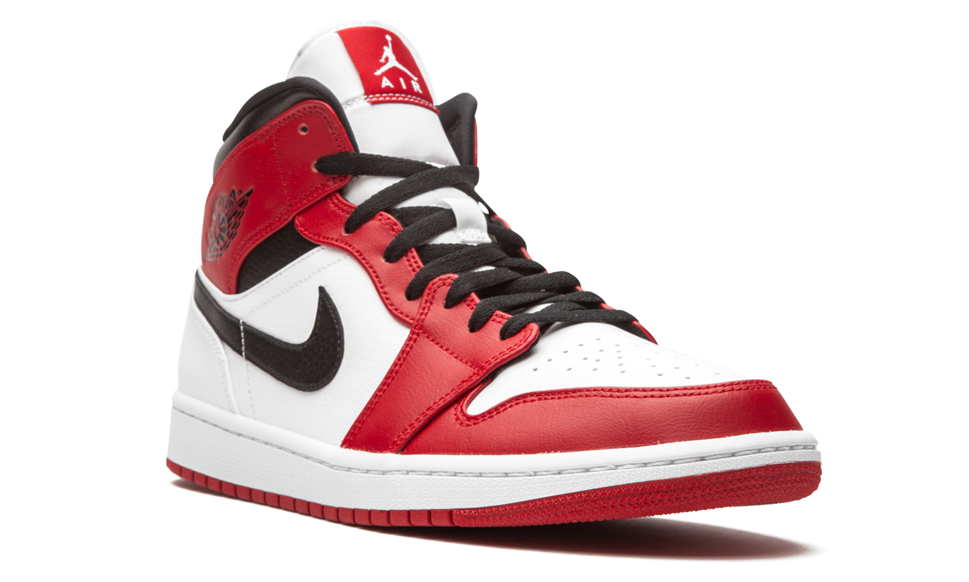 The Air Jordan 1 Mid “Chicago 2020â€?is yet another desirable “OGâ€?inspired colorway of Michael Jordan's first signature model in modified mid-top height. The Jordan 1 Mid is entrenched as a popular variant of the legendary silhouette as Jordan Brand shows no signs of slowing down its pace of producing mid-tops in classic colorways such as this “Chicagoâ€?look. White leather forms the base of the upper. appearing on the perforated toe. mid-panel. and heel. Black leather Swoosh detailing graces each side and black “Wingsâ€?branding can be found on the fiery red leather collar. Additional red leather overlays appear on the forefoot. eyelets. and toe cap. Black cotton laces sit atop the white nylon tongue. A red tongue tab with white Jumpman detailing finishes off the look of the “Chicagoâ€?Jordan 1 Mid. Release date: Summer 2020.
