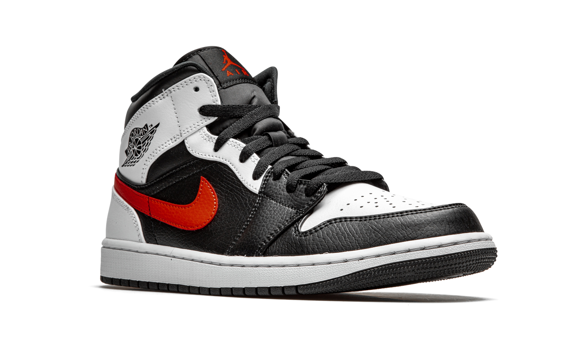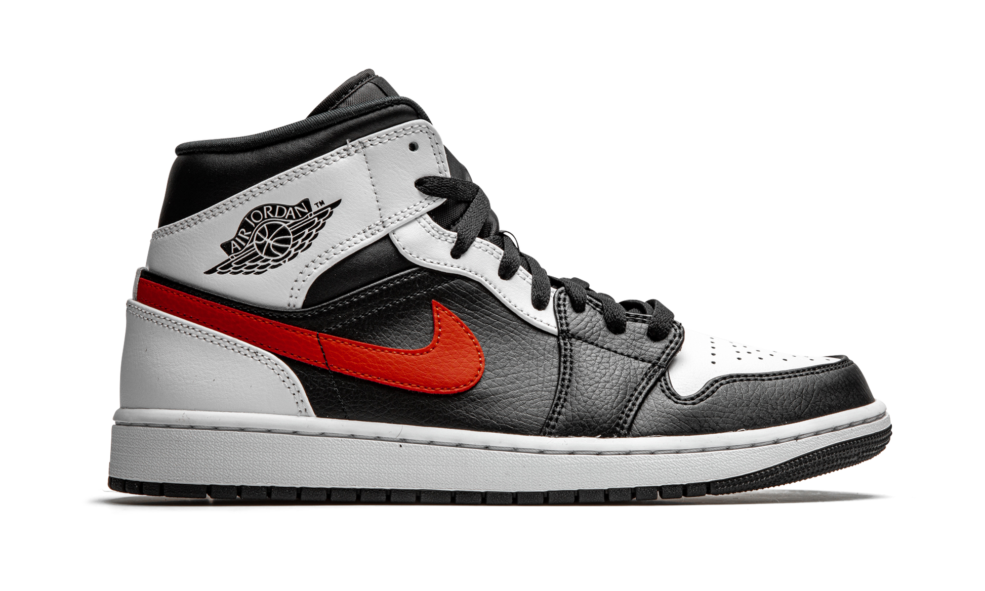 The Air Jordan 1 Mid “Chile Redâ€?is a Chicago Bulls inspired look for Michael Jordan's first signature shoe in its mid-top silhouette. The Bulls' red. black. and white team uniform colors are proudly on display on the “Chile Red.â€?though the aforementioned shade of red is slightly darker than the hue associated with the NBA team. Nonetheless. the arrangement of colors make for yet another versatile Jordan 1 Mid. Black tumbled leather overlays contrast the matte white leather construction of the perforated toe and the upper eyestay. collar. and heel. A Chile Red leather Swoosh appears on either side and a black “Wingsâ€?graphic can be found on the collar. Additional branding appears in the form of a red Jumpman on the nylon tongue tag.