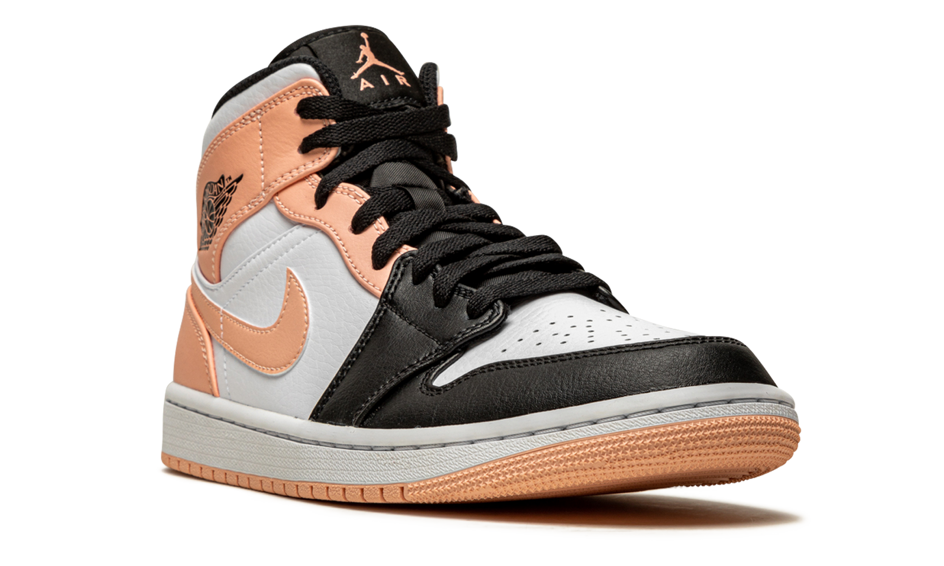 The Air Jordan 1 Mid “Crimson Tintâ€?is a unique colorway of Michael Jordan's first signature shoe. Though the Crimson Tint leather overlays are the main attraction. the model does show love to a classic Air Jordan 1 colorway: the model's original “Black Toeâ€?makeup from 1985. The black leather panels on the toe cap. forefoot. and lower eyelets contrast the white perforated leather found on the toe and mid-panel. evoking the “Black Toeâ€?design. A pink leather Swoosh appears on both sides and a black “Wingsâ€?logo is stamped on the collar. A Crimson Tint Jumpman logo can be found on the black nylon tongue. Black shoelaces. a white midsole. and a Crimson Tint outsole round out the look.