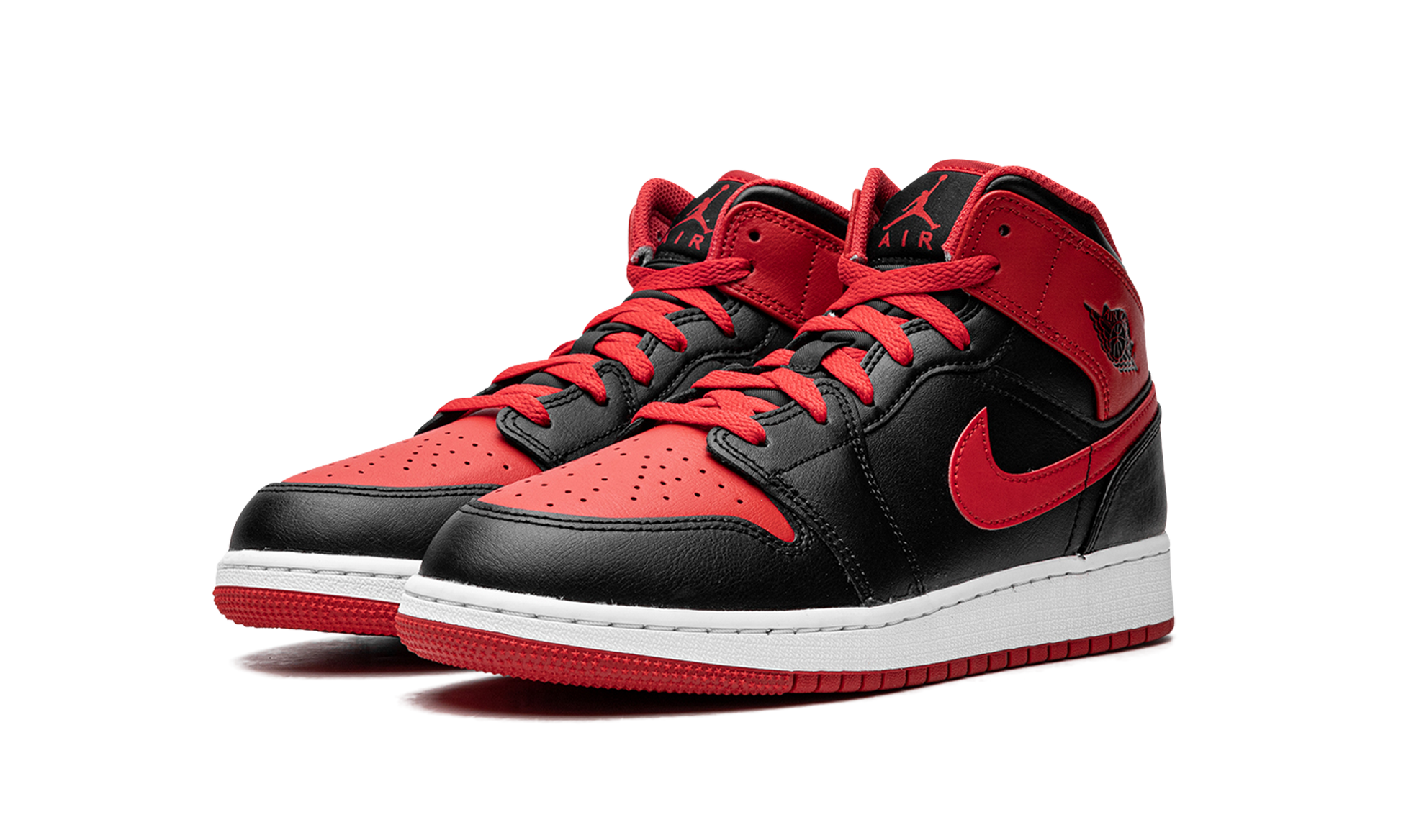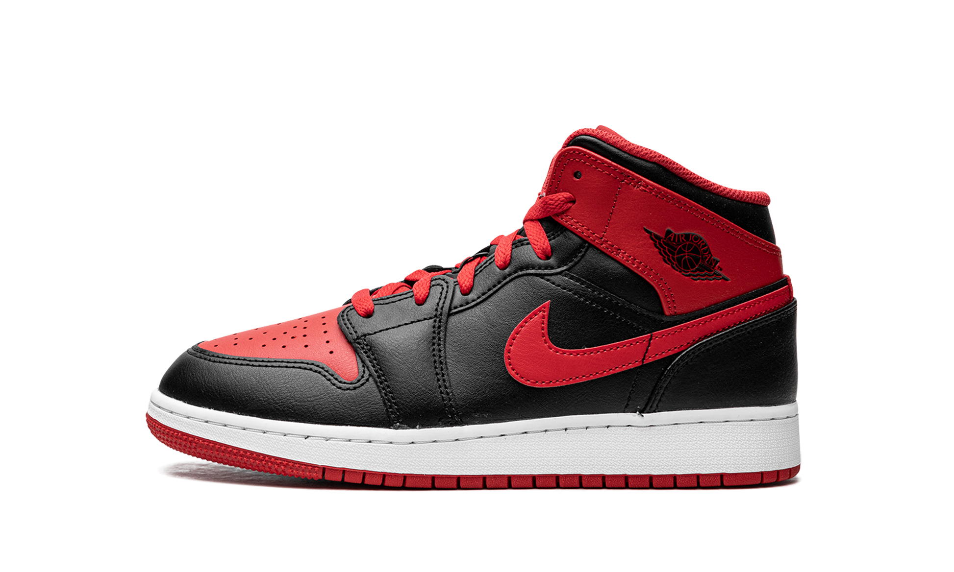 The Air Jordan 1 Mid GS “Alternate Bredâ€?is the youth sizing of the modified version of the classic. original Jordan 1 colorway that debuted in 1985. As its name suggests. the “Alternate Bredâ€?switches up the look of the Air Jordan 1's “Bredâ€?makeup by changing its black-and-red color block ever so slightly. The “Alternate Bredâ€?features a Fire Red leather perforated toe. while the rest of the base is designed in black leather. A Fire Red leather Swoosh appears on both sides of the shoe. A red leather overlay is found on the collar with a black “Wingsâ€?logo. Underfoot. a white rubber midsole and red outsole complete the look. Release date: November 12. 2022