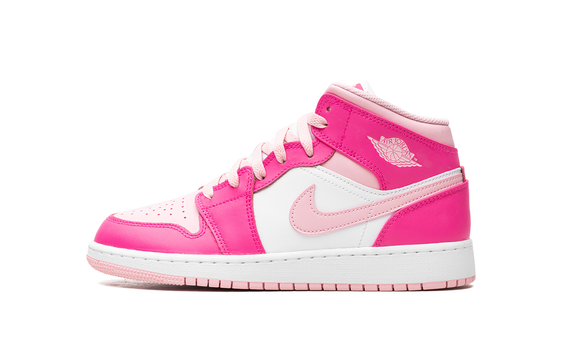 The Air Jordan 1 Mid GS “Fierce Pinkâ€?is the youth sizing of the lifestyle shoe with pink accents that give it a can't-miss look. The colorway is complete with a Medium Soft Pink leather toe with Fierce Pink leather overlays. Medium Soft Pink accenting is also seen on the leather Swoosh on the sides and on the collar. A classic “Wingsâ€?logo appears on the overlay on the collar and a Jumpman is found on the tongue. Underfoot. the white rubber midsole and pink rubber outsole put the finishing touches on the shoe's design. Release date: July 24. 2023