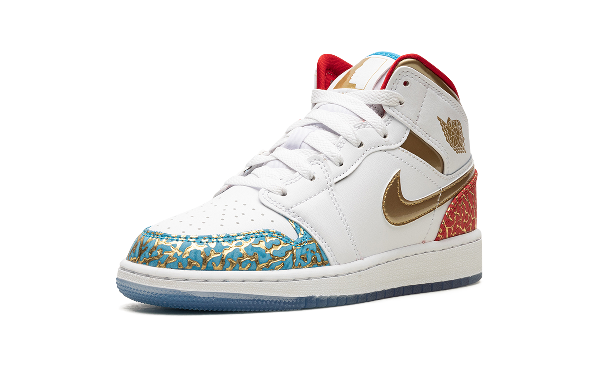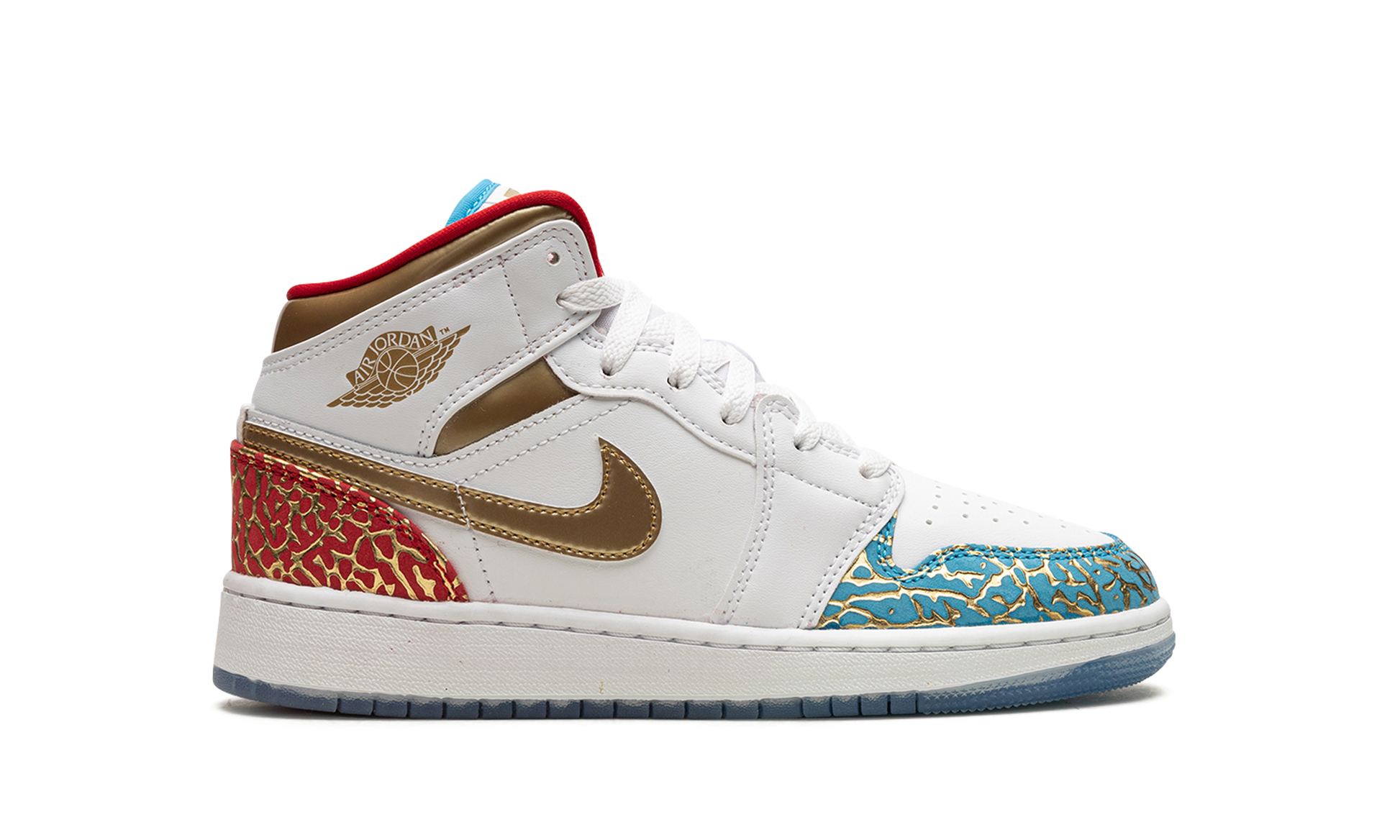 The Air Jordan 1 Mid GS "UNC to CHI" is the youth sizing of the colorway that shows love to Michael Jordan's college and professional basketball careers. The “UNC to CHIâ€?theme debuted on the Air Jordan 1 High OG before it appeared on other Air Jordan models. including this Jordan 1 Mid. For this interpretation of the “UNC to Chicagoâ€?theme. Jordan Brand gives the colorway elephant print overlays inspired by the patterning seen on the Air Jordan 3. Blue Lightning-colored elephant print inspired by the North Carolina Tar Heels. Jordan's alma mater. appears on the toe while University Red elephant print inspired by the Chicago Bulls. Jordan's NBA team. is seen on the heel. White leather is found on the base. A Metallic Gold leather Swoosh and “Wingsâ€?logo give the shoe a championship-inspired look. Release date: June 24. 2023