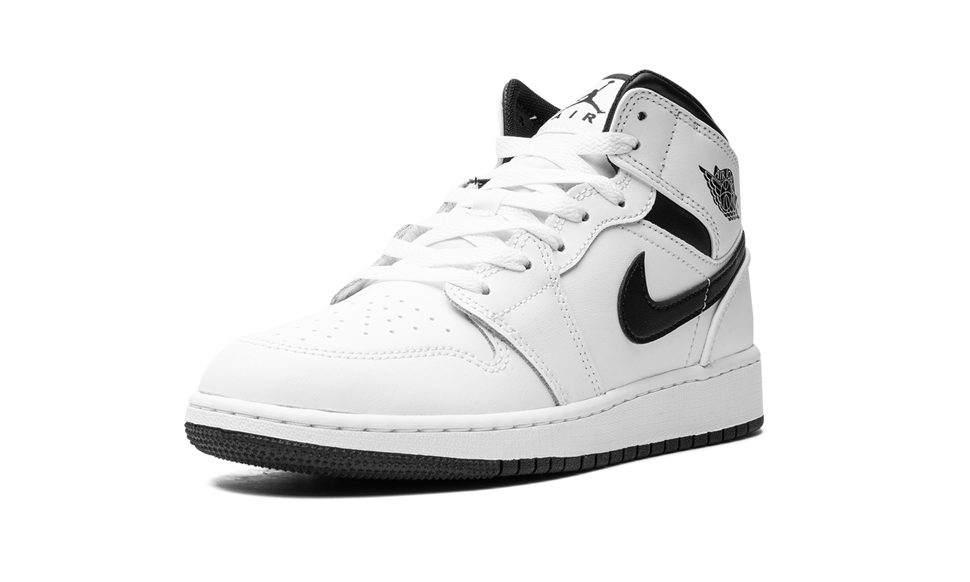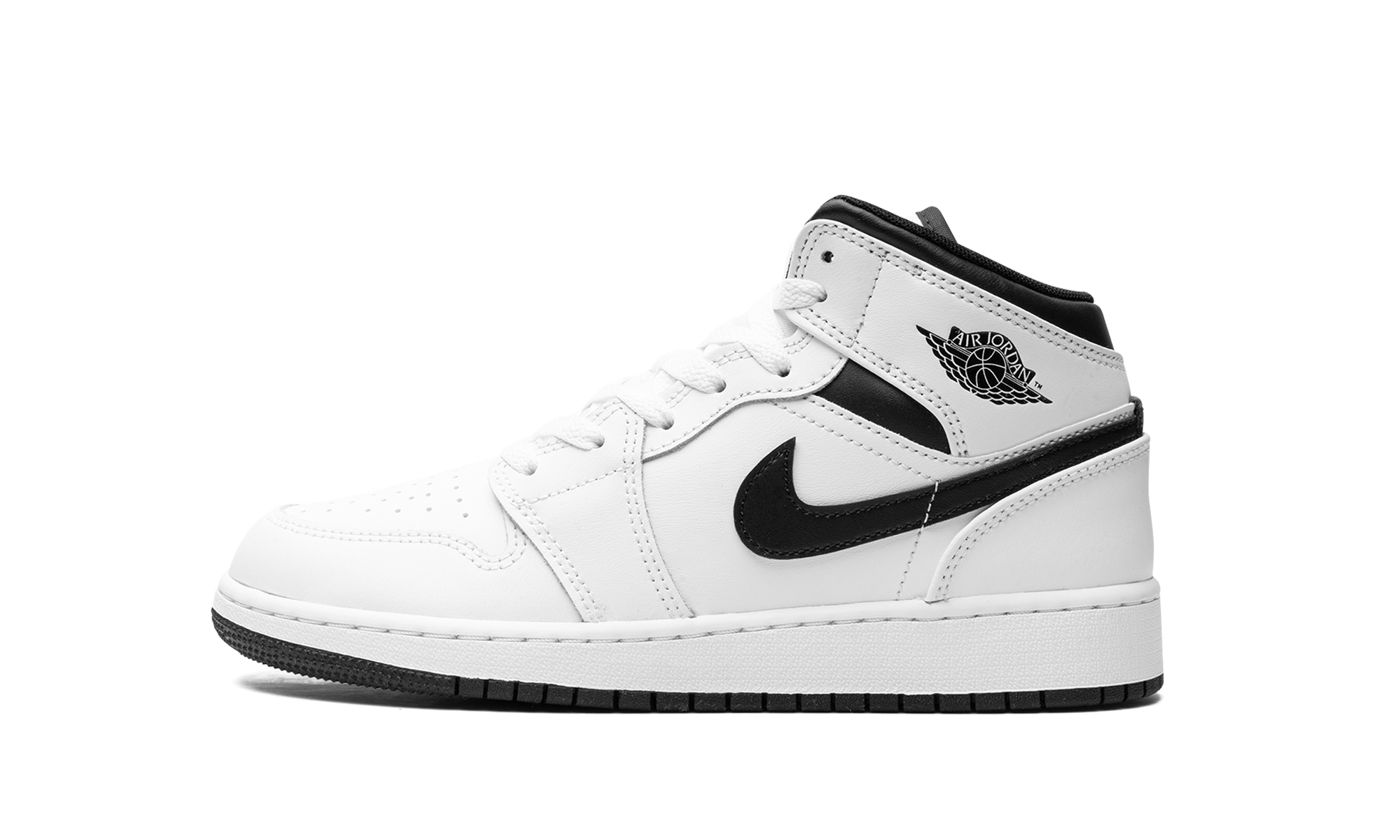 The Air Jordan 1 Mid GS "White/Black" is the youth sizing of the “Pandaâ€?inspired colorway of the casual shoe. The Jordan 1 Mid “White/Blackâ€?features a predominantly white leather construction with black accents. A black leather Swoosh logo can be seen on the sides of the shoe. while a black “Wingsâ€?logo appears on the collar. Classic Jumpman and “Airâ€?branding are located on the tongue tag. A white midsole and black outsole put the finishing touches on the clean design. Release date: December 12. 2023