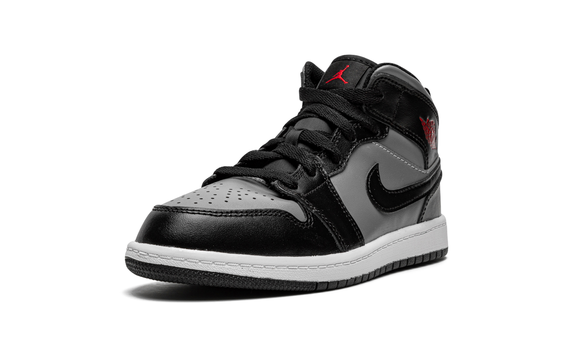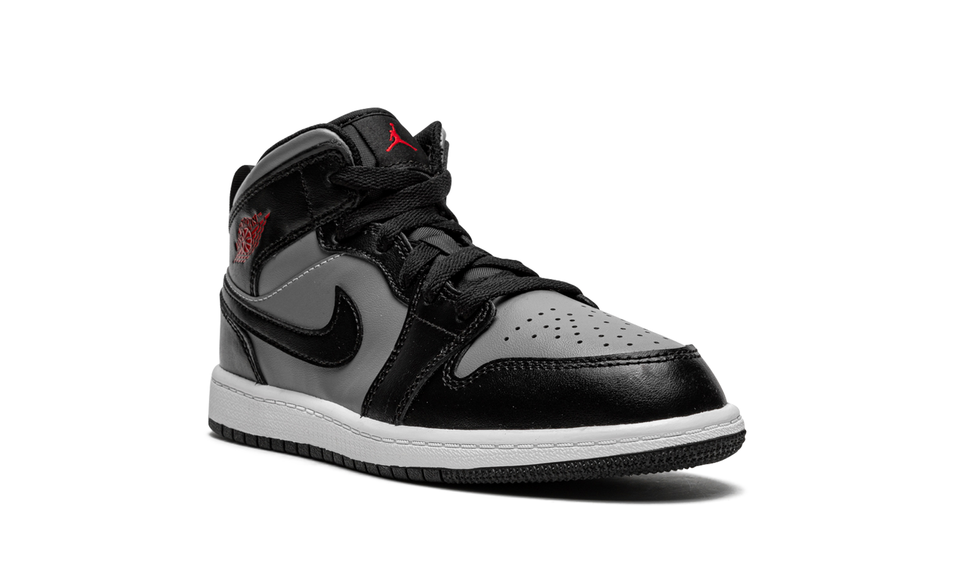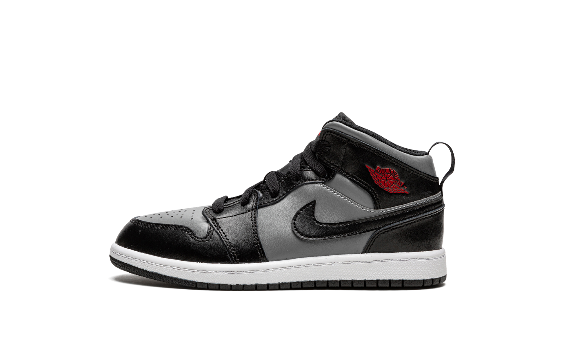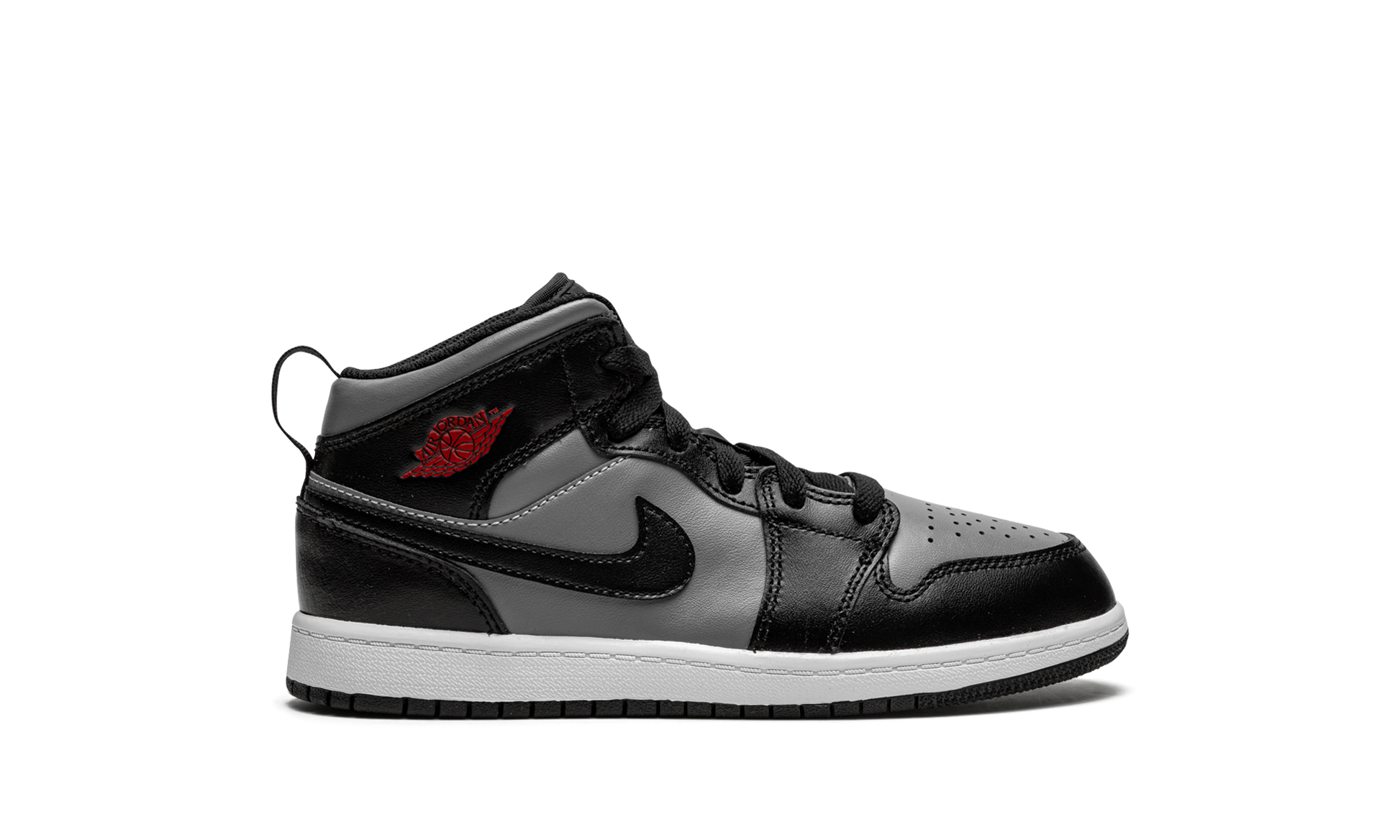 The Air Jordan 1 Mid PS “Black/Shadow Greyâ€?is the preschool sizing of Michael Jordan's first signature shoe in a mostly two-tone. grey-and-black colorway that looks to the shoe's original “Shadowâ€?makeup. AKA the “Shadow/Redâ€?colorway. this is a versatile look for the Air Jordan 1 Mid that features Particle Grey leather on the perforated toe. mid-panel. collar. and heel. Contrasting black leather appears on the overlays and Swoosh branding. The two-tone appearance is similar. but not a direct one-to-one. of the Air Jordan 1's original “Shadowâ€?colorway. A Gym Red “Wingsâ€?logo can be found on the collar and a red Jumpman with “Airâ€?detailing appears on the black nylon tongue tag. A black nylon tongue. white rubber midsole. and black outsole complete the look.