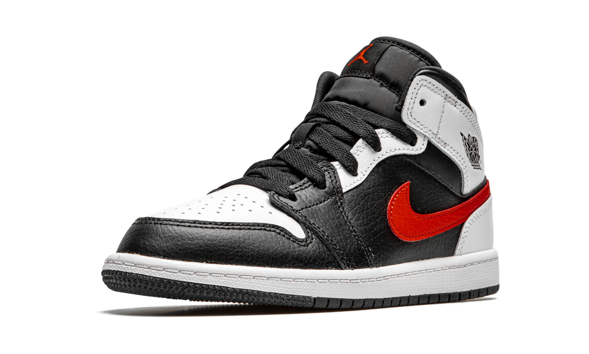 The Air Jordan 1 Mid PS “Chile Redâ€?is the preschool sizing of Michael Jordan's first signature shoe in a Chicago Bulls inspired colorway. The NBA franchise's familiar red. black. and white team uniform colors adorn the “Chile Redâ€?in an intriguing way. beginning with black tumbled leather appearing on the mid-panel. forefoot. lower eyestay. and collar. From there. white leather adorns the perforated toe. upper eyelets. collar. and heel. Branding appears in the form of a bold Chile Red leather Swoosh on either side and a white “Wingsâ€?logo on the collar. Additionally. a small red Jumpman insignia can be found on the top of the black nylon tongue. Jordan Brand opts for a clean design underfoot by pairing the white rubber midsole with a black outsole.