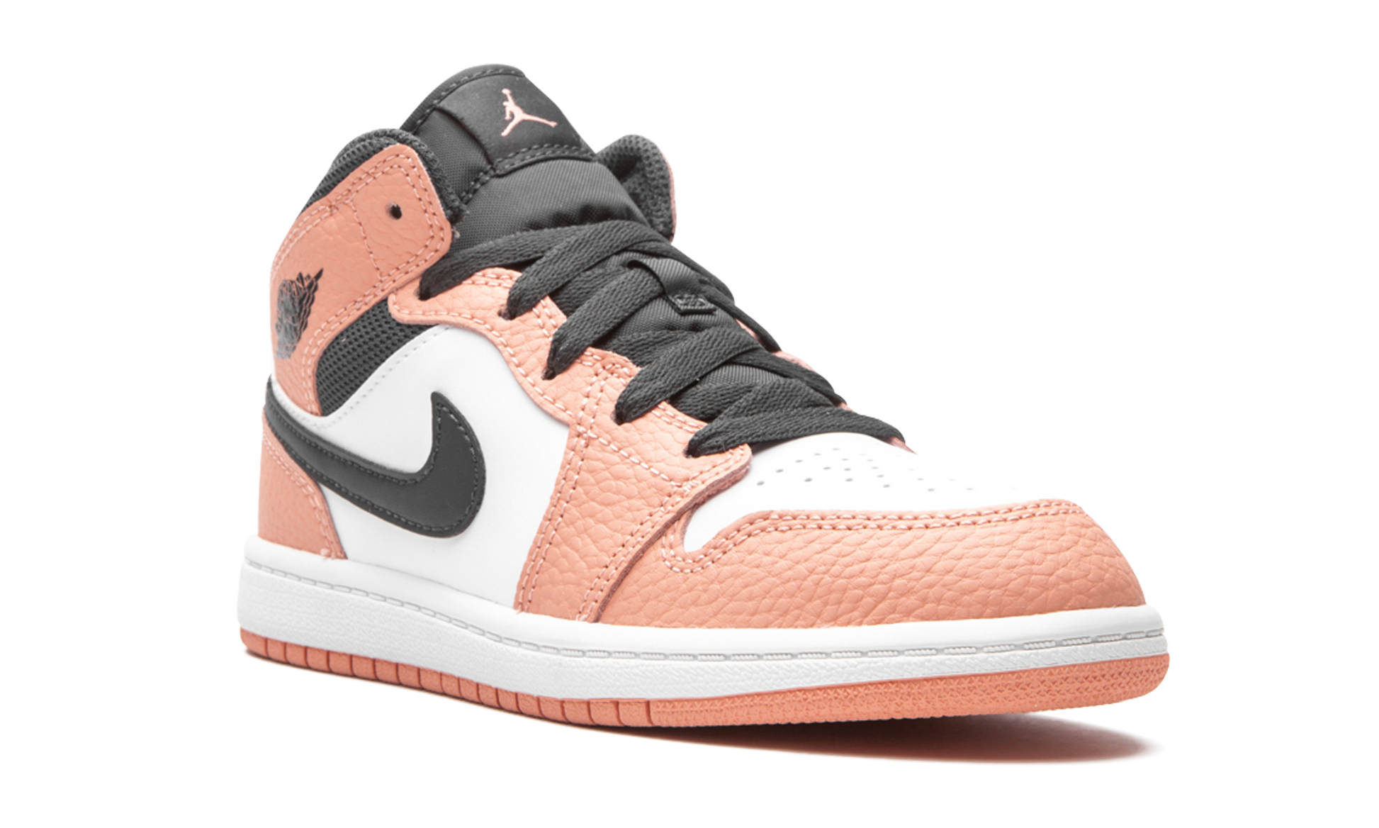 The Air Jordan 1 Mid PS “Pink Quartzâ€?is a warm and vibrant colorway of Michael Jordan's first signature shoe in its mid-top silhouette. A children's exclusive makeup. the “Pink Quartzâ€?is one of the many modern takes on the Air Jordan 1 Mid produced by Jordan Brand since the model's rise in popularity in the late 2010s. Smooth white leather appears on the perforated toe and on the mid-panel. Contrasting Pink Quartz tumbled leather panels on the forefoot. eyelets. collar. and heel break up the look and evoke a summertime vibe. A black leather Swoosh appears on both sides and a black “Wingsâ€?logo on the collar. The black nylon tongue tag displays a small pink Jumpman logo. The Pink Quartz nylon pull loop on the heel provides functionality. assisting on/off wearability.