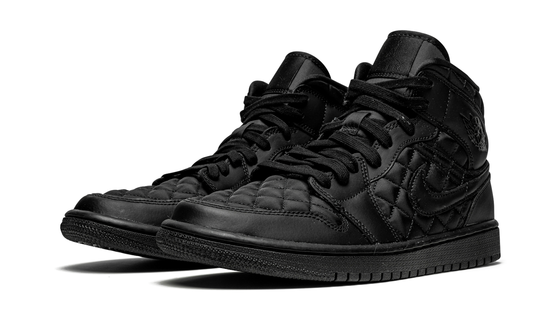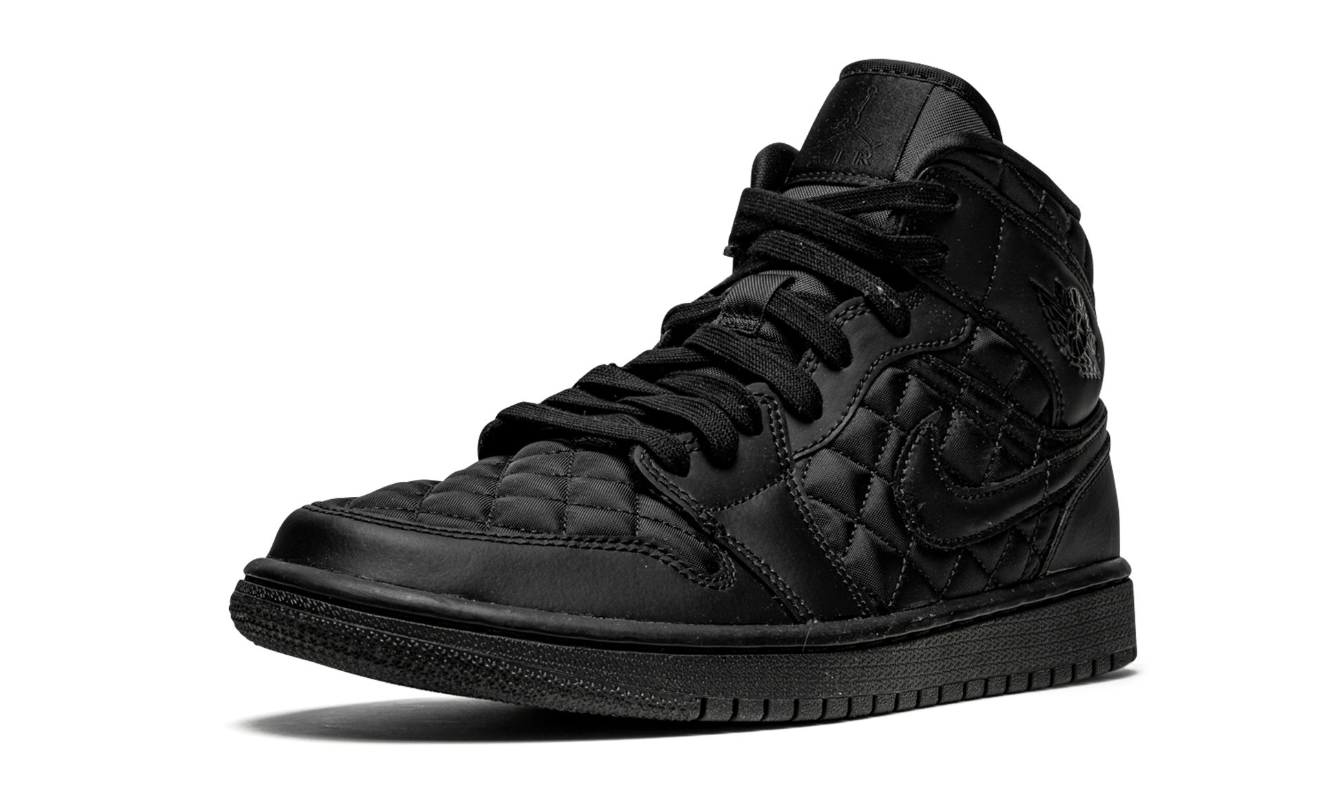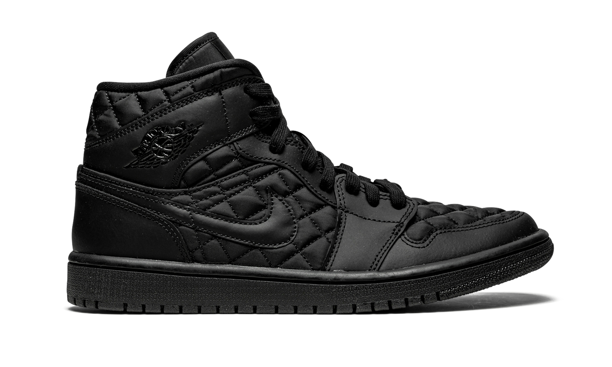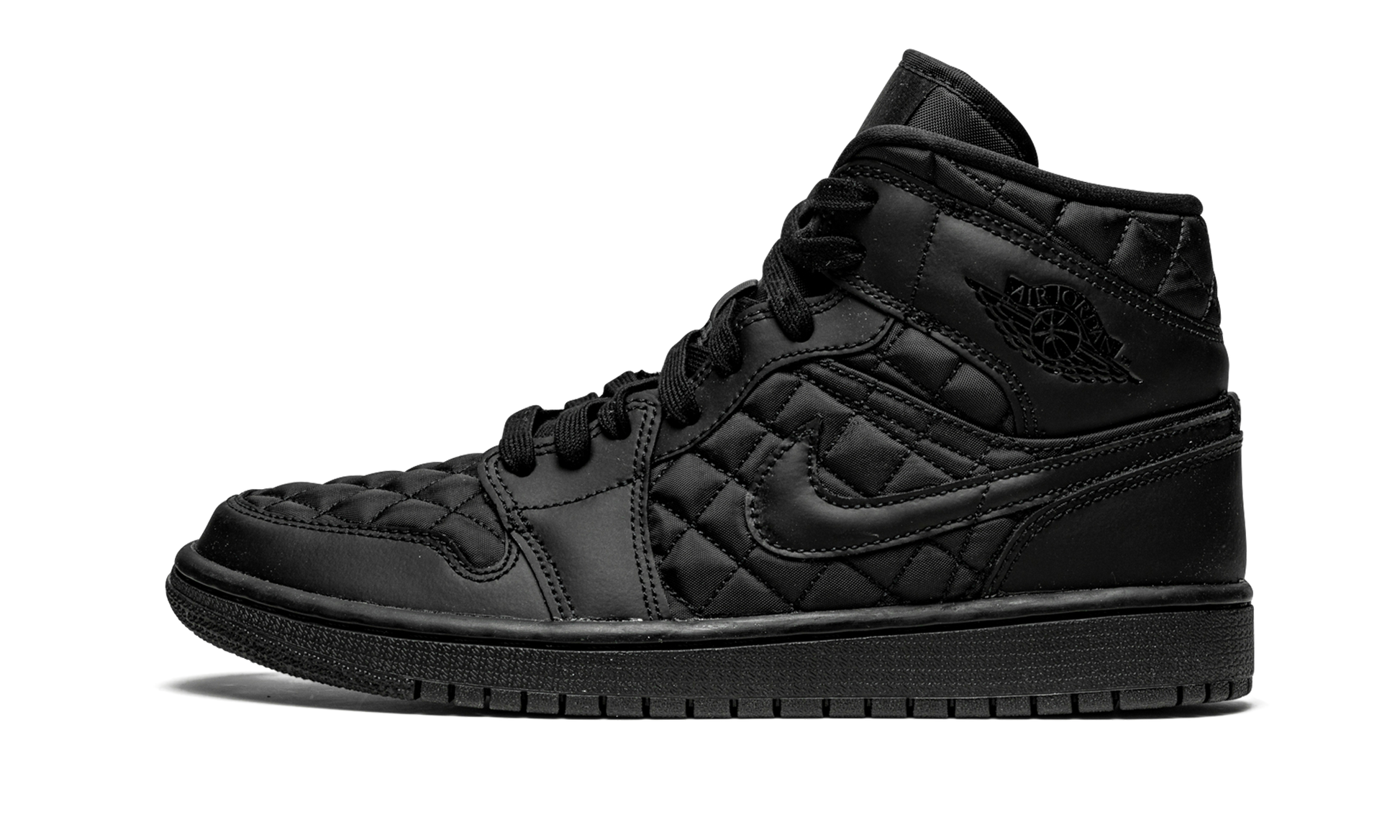 The Women's Air Jordan 1 Mid Quilted “Blackâ€?is a premium look for the women's version of Michael Jordan's first signature shoe that features a quilted upper. While not the first monochromatic black Air Jordan 1. the aptly named “Blackâ€?is in fact the first variation of the model to display an all-black quilted appearance. Plush black quilted nylon appears on the toe. mid-panel. and collar. Smooth tonal leather graces the forefoot. eyelets. collar. and heel. A black leather Swoosh can be found on either side and a black “Wingsâ€?logo is situated on the collar. A black Jumpman and “Airâ€?logo are printed on the tonal nylon tongue tag on the black nylon tongue. The shadowy vibe is complete with black laces and a black rubber sole. Release date: January 5. 2021