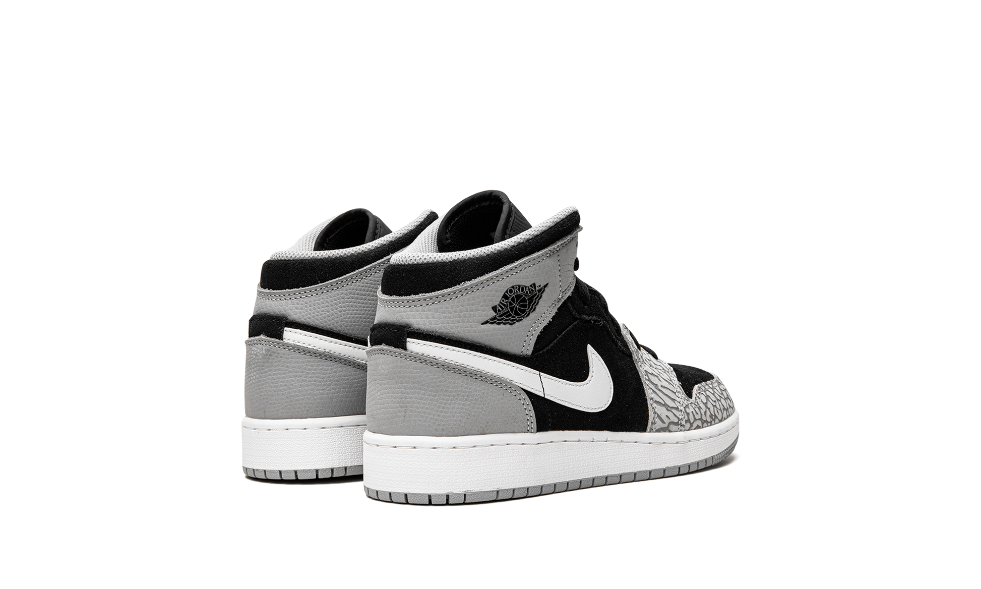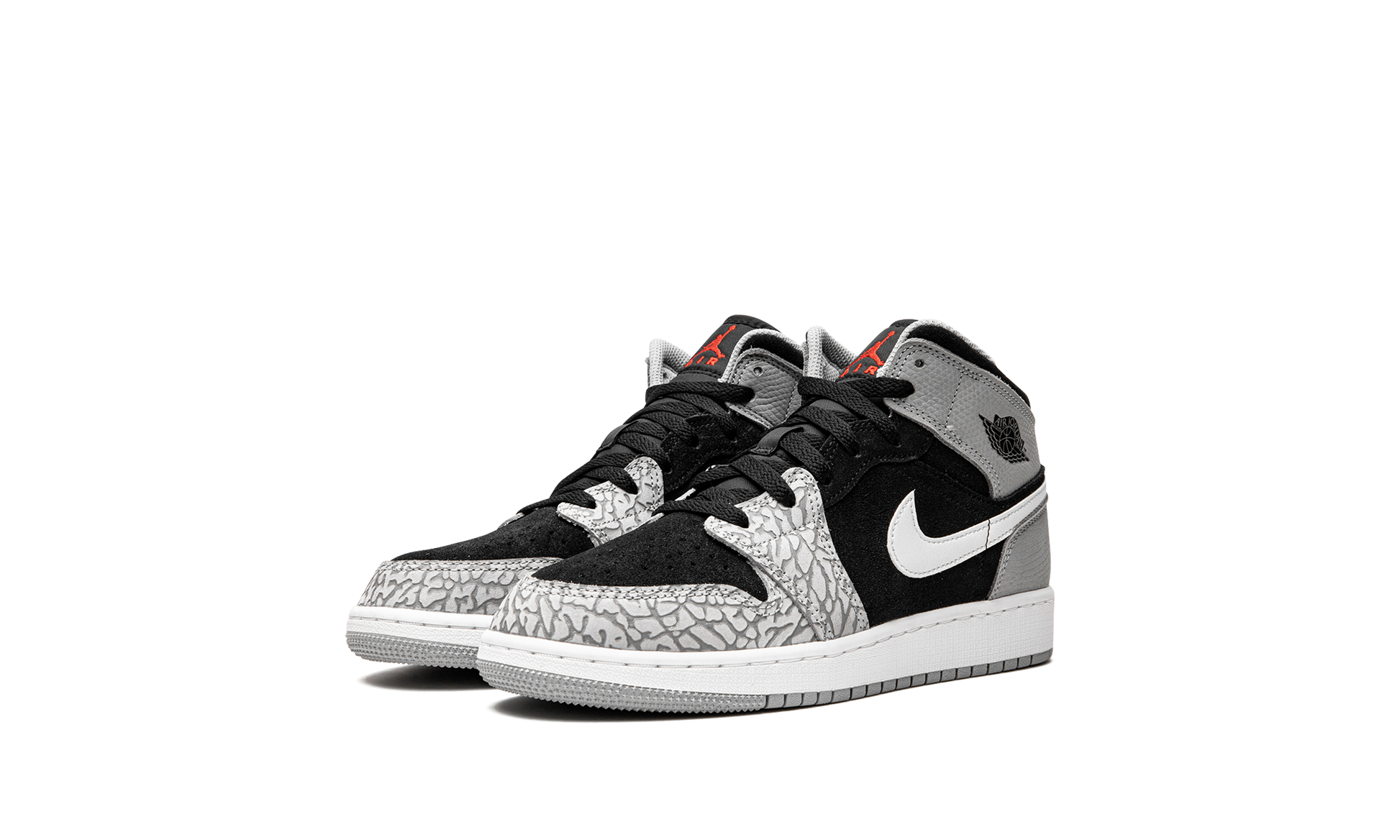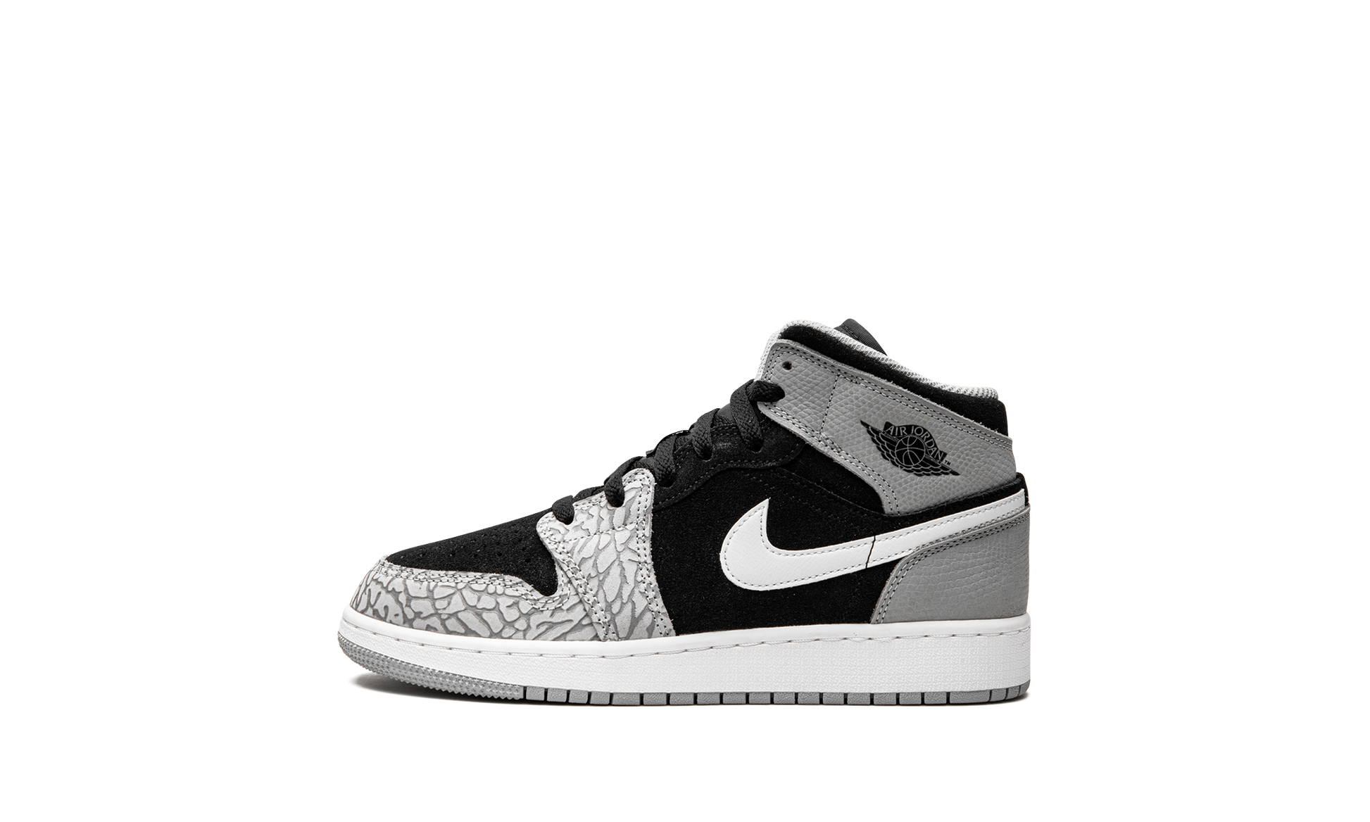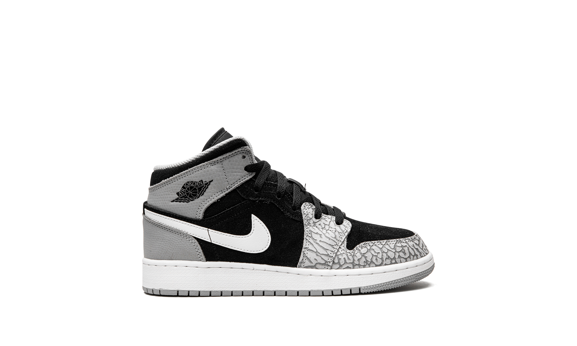 The Air Jordan 1 Mid GS “Elephant Toeâ€?is the youth sizing of the retro basketball shoe in a colorway that features the same iconic patterning found on the Air Jordan 3. Originally released in 1988. the Jordan 3 was the first-ever basketball shoe to feature elephant-inspired detailing on its design when it was introduced with the animal-esque patterning on its toe cap and heel. Here. the “Elephant Toeâ€?uses the same print as the Jordan 3 to great success. The material in question is found on the toe cap and forefoot. Contrasting black suede appears on the perforated toe and mid-panel. Textured grey leather is located on the collar and on the heel. A white leather Swoosh appears on the sides and a black “Wingsâ€?logo resides on the collar.