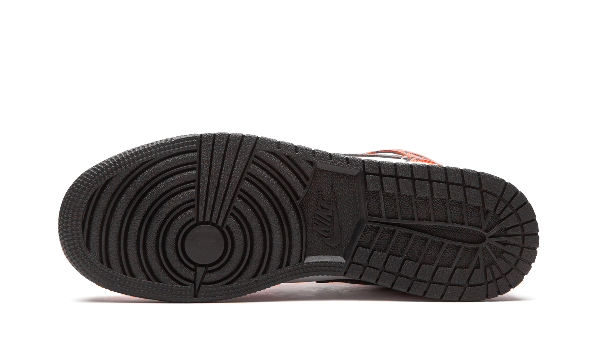 The Air Jordan 1 Mid SE GS “Turf Orangeâ€?is an attention-seeking colorway of Michael Jordan's first signature shoe fitted in youth sizing. The “Turf Orangeâ€?Air Jordan 1 Mid SE (Special Edition) appeals to children with vibrant orange patent leather detailing on the forefoot. eyelets. collar. and heel. Both the perforated toe and mid-panel feature a white leather construction that allows for the blazing orange accenting to garner attention. Elsewhere. a black leather Swoosh with orange contrast stitching and black “Wingsâ€?emblem on the collar evoke a classic Air Jordan 1 look. Finishing touches include black laces on top an orange nylon tongue. a black Jumpman accented tongue tag. and white collar with a black liner.