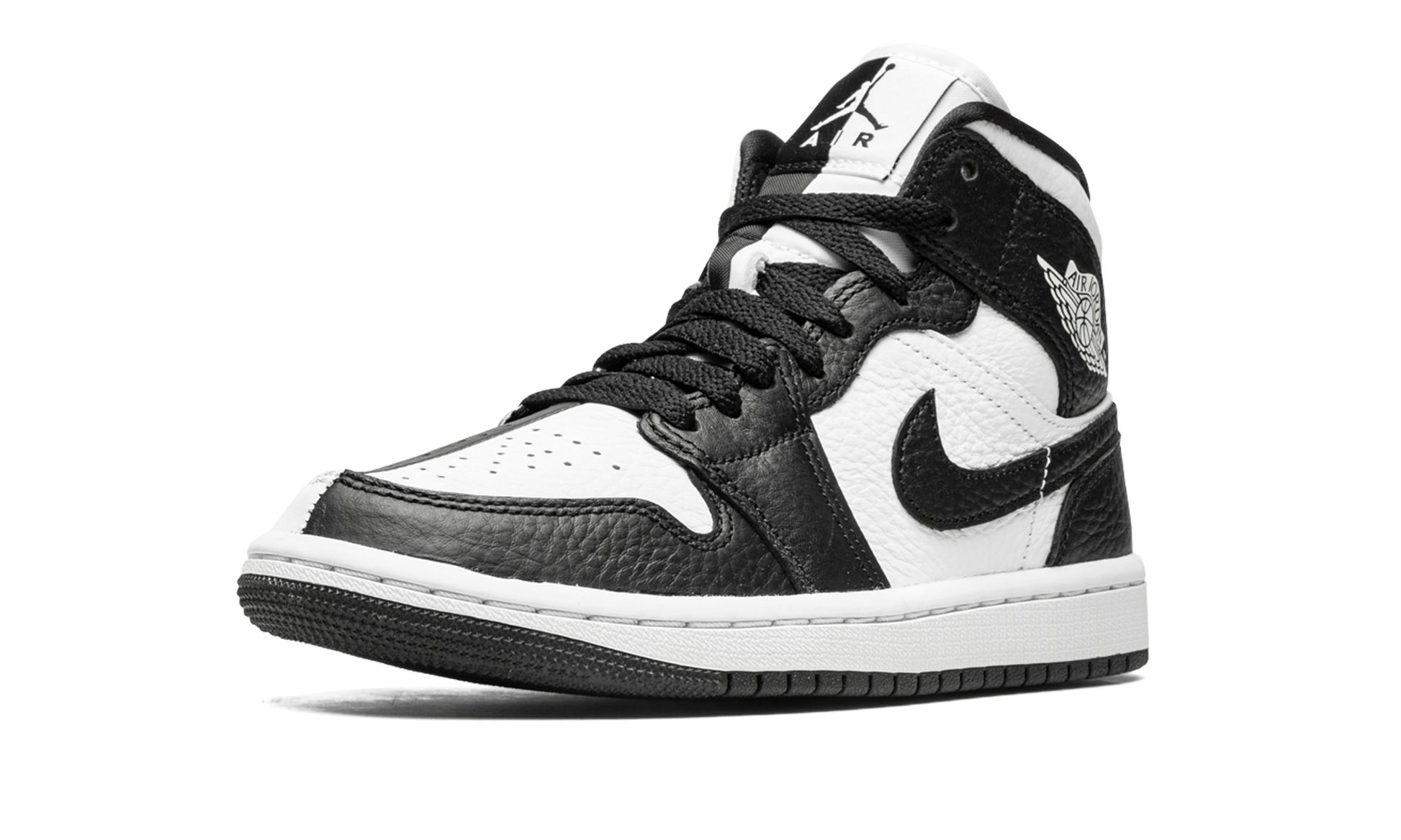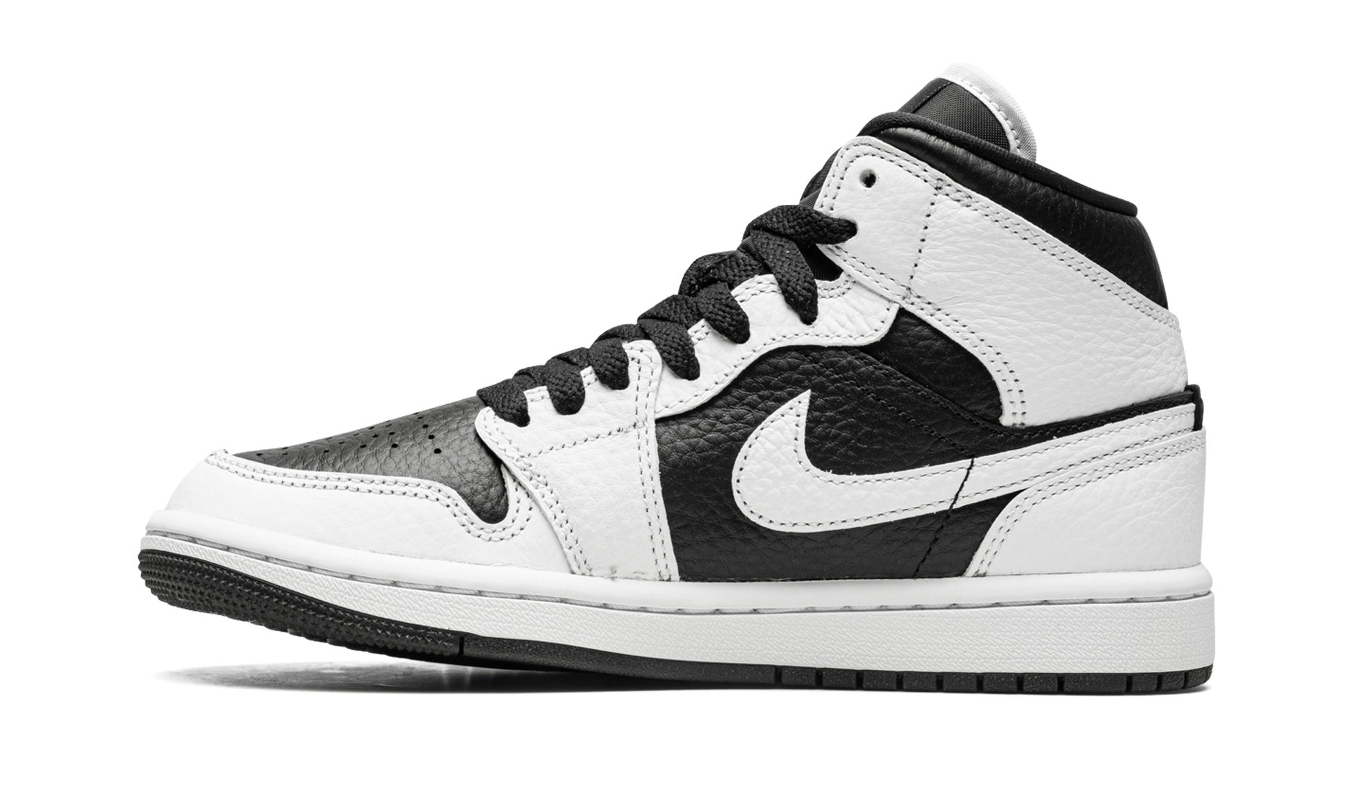 The Women's Air Jordan 1 Mid “Split Black and Whiteâ€?is a women's-exclusive colorway with a mismatched design. As its name implies. the “Split Black and Whiteâ€?Jordan 1 Mid features a split appearance that inverses the shoe's black-and-white color block on each side. The lateral side of the shoe features a white tumbled leather base with contrasting black leather overlays and Swoosh branding. The medial side reverses the color block. with a black leather base with white leather overlays and Swoosh branding. The black-and-white split design continues on both the tongue and tongue tag.