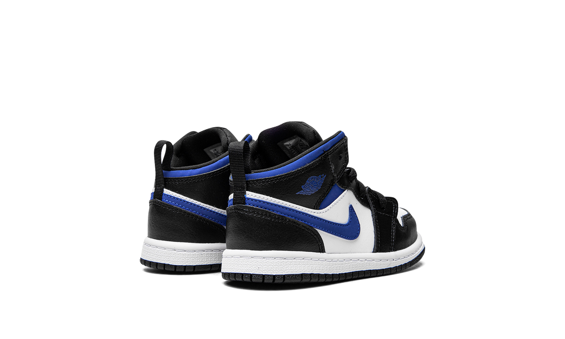 The Jordan 1 Mid TD “Game Royalâ€?is the toddler sizing of Michael Jordan's first signature shoe in a colorway loosely inspired by the shoe's original “Royalâ€?style. While in no way a direct one-to-one of the Air Jordan 1 “Royal.â€?the modern “Game Royalâ€?shows appreciation for the vintage colorway's timeless style with royal blue leather accenting throughout its design. specifically on the leather Swoosh. on the “Wingsâ€?logo. and collar. White leather is found on the perforated toe and mid-panel. The toe cap. forefoot. eyelets. collar. and heel all feature a black leather construction. A small Game Royal-colored Jumpman graces the nylon tongue tag. Jordan Brand makes the “Game Royalâ€?easy to slip on and off with a pull tab on the heel.