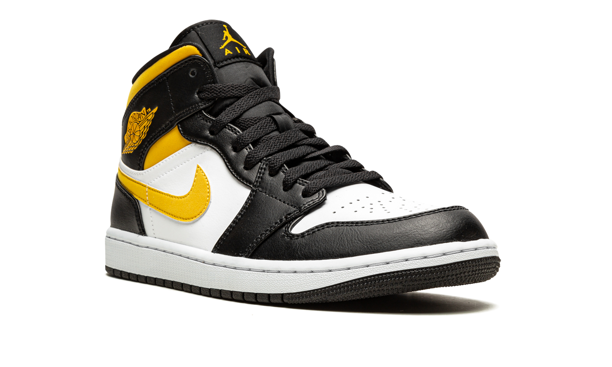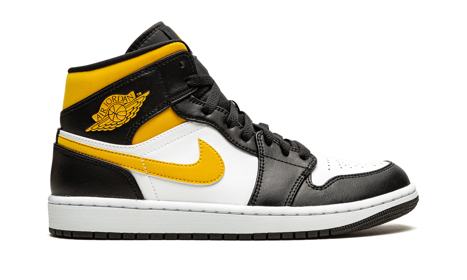 The Air Jordan 1 Mid “White/Pollen/Blackâ€?is a clean look for the mid-top version of the retro basketball shoe. In “White/Pollen/Black.â€?the Jordan 1 Mid arrived in 2021 in yet another wearable colorway. The perforated toe and mid-panel display a white leather construction. Contrasting black leather can be found on the various overlays on the upper. including on the Swoosh logo. A University Gold “Wingsâ€?logo appears on the black leather overlay on the yellow leather collar. Additional University Gold accenting comes into play on the Jumpman and “Airâ€?branding on the tongue tag.