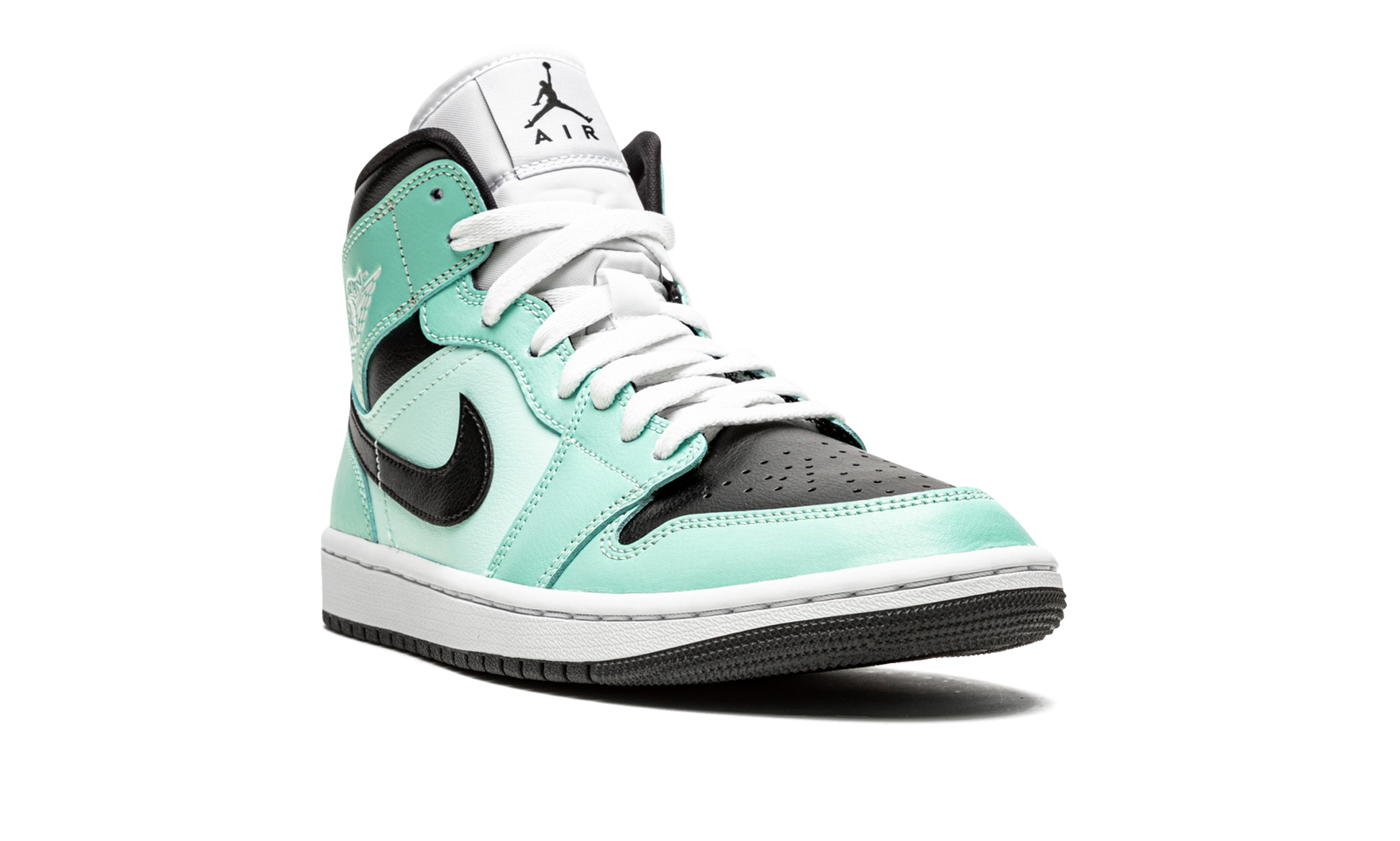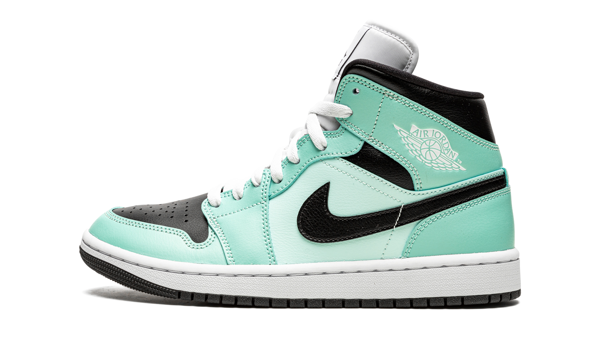 The Women's Air Jordan 1 Mid “Aqua/Blackâ€?is a women's-exclusive colorway of the mid-top lifestyle shoe by Jordan Brand. The Air Jordan 1 Mid is an alternate silhouette based on the original high-top version of Michael Jordan's first signature shoe by Nike and is one of the most popular women's sneakers in the world. On this colorway. teal-colored leather panels appear on the forefoot. eyelets. collar. and heel. A slightly lighter shade of teal or aqua leather can be found on the mid-panel underneath the black leather Swoosh detailing. A white “Wingsâ€?logo appears on the collar and a black Jumpman with “Airâ€?branding can be found on the tongue tag on the white nylon tongue. Additional design details include a black leather collar. white laces. and a white midsole and contrasting black outsole.