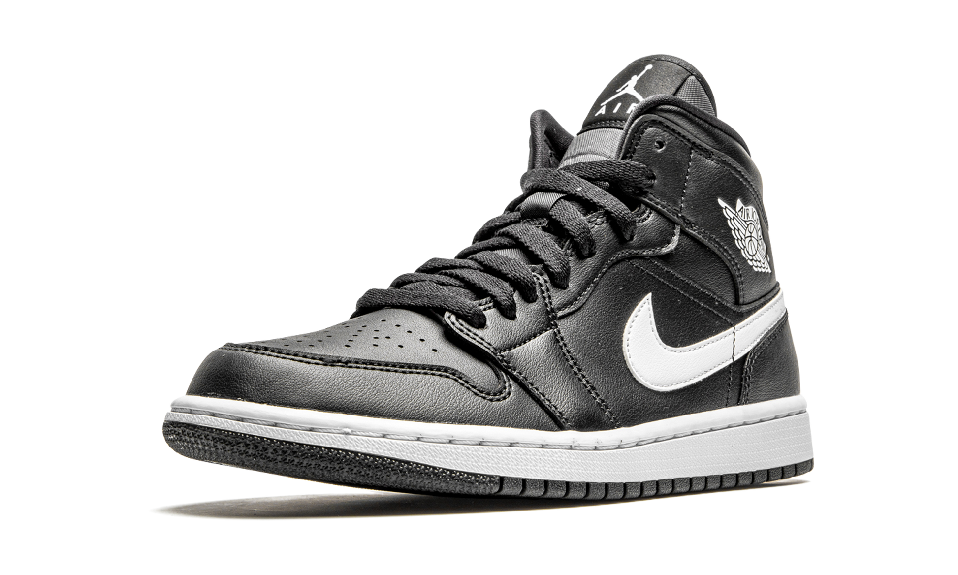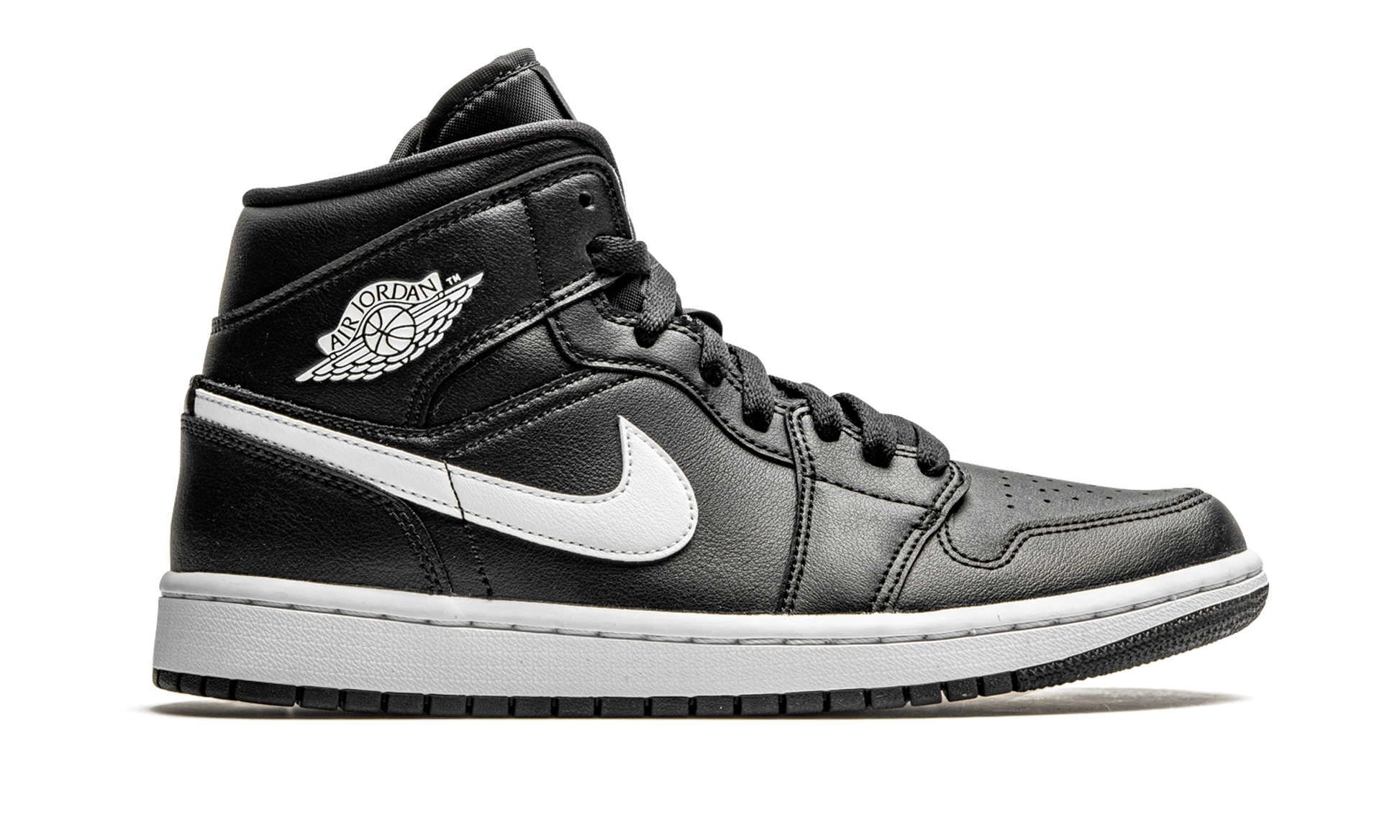 The Women's Air Jordan 1 Mid “Black/Whiteâ€?is a versatile. neutral based colorway of Michael Jordan's first signature shoe for women. Growing in popularity by the year. the mid-top version of the Jordan 1 is one of the more creative canvases in Jordan Brand's footwear collection. And as we see here. one of the most wearable. as well. Clean in design. the “Black/Whiteâ€?features a predominantly black tumbled leather upper. save for the white leather Swoosh and “Wingsâ€?detailing. A white Jumpman appears on the branding tag stitched onto the black nylon tongue. Black laces and a white midsole and contrasting black outsole finish off the look.