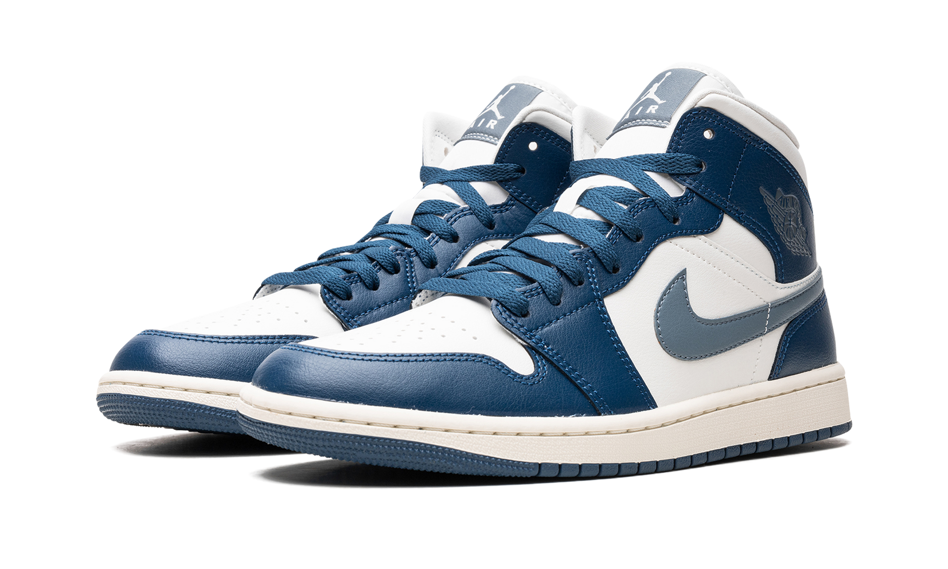 The Women's Air Jordan 1 Mid "French Blue" is a women's-exclusive colorway of lifestyle shoe with an appealing color block. The upper features a Sail (off-white) leather base with French Blue leather overlay panels. An Ozone Blue leather Swoosh appears on both sides. A grey “Wingsâ€?logo can be found on the collar overlay while a white Jumpman is seen on the grey nylon tongue tag. Underfoot. a Sail rubber midsole and French Blue outsole complete the clean look. Release date: August 31. 2023