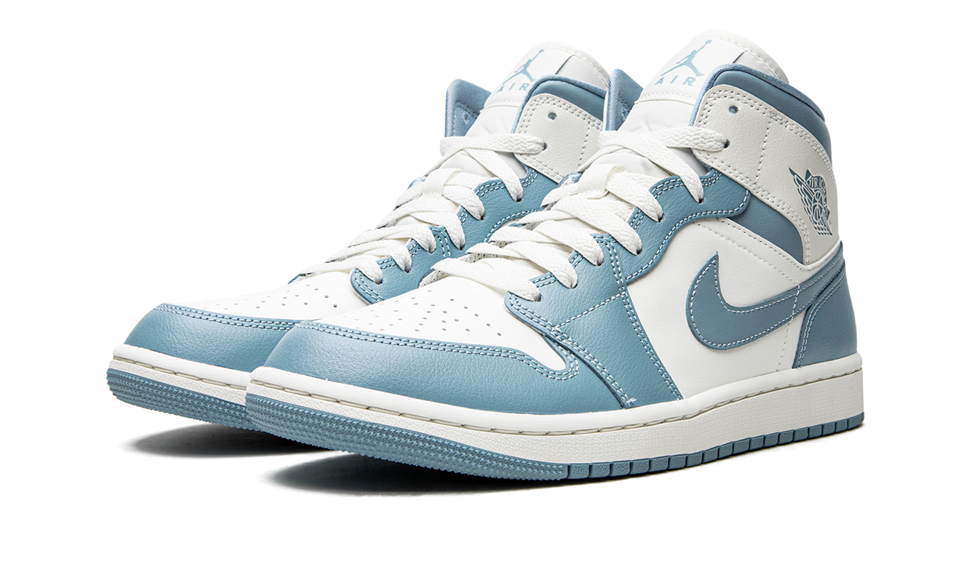 The Women's Air Jordan 1 Mid “UNCâ€?is a women's-exclusive makeup of the popular lifestyle shoe that shows appreciation for Michael Jordan's alma mater. the University of North Carolina. The “UNCâ€?colorway was an original color concept of Jordan's retro basketball shoe back in 1985. and is an integral part of the Air Jordan line in the present day. Here. the “UNCâ€?theme appears on the always covetable Jordan 1 Mid. as the shoe features the Tar Heels' light blue hue on the overlay panels and on the Swoosh and “Wingsâ€?branding. The perforated toe. mid-panel. and collar are designed in crisp white leather.