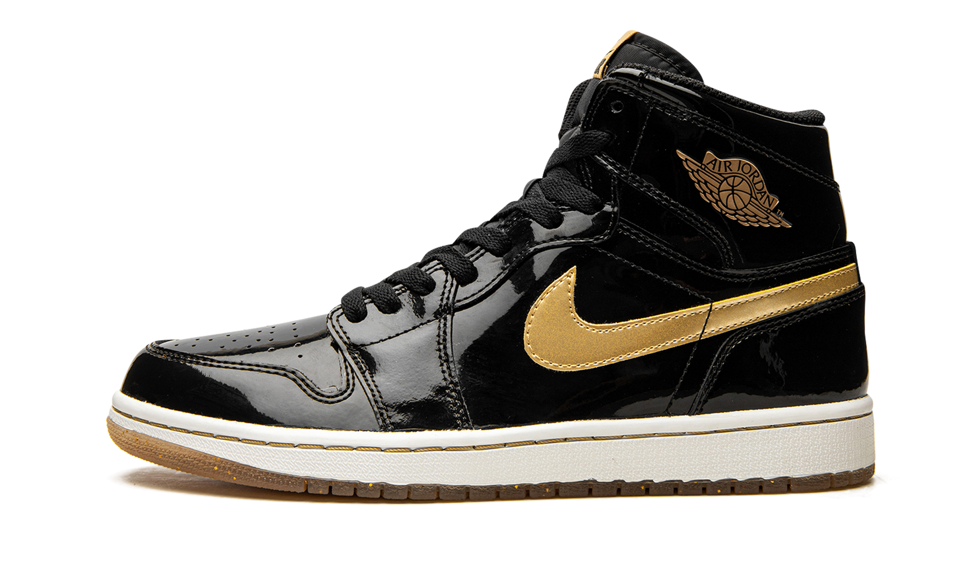 Released in extremely limited quantities. this coveted Air Jordan 1 High from 2013 features a black and gold patent leather upper. The colorway is modeled after a rare original sample of the legendary sneaker.