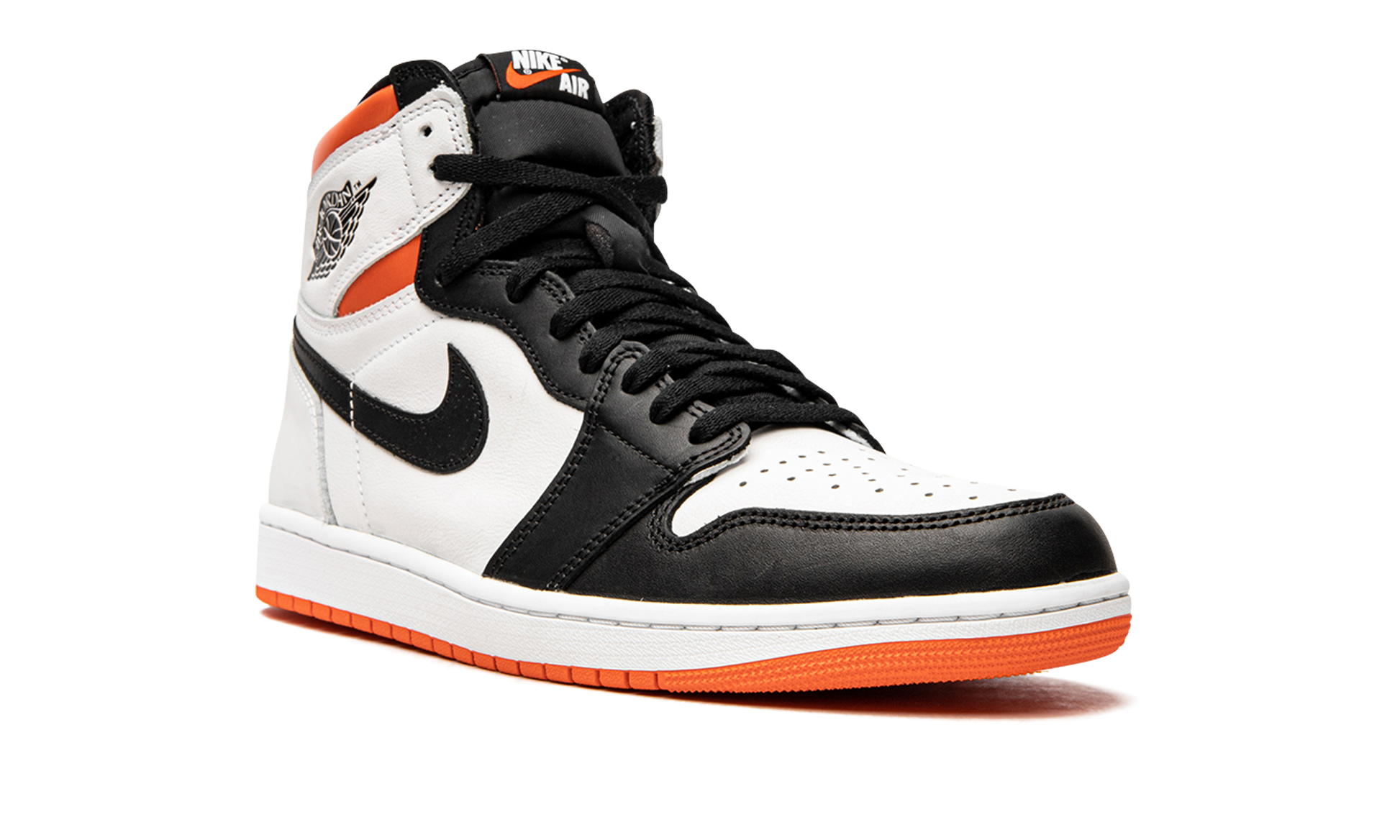 The Air Jordan 1 High OG “Electro Orangeâ€?is another clean look for Michael Jordan's first signature shoe that utilizes orange accenting in its design. A July 2021 release by Jordan Brand. the “Electro Orangeâ€?edition has a color block reminiscent of an original Air Jordan 1 colorway: the “Black Toe.â€?It should also call to mind the beloved "Shattered Backboard" series thanks to the orange. black. and white color scheme. White perforated leather graces the toe and contrasting black leather appears on the toe cap. forefoot. and eyelets. Elsewhere. white tumbled leather can be found on the mid-panel. collar. and heel. A black leather Swoosh appears on both sides and a black “Wingsâ€?logo is located on the white leather overlay above the orange neoprene collar. A classic “Nike Airâ€?logo with an orange Swoosh appears on the black tag on the black nylon tongue. An orange rubber outsole contrasts the crisp white midsole. Release date: July 17. 2021