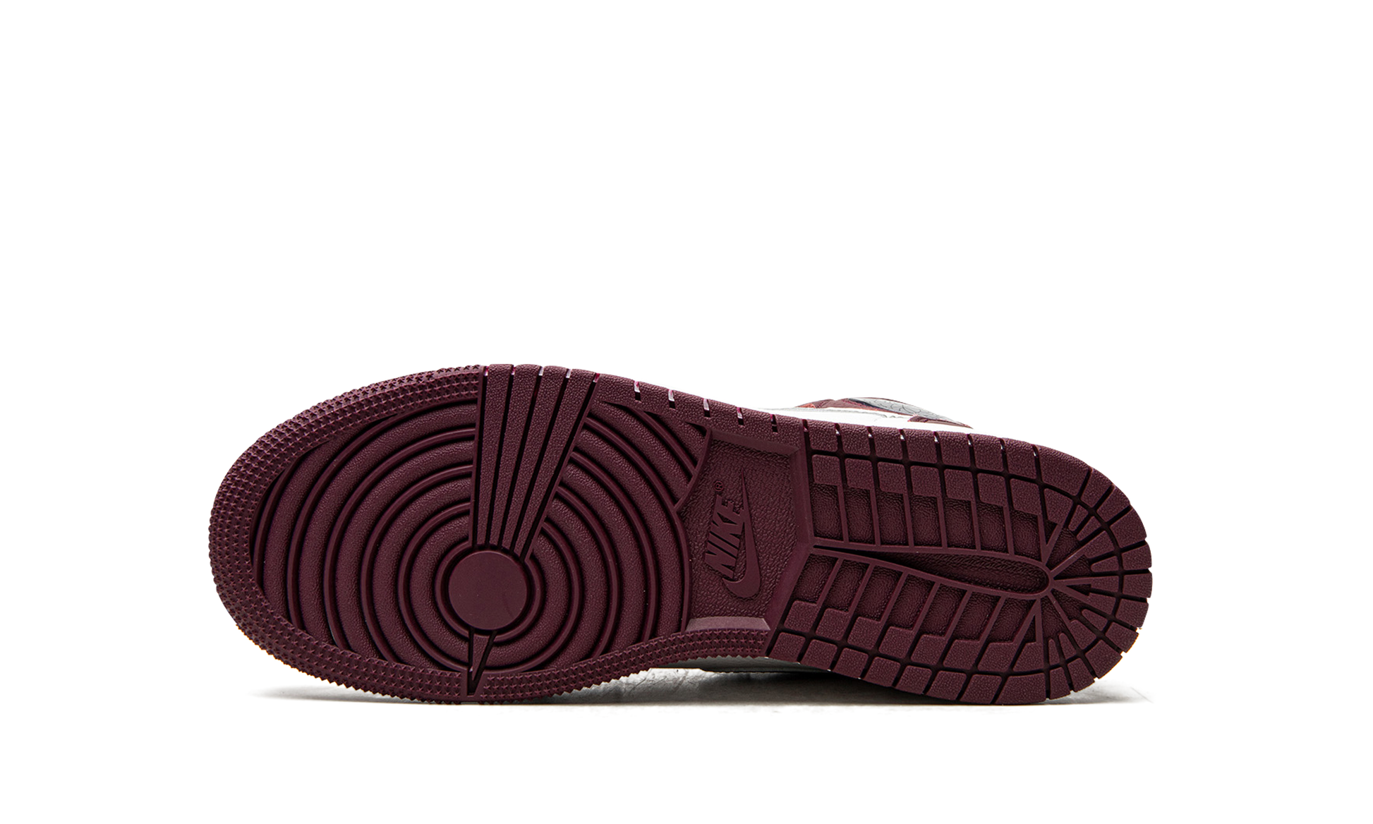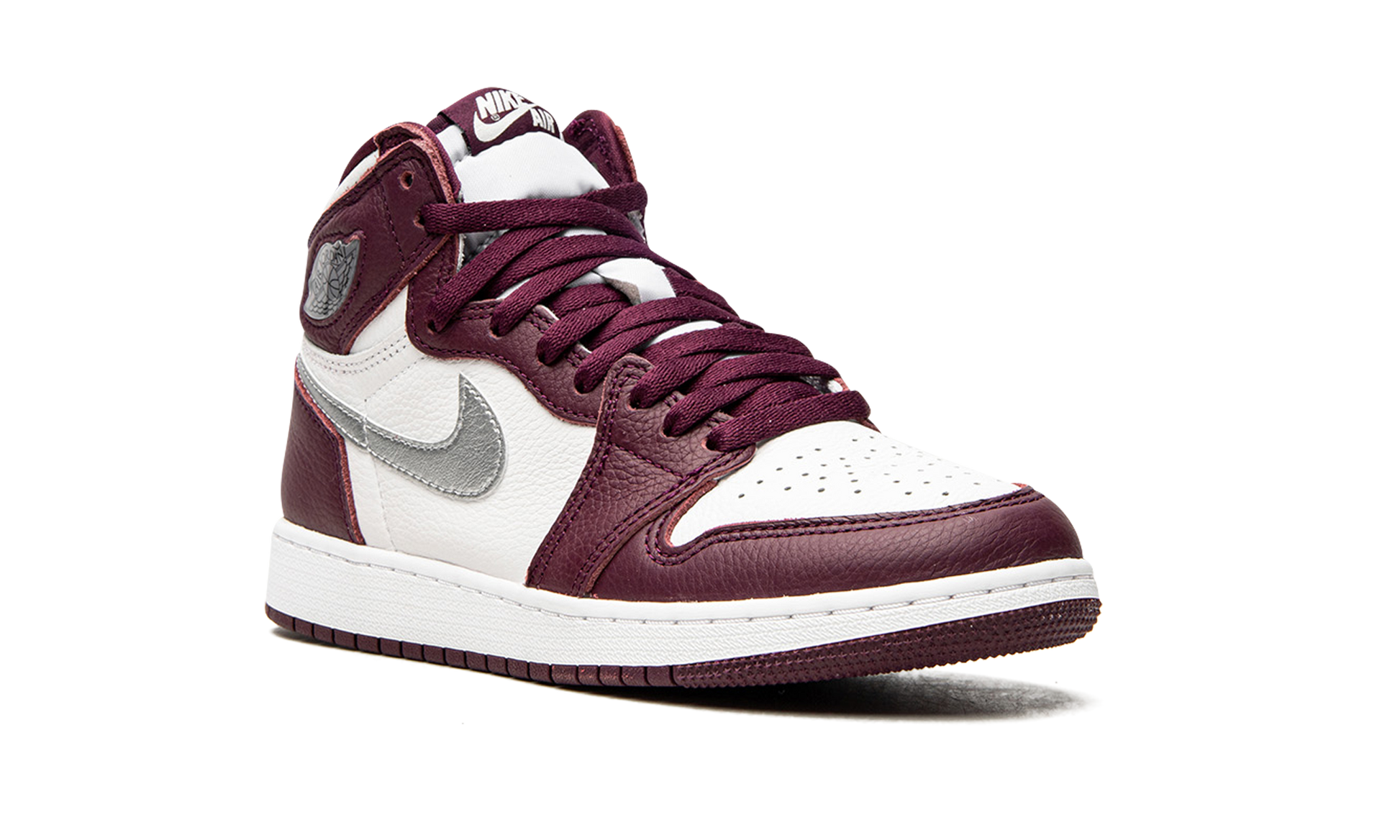 The Air Jordan 1 High OG GS “Bordeauxâ€?is the youth sizing of Michael Jordan's retro basketball shoe in an autumn-inspired colorway. A November 2021 release. the “Bordeauxâ€?style for the popular high-top shoe is loosely inspired by the Air Jordan 6 and Air Jordan 7 colorway of the same nickname. The Air Jordan 1 continues the '90s theme with a mostly two-tone. white-and-maroon-colored look. The perforated toe. mid-panel. and collar are arranged in white tumbled leather. Contrasting wine-red Bordeaux leather can be found on the forefoot. eyelets. collar. and heel. A Metallic Silver leather Swoosh graces both sides of the shoe and a silver “Wingsâ€?logo is located on the collar. Classic white “Nike Airâ€?branding is printed on the Bordeaux nylon tongue tag on the top of the white nylon tongue. Release date: November 20. 2021